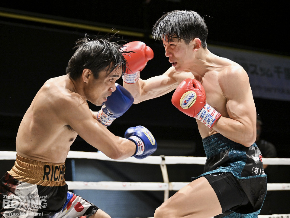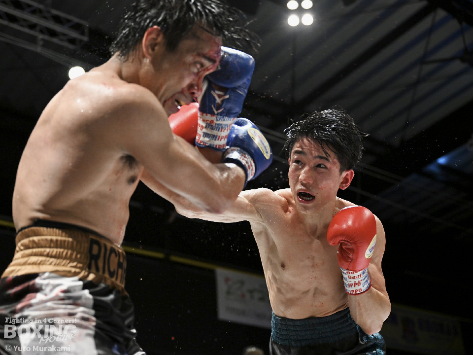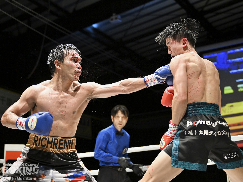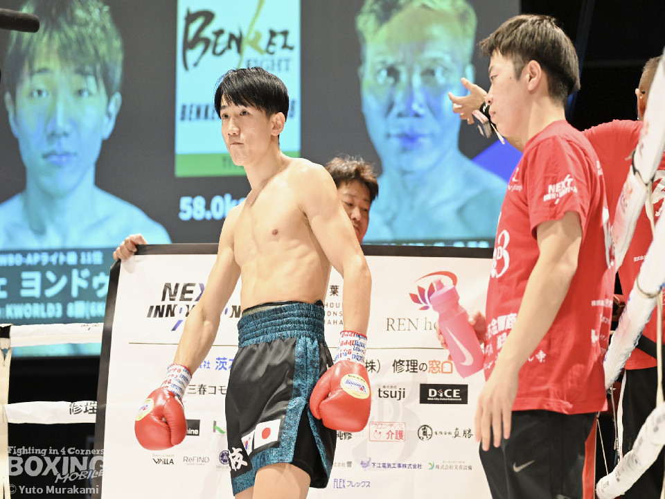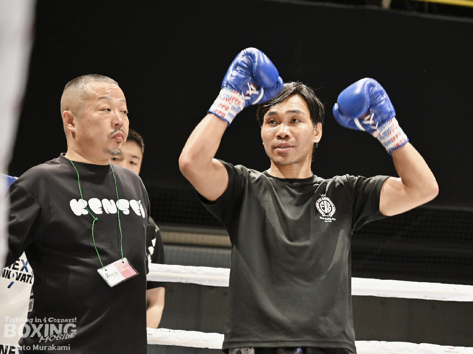 試合:WBOアジアパシフィック・ライト級11位の崔(チェ)は、サウスポースタイルでスタート。ジャブからワンツーにつなげるが、元WBO-APフェザー級王者のプミクピックは、独特のタイミングで懐に飛び込み左ボディで対抗。2回、崔は右構えに戻し、打ち下ろしの右ストレートを顔面、ボディに打ち分け見栄えの良さをアピール。3回、崔はプレスをかけてワンツー、左ボディを好打。4回、プミクピックは力強い左ボディで反撃に転じるが、崔は押し負けず。5回、崔はワンツーで後退させると連打で攻勢。プミクピックはヒッティングで左目上をカットした。6回、一進一退の攻防を繰り広げる中、プミクピックはワンツーで顔を弾いた。7回、プミクピックはステップインから右ストレートを決めると、積極的な攻撃で挽回。8回、激しいパンチの応酬を見せる中、頭がぶつかりプミクピックは額をカット。再開後、最後の力を振り絞り打ち合った。2~4ポイント差をつけた崔が激戦を制した。