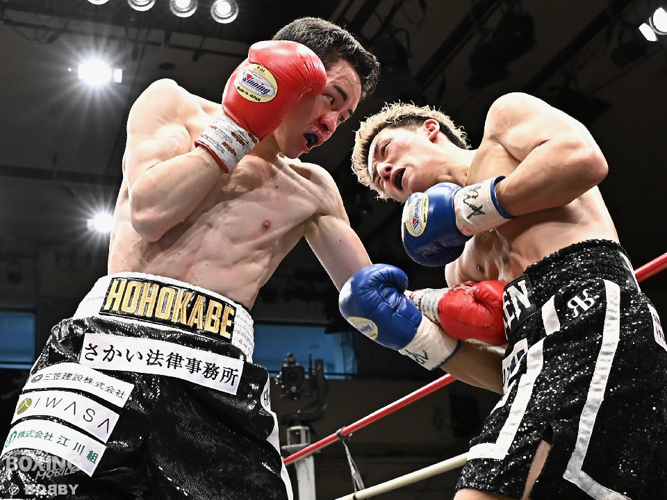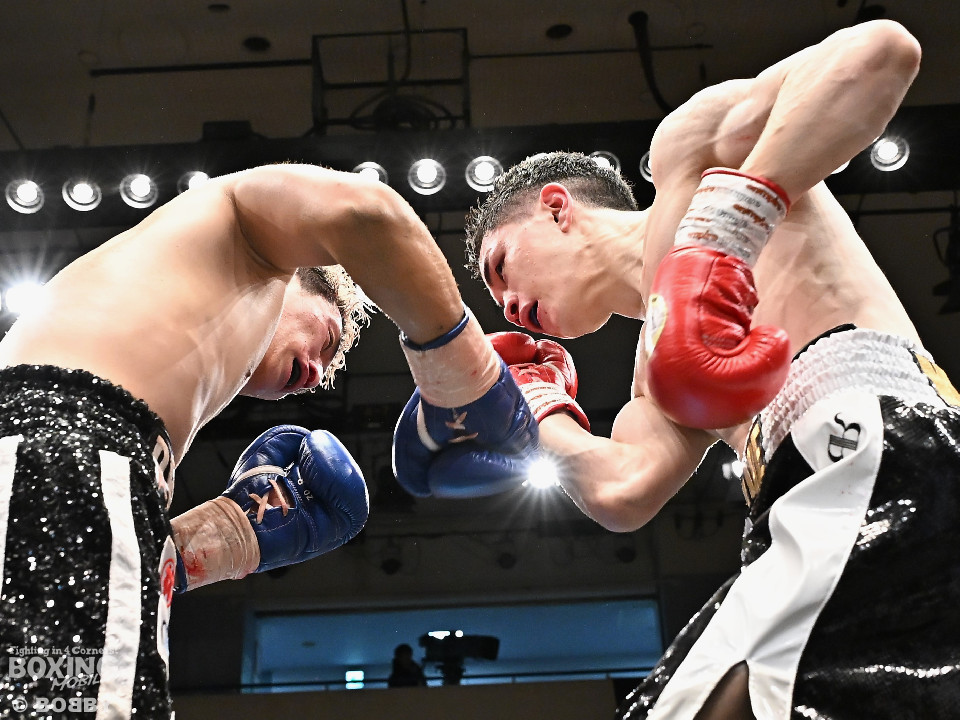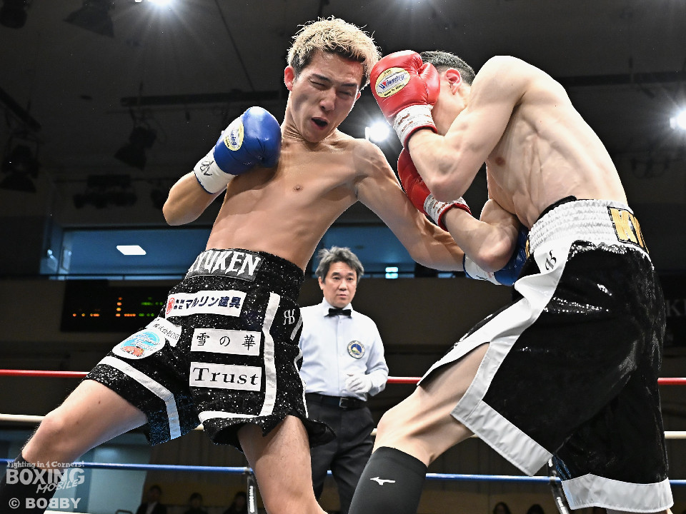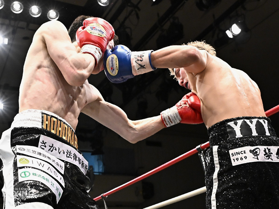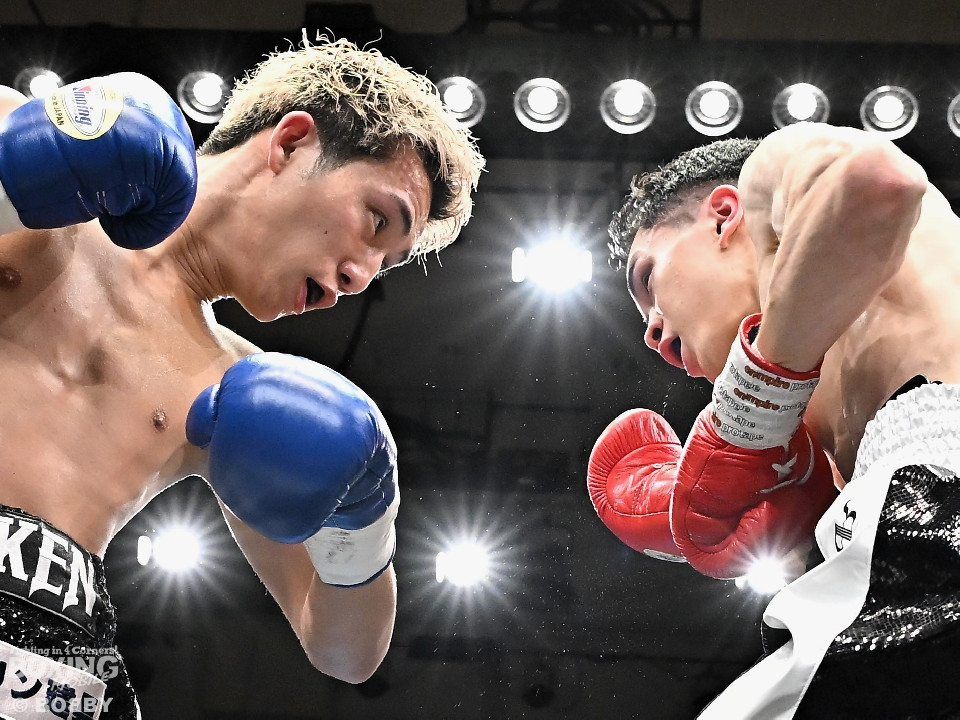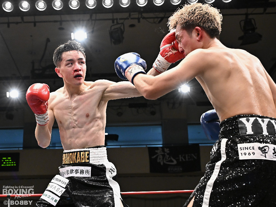 試合:石川がボディから左右のフックへ繋げ、対する波々伯部はガードを固めワンツーで対抗。2回、近距離で打ち合いを展開。石川が有効打を重ね、この回優勢か。3回、波々伯部が左右のパンチからボディ繋げ、石川は打ち終わりに的確なボディ返す。最終4回、会場が大声援に包まれる激しい打ち合い展開するも決着は着かず、勝敗はジャッジに委ねる。有効打を重ね続けた石川が勝利。