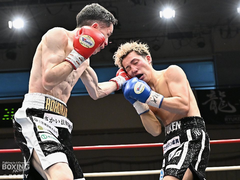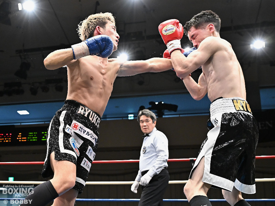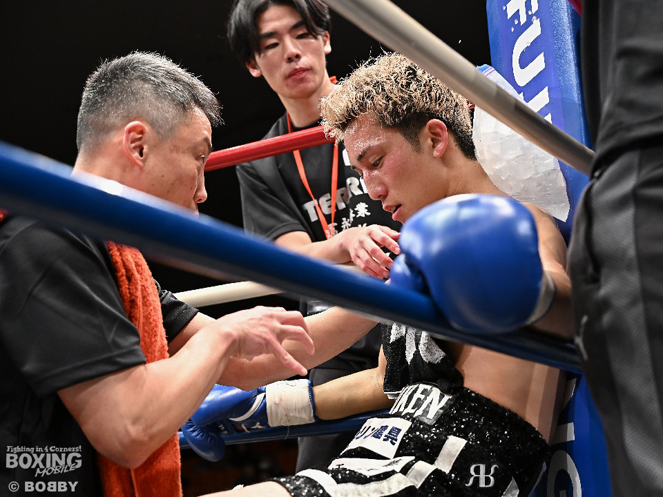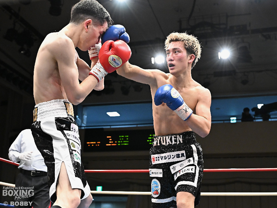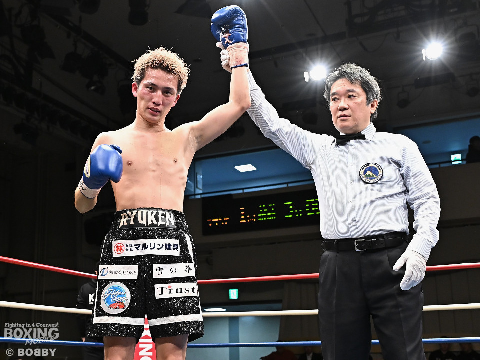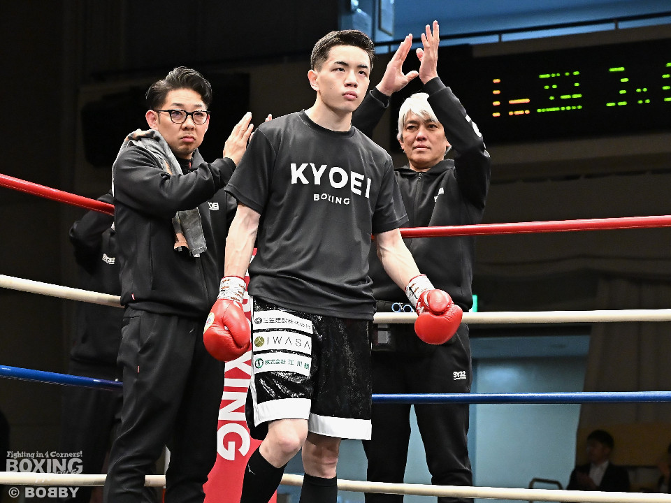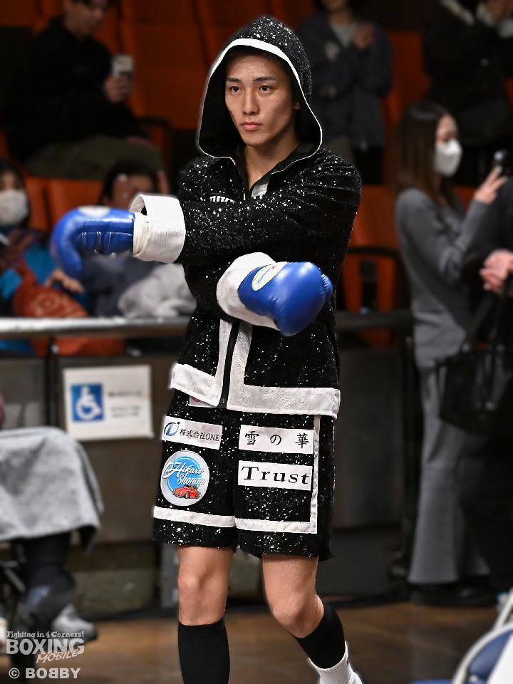 試合:石川がボディから左右のフックへ繋げ、対する波々伯部はガードを固めワンツーで対抗。2回、近距離で打ち合いを展開。石川が有効打を重ね、この回優勢か。3回、波々伯部が左右のパンチからボディ繋げ、石川は打ち終わりに的確なボディ返す。最終4回、会場が大声援に包まれる激しい打ち合い展開するも決着は着かず、勝敗はジャッジに委ねる。有効打を重ね続けた石川が勝利。