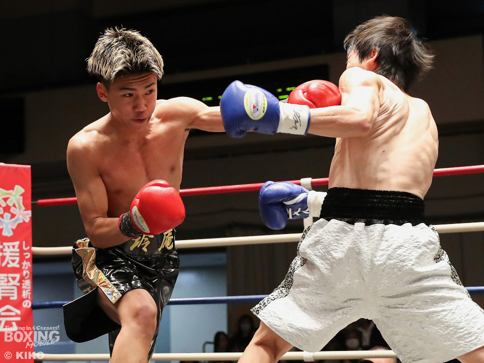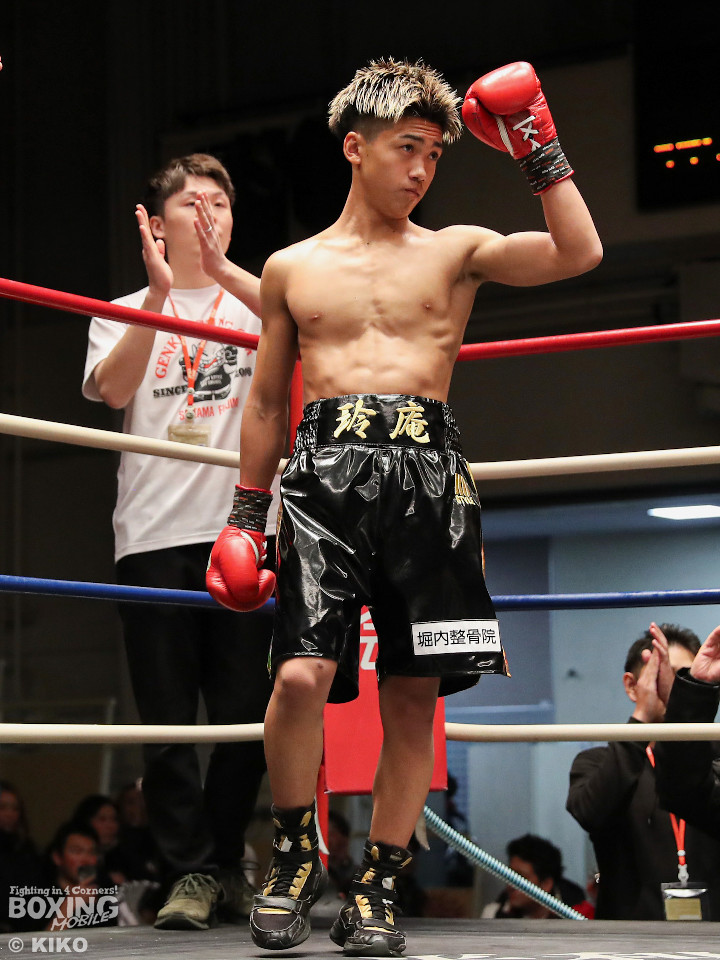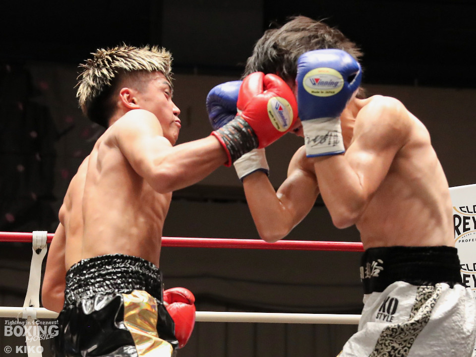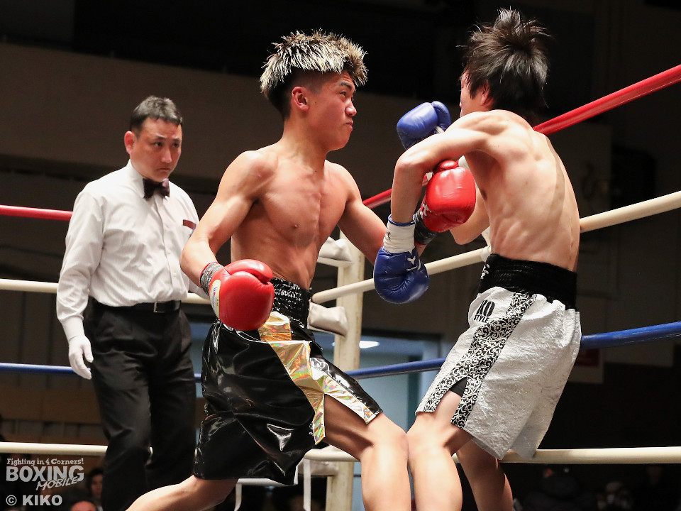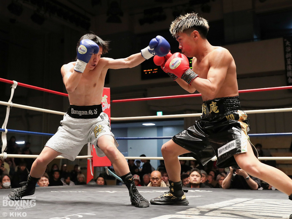 試合:サウスポー成田が思い切りの良い左ストレートでガクッと腰を沈めさせるとロープに詰めて一気にラッシュ。防戦一方になった宮下を見てレフェリーが試合をストップした。DANGANトーナメントを初回KO勝ちした成田にはKO賞10万円が贈られた。