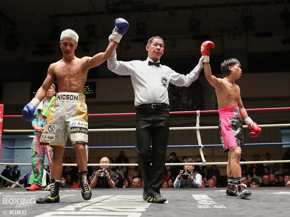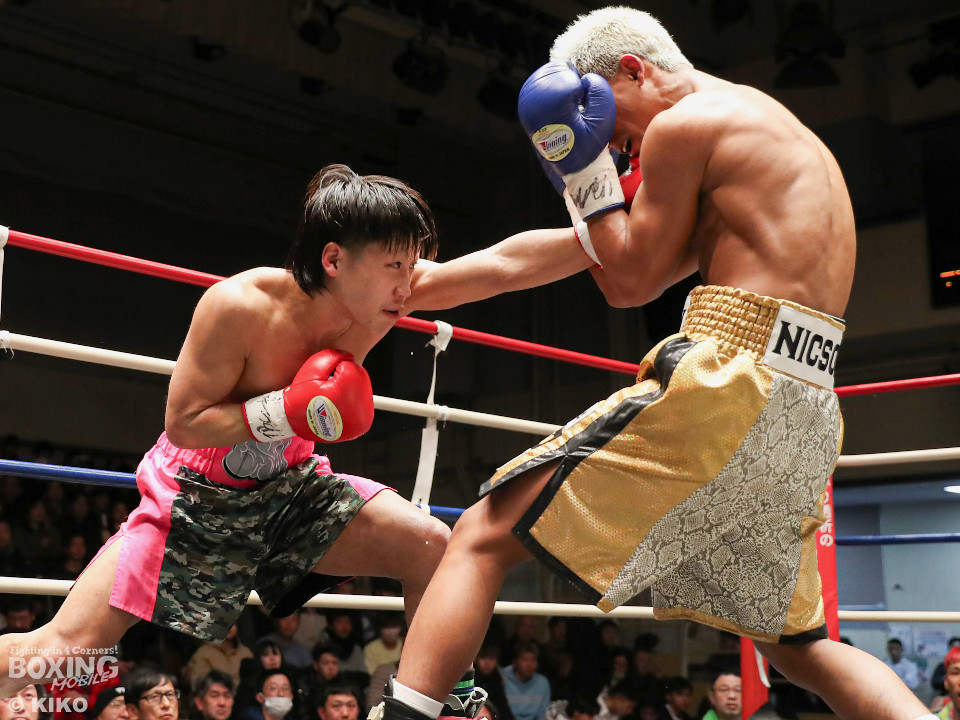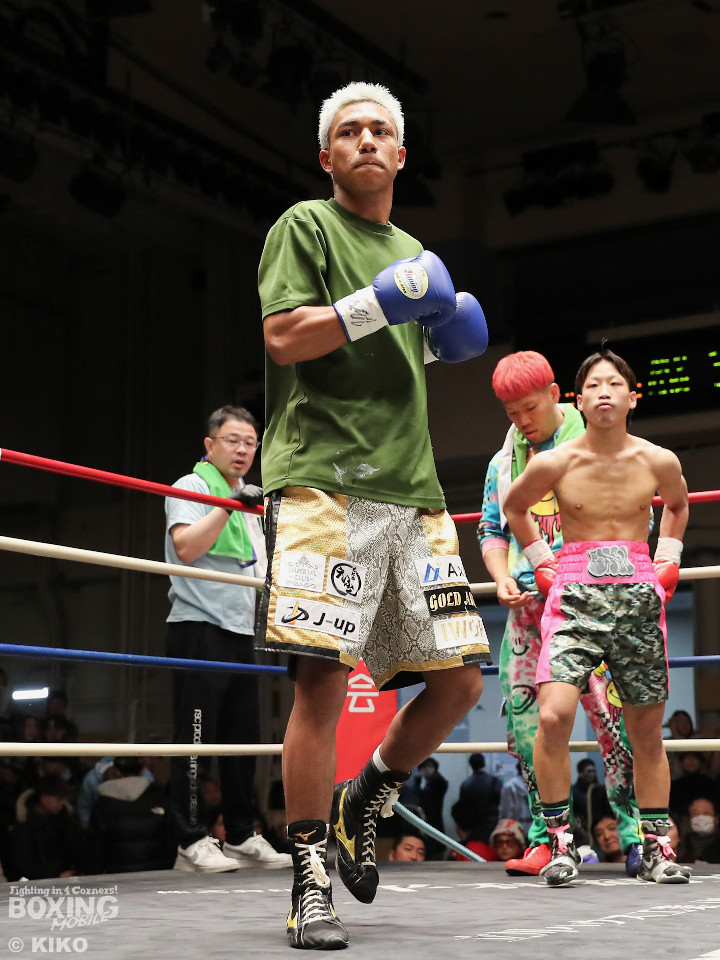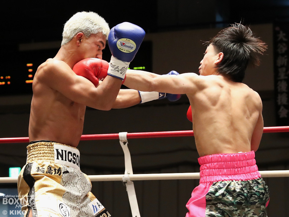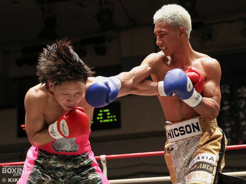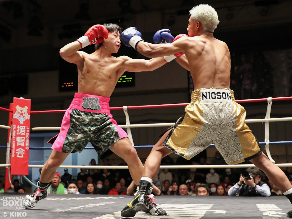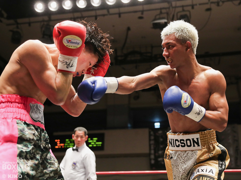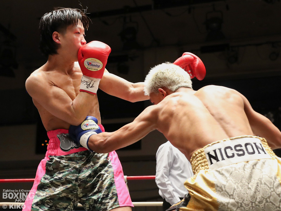 試合:渡部がステップインから力強いワンツーを叩きつけて先制攻撃。しかし、ニクソンは慌てる素振りを見せず右カウンターを狙った。2回、ニクソンはボディジャブから強弱をつけて見栄えの良さをアピール3回、ボディへの叩き合いで我慢比べの展開。ニクソンがグイグイと攻め立てるが、渡部はボディワークで決定打を回避。採点が難しいラウンドだ。4回、渡部は左ボディを徹底、フィジカルの強さを活かして攻勢を印象付けた。ジャッジに委ねられた採点は引き分け。DANGANトーナメント特別ルールにより、優勢点を勝ち取ったニクソンが優勝した。