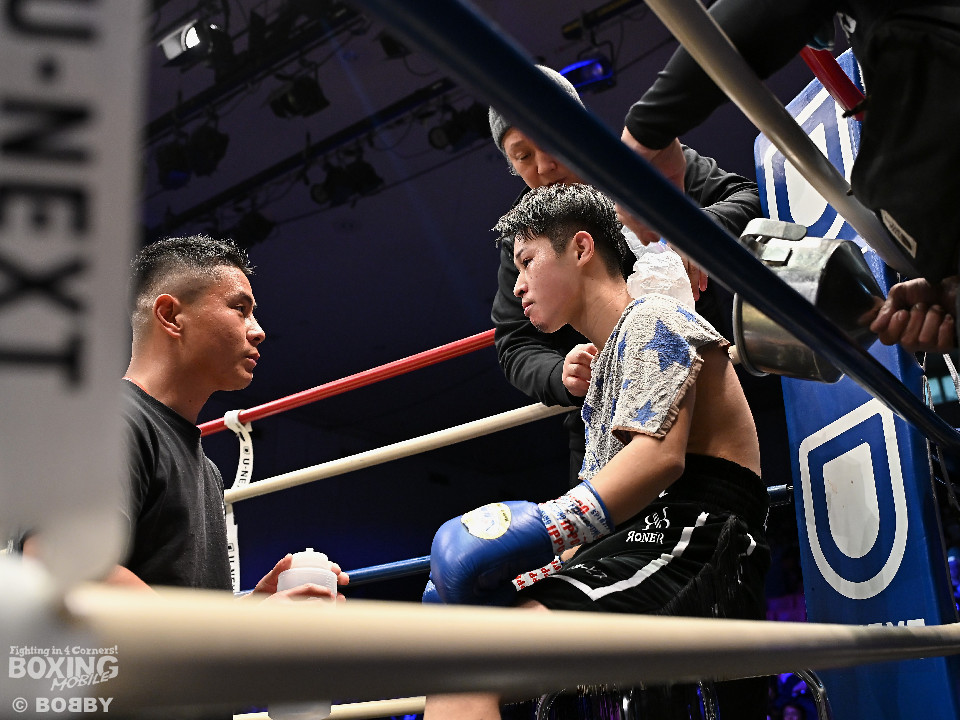 試合:本田が丁寧にジャブを突きながらペースを掌握。2回、宮澤はプレスをかけて右ショートをねじ込み反撃すると、距離を潰して左ボディをヒット。3回、ショートレンジで宮澤が右フックを決めれば本田も右アッパーから手数を増やして譲らず。4回、本田の右ショートアッパーが冴えてくる。リズム感のある攻撃でジャッジに攻勢をアピールした。ジャッジ2者の支持を得た本田が3勝目を挙げた。