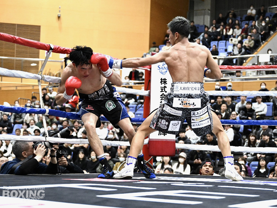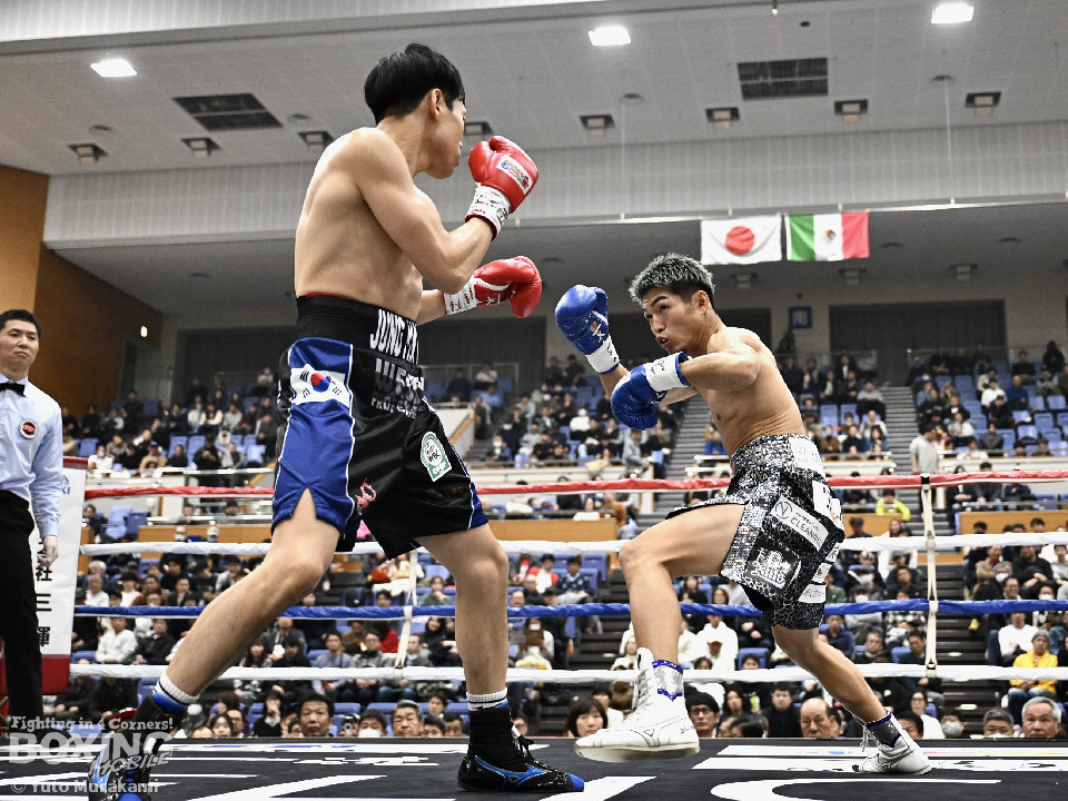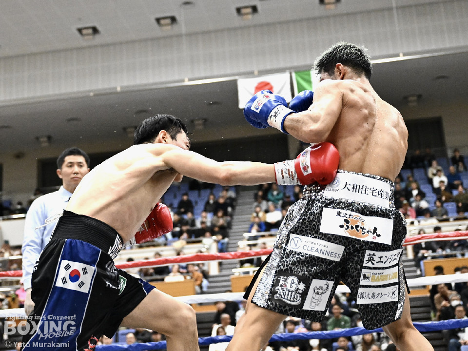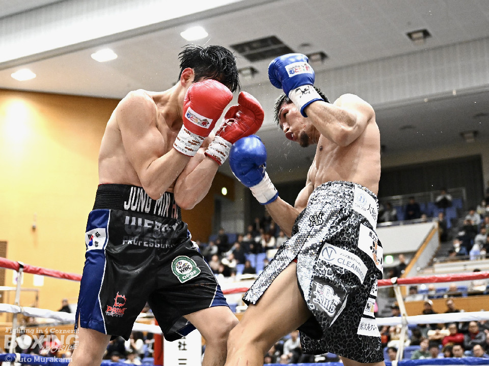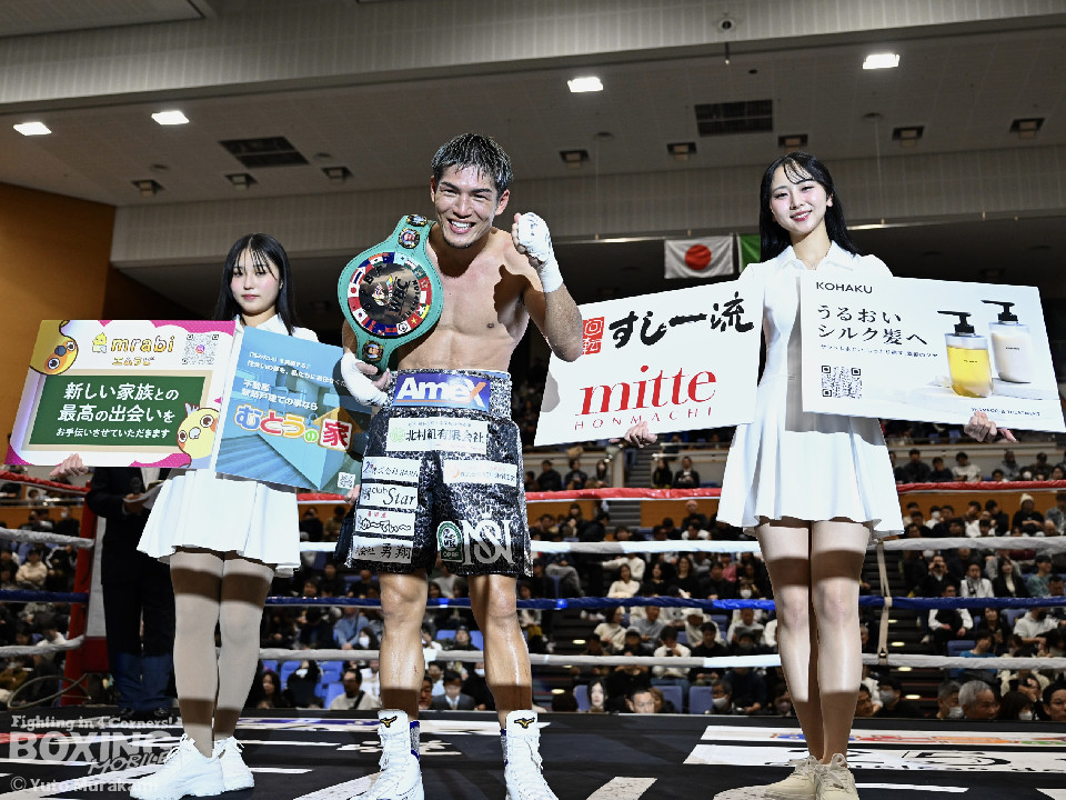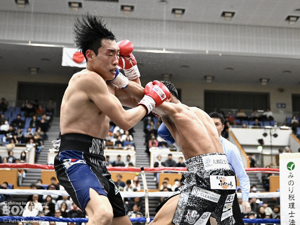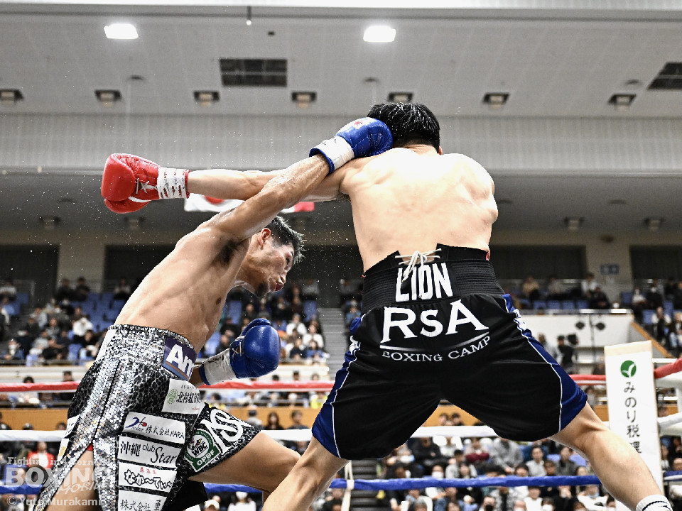 試合: かつて父の繁会長が保持していたOPBF東洋太平洋の王座獲得を狙う仲里は応援団の指笛に背中を押されて堂々のリングイン。ジュンもリングイン前に陣営で円陣を組み気合いを入れての入場。1回、仲里はボディにジャブを伸ばしタイミングを伺うと右ボディを好打。丁寧にジャブから左フックをガードの上から叩き込み試合に入る。ジュンは長いリーチを活かしたジャブで距離を確認。2回、ジュンはワンツーをヒット。仲里は丁寧なボクシングで上下にパンチを打ち込み応戦。3回、仲里は右カウンターを好打。左フックをねじ込むが、ジュンも左フックで頬を弾き、緊張感あふれる攻防が繰り広げられた。ジュンはヒッティングにより左目上をカット。4回、互いのパンチが交錯する中、仲里は右から左ボディを好打。攻勢をアピール。5回、仲里は右ストレートからの返しの左フックでダウンを奪う。ジュンは辛うじて立ち上がると仲里は一気に畳み掛けようとするがここはゴングに救われた。5回終了時点での採点は50-44×2、48-46×1で仲里を支持。6回、ジュンは前に出てパンチを繰り出すが、仲里は冷静にパンチを外し応戦。7回、仲里は眉間を偶然のバッティングによりカット。8回、クロスレンジで仲里は打ち終わりに左フックをヒット。右ストレートで顔を弾き、攻勢を印象付けた。9回、ジュンはワンツーを繰り出すが、仲里は集中したボクシングを展開。上下にパンチを放ちペースを渡さず。最終、ジュンは追いかけて左フックを捩じ込むが、仲里は左右ボディでえぐると、右ストレートを叩き込み最後まで丁寧に攻めて勝利を手繰り寄せた。ジャッジ3者とも仲里を支持。東洋太平洋ライト級新チャンピオンに輝いた。