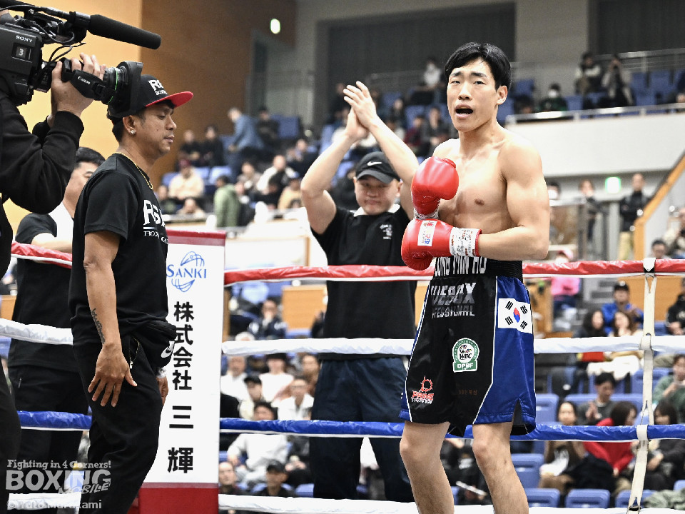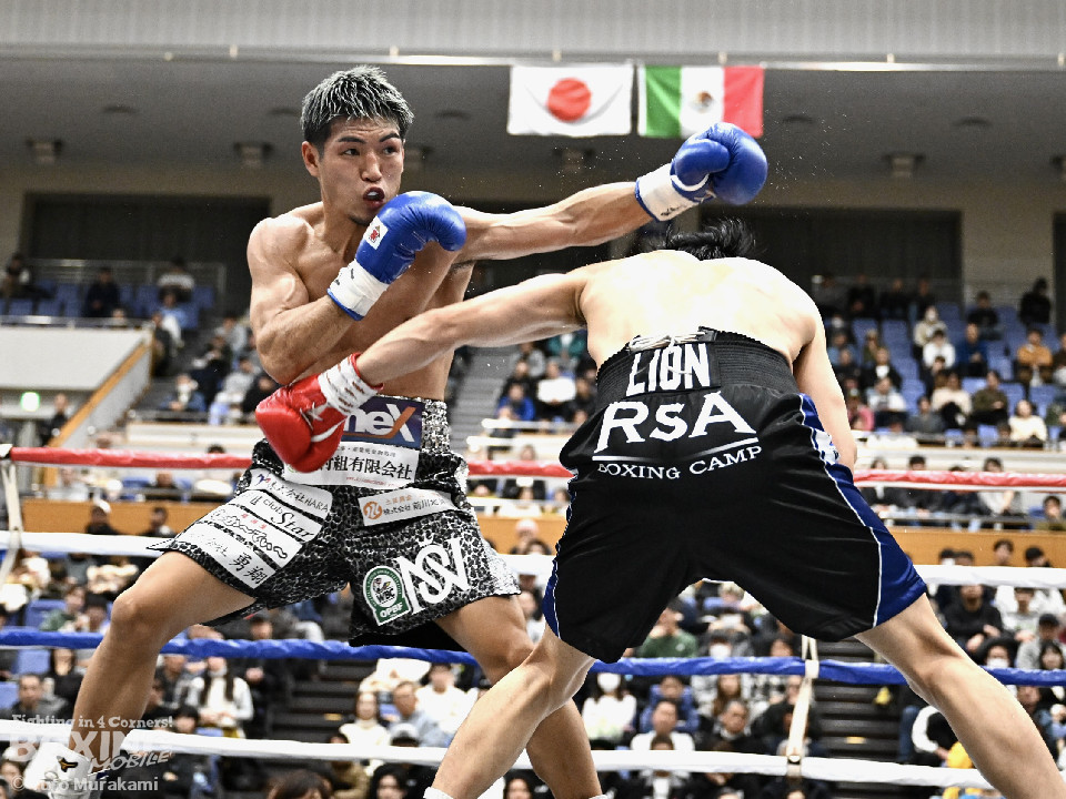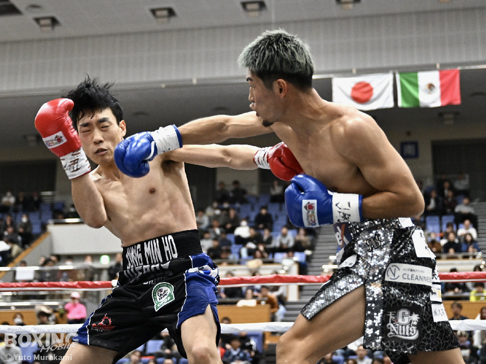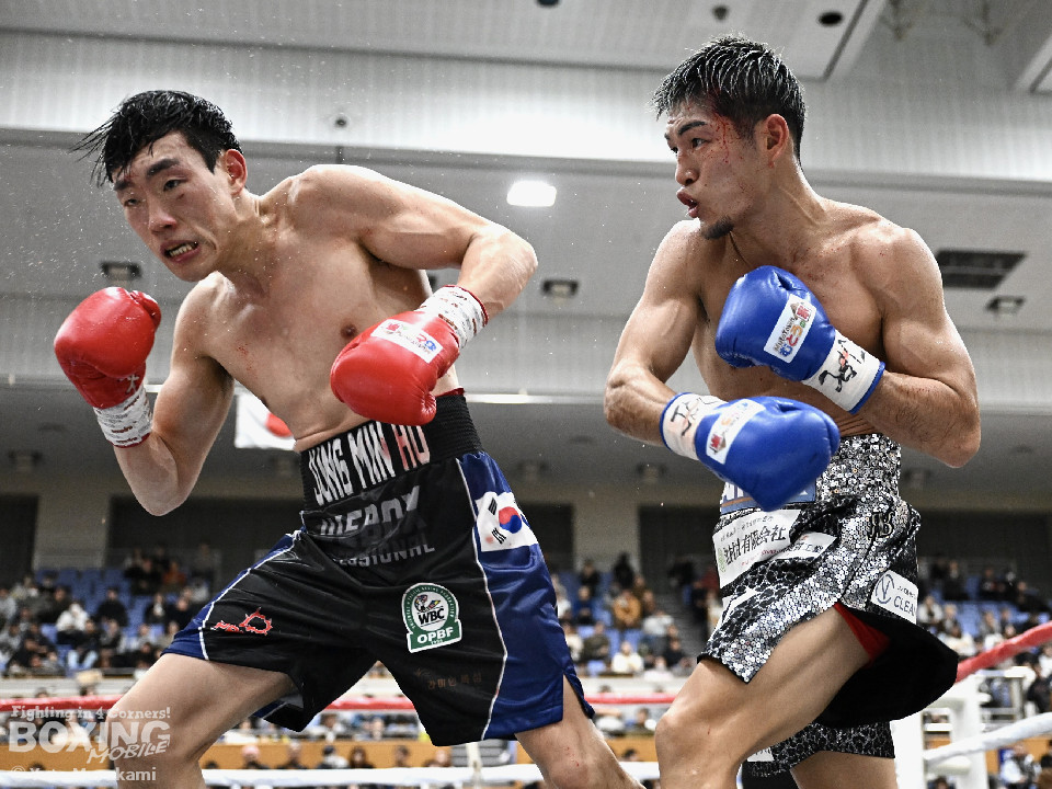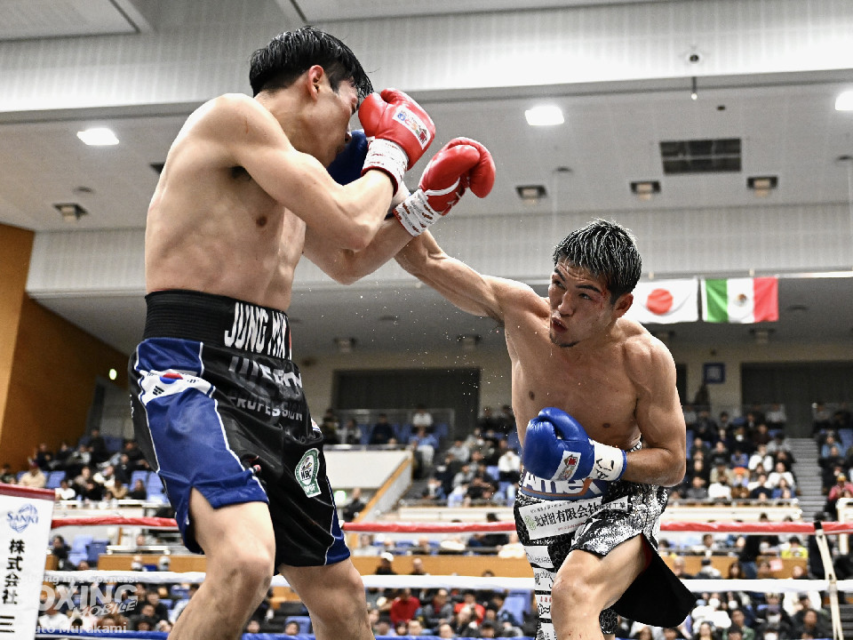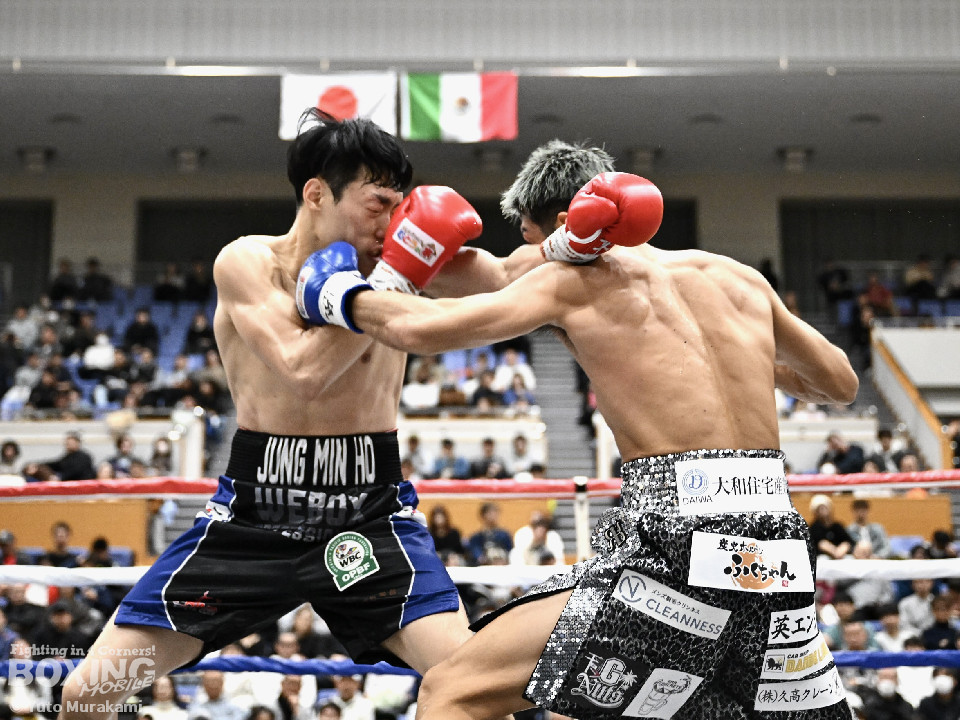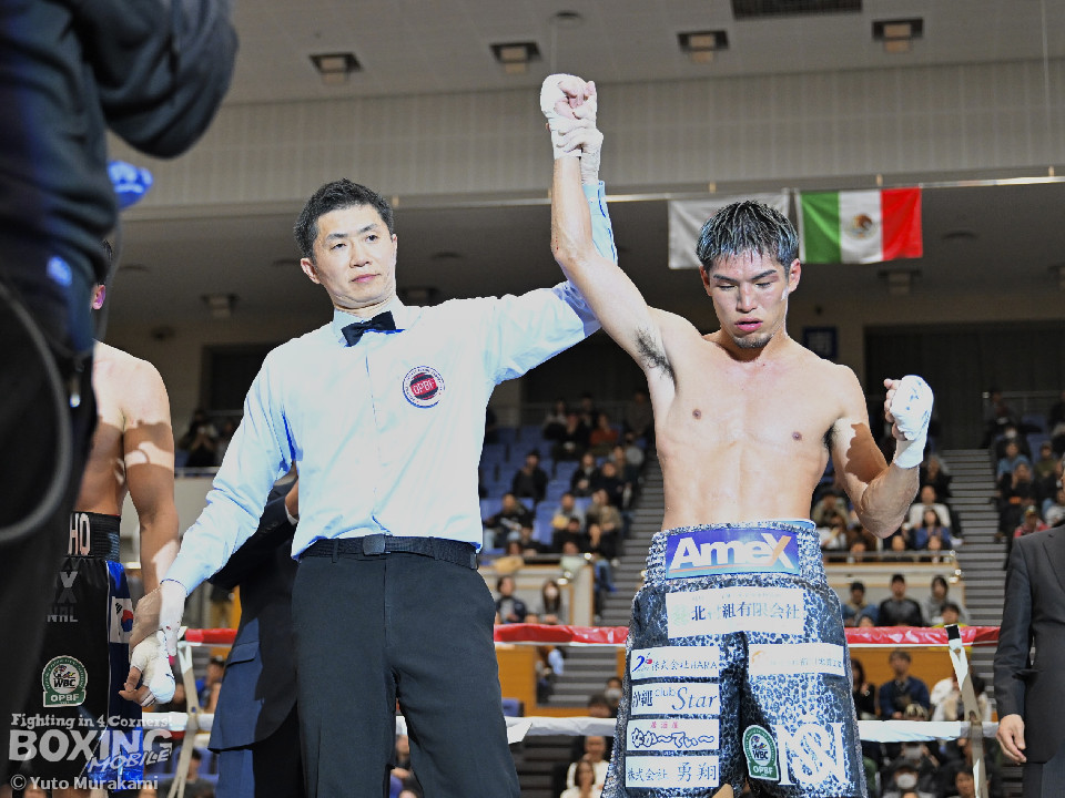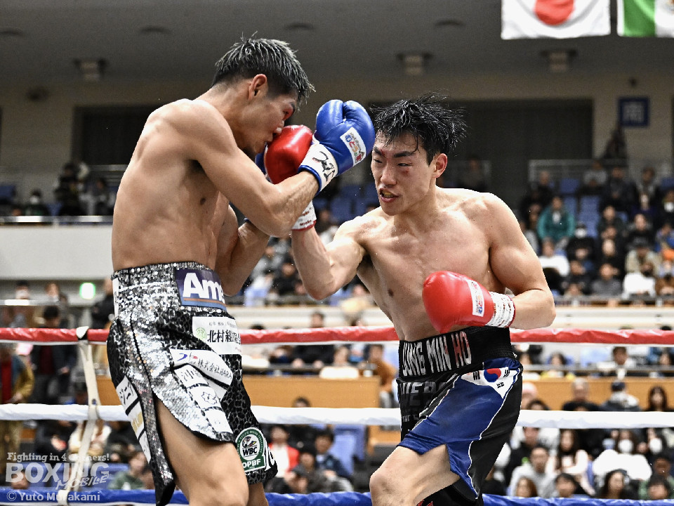試合: かつて父の繁会長が保持していたOPBF東洋太平洋の王座獲得を狙う仲里は応援団の指笛に背中を押されて堂々のリングイン。ジュンもリングイン前に陣営で円陣を組み気合いを入れての入場。1回、仲里はボディにジャブを伸ばしタイミングを伺うと右ボディを好打。丁寧にジャブから左フックをガードの上から叩き込み試合に入る。ジュンは長いリーチを活かしたジャブで距離を確認。2回、ジュンはワンツーをヒット。仲里は丁寧なボクシングで上下にパンチを打ち込み応戦。3回、仲里は右カウンターを好打。左フックをねじ込むが、ジュンも左フックで頬を弾き、緊張感あふれる攻防が繰り広げられた。ジュンはヒッティングにより左目上をカット。4回、互いのパンチが交錯する中、仲里は右から左ボディを好打。攻勢をアピール。5回、仲里は右ストレートからの返しの左フックでダウンを奪う。ジュンは辛うじて立ち上がると仲里は一気に畳み掛けようとするがここはゴングに救われた。5回終了時点での採点は50-44×2、48-46×1で仲里を支持。6回、ジュンは前に出てパンチを繰り出すが、仲里は冷静にパンチを外し応戦。7回、仲里は眉間を偶然のバッティングによりカット。8回、クロスレンジで仲里は打ち終わりに左フックをヒット。右ストレートで顔を弾き、攻勢を印象付けた。9回、ジュンはワンツーを繰り出すが、仲里は集中したボクシングを展開。上下にパンチを放ちペースを渡さず。最終、ジュンは追いかけて左フックを捩じ込むが、仲里は左右ボディでえぐると、右ストレートを叩き込み最後まで丁寧に攻めて勝利を手繰り寄せた。ジャッジ3者とも仲里を支持。東洋太平洋ライト級新チャンピオンに輝いた。