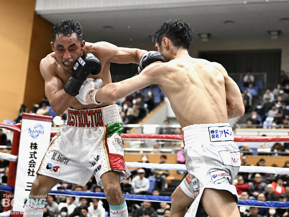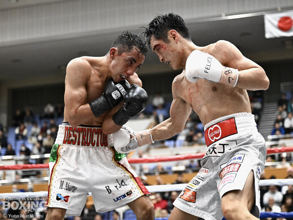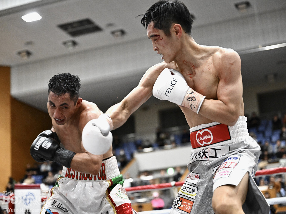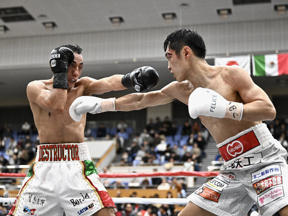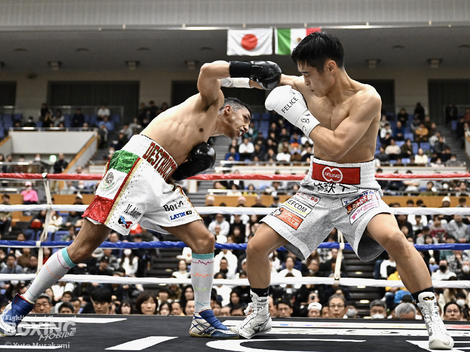 IBF世界スーパーバンタム級挑戦者決定戦。世界2階級制覇を狙う西田とメキシコ期待の新鋭メルカドが対峙した。両国の国歌が流れると会場がキュッと引き締まった。静寂に包まれる中スタートした試合は、メルカドが頭を振りながら右フックを強振するが、サウスポー西田は冷静に対応。要所で左ボディストレートを差し込み先手を奪った。2回、偶然のバッティングで西田は左目上、メルカドは左額をカット。再開後、メルカドは左右フックを叩きつけるが、西田は負けん気の強さを見せて左ボディアッパー、右フックを好打。3回、西田は角度を変えながら左ストレートを決めるとリターンの右をブロックで回避。4回も西田のラウンド。左ボディアッパーで迎え撃つと折りを見て左フックをヒット。5回、西田は左ボディアッパーで動きを止めると連打で攻勢。メルカドはヒッティングで右目上をカット。6回、「西田」コールが沸き起こる中、強弱をつけた上下のコンビネーションでダメージを与えた。7回、西田はボディ攻撃を徹底。しかし、メルカドも気持ちの強さを見せて打ち返した。しかし、西田の傷が深くなり、2度目のドクターチェックの末、レフェリーはこれ以上の試合を不能と判断しストップ。勝負は負傷判定へと持ち込まれた。ジャッジ3者ともに5ポイント差をつけた西田が世界王座挑戦権を獲得した。