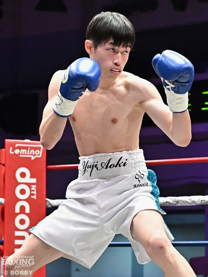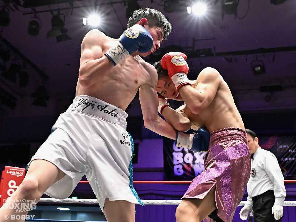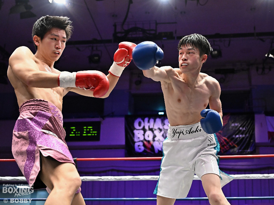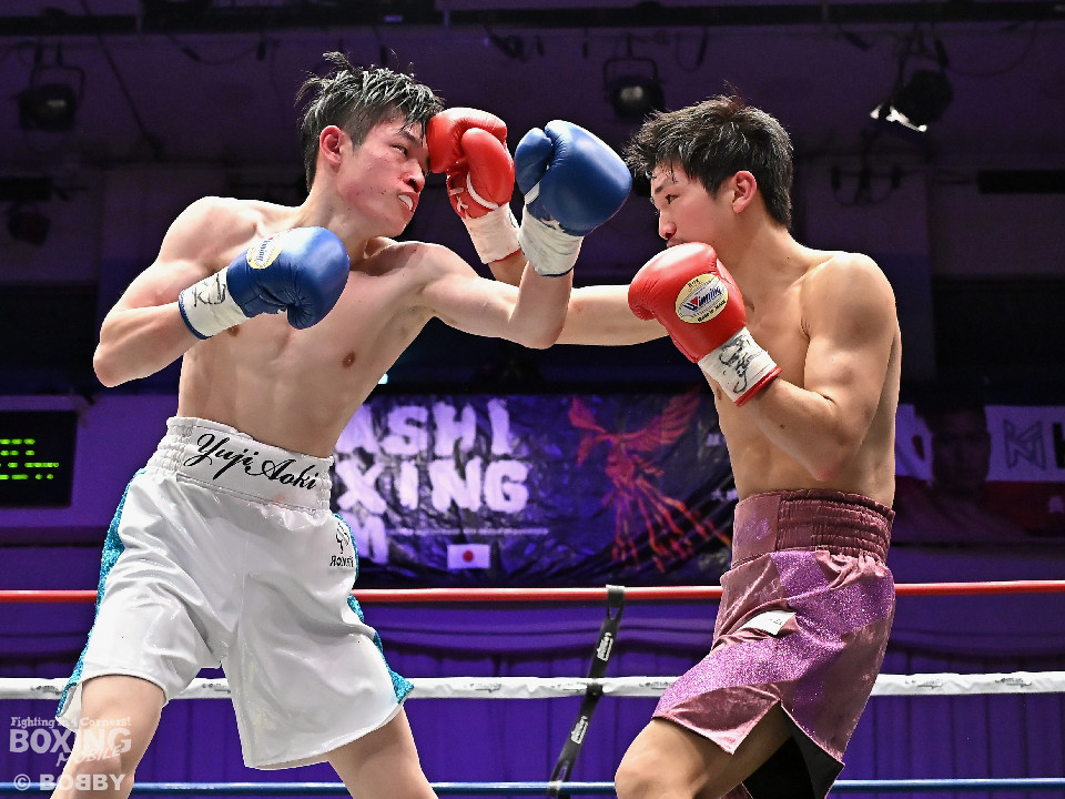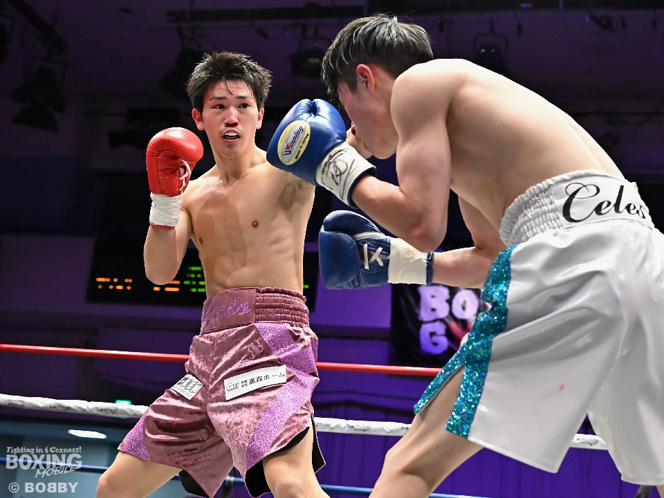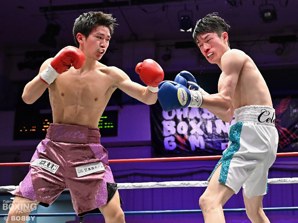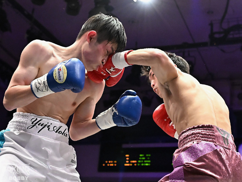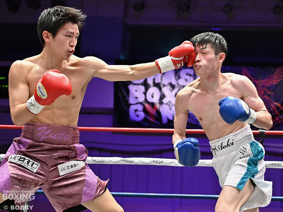 試合:青木がトントンとジャブを出しながらリズムを作るが、高森はガードで対応。初回は大きなアクションは起こらず。2回、青木はロングレンジから左で組み立てると左フックをヒット。3回、高森はプレスをかけて左ボディから左フックにつなげてアグレッシブな姿勢。4回、青木は出入りを意識しながらワンツーをヒット。高森も気持ちを切らさず左ボディから回転力を上げて攻め立てた。ジャッジに委ねられた採点は38-38×3の引き分けとなった。