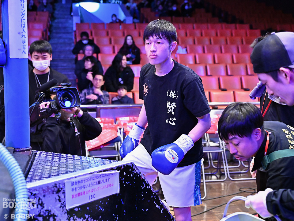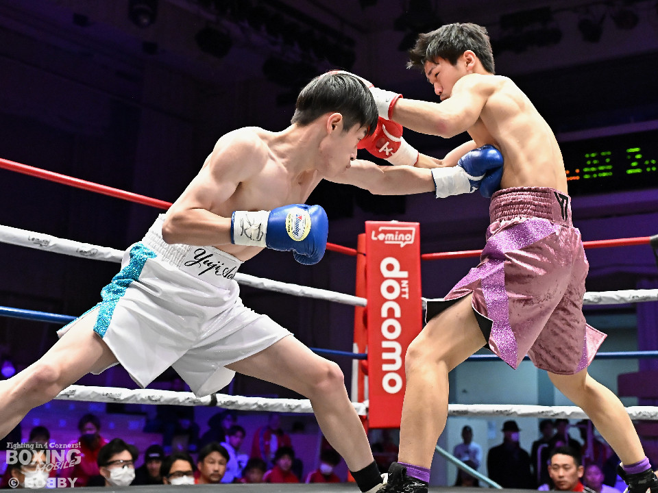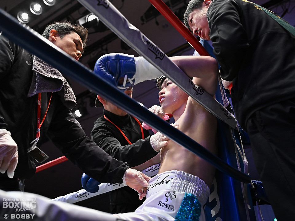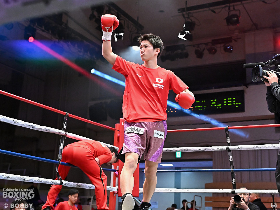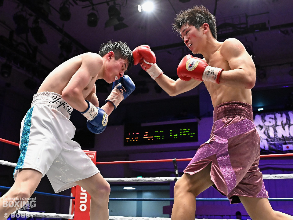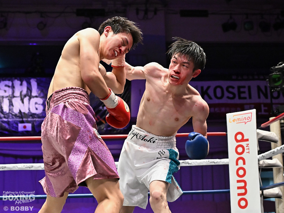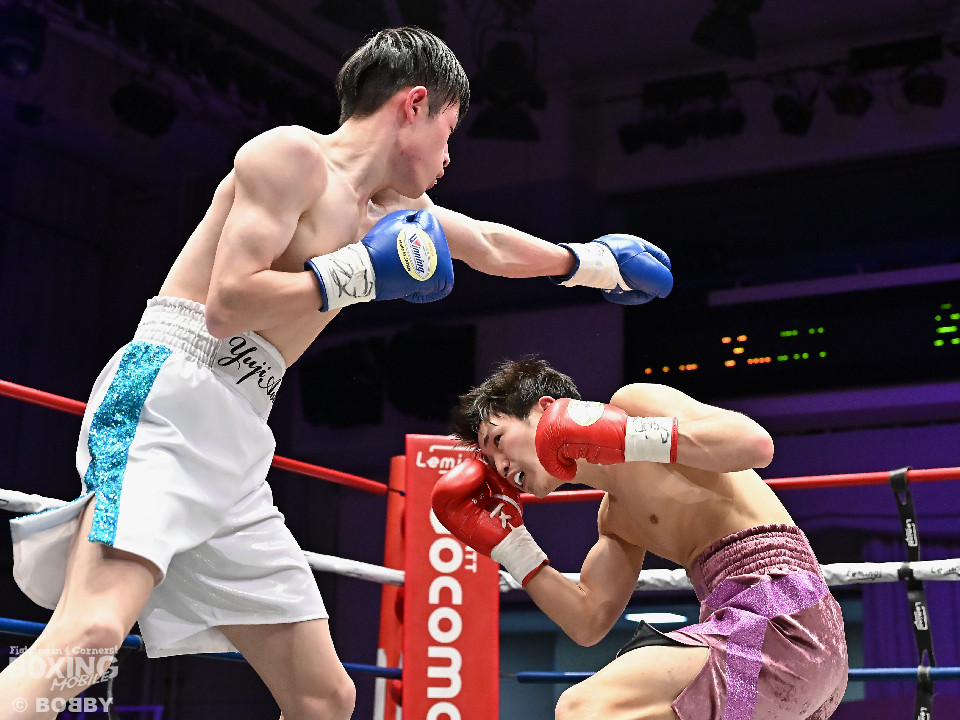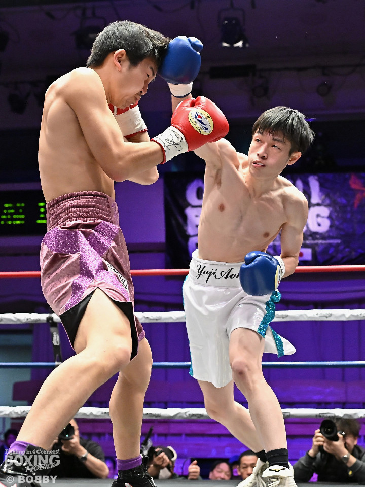 試合:青木がトントンとジャブを出しながらリズムを作るが、高森はガードで対応。初回は大きなアクションは起こらず。2回、青木はロングレンジから左で組み立てると左フックをヒット。3回、高森はプレスをかけて左ボディから左フックにつなげてアグレッシブな姿勢。4回、青木は出入りを意識しながらワンツーをヒット。高森も気持ちを切らさず左ボディから回転力を上げて攻め立てた。ジャッジに委ねられた採点は38-38×3の引き分けとなった。