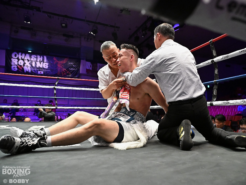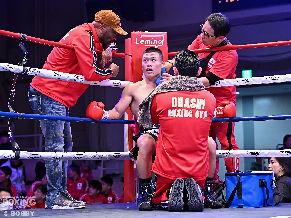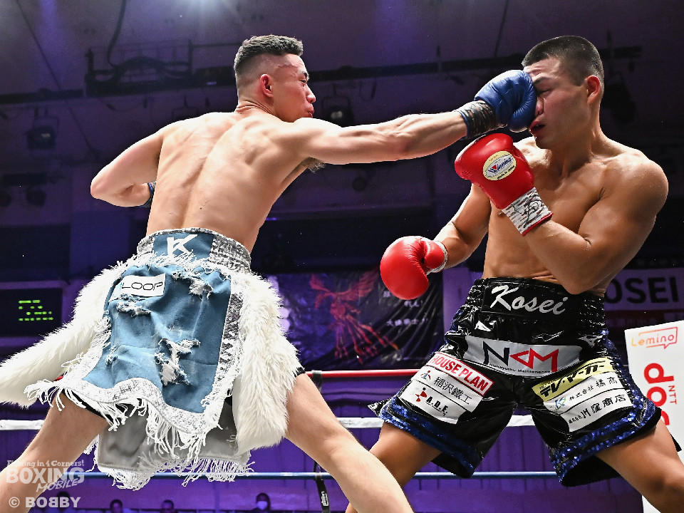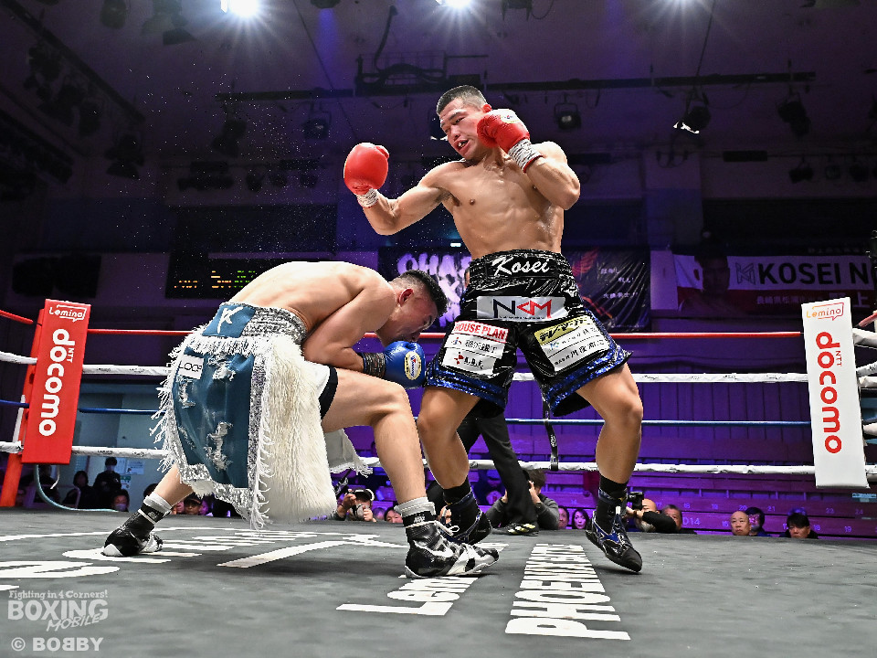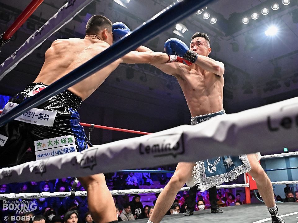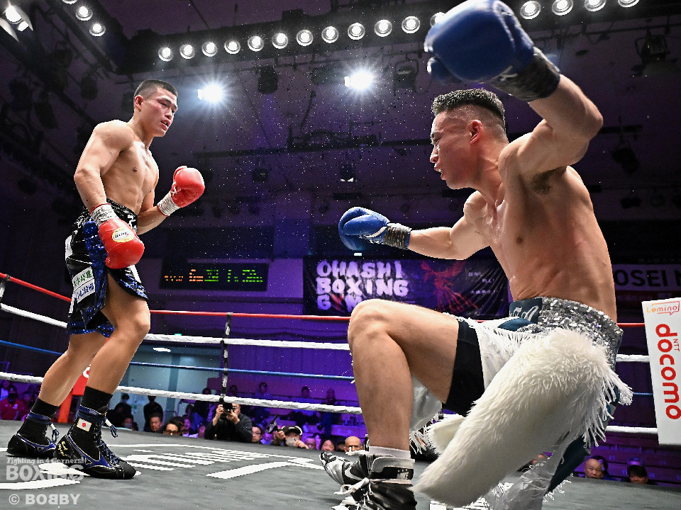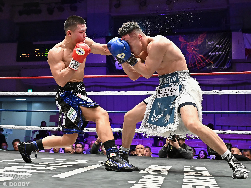 試合:サウスポー同士による一戦は、ジャブの差し合いからスタートする中、上村が単発の左ストレートをヒット。2回、一進一退の攻防で神経戦が続く。3回、上村がジリジリと距離を詰めて左ストレートを繰り出せば、野上は打ち終わりを狙う構図。4回、野上は左オーバーハンド、右ボディを好打し相手の顔面を紅潮させた。5回、上村はリターンの左ストレートで顔を弾くとヒット数でやや上回った印象。6回、野上は右ボディで下を意識させると相撃ちの右フックでダウンを奪取。再開後、左ストレートで倒してフィニッシュした。野上が昨年8月のタイトル戦以来の再起戦を飾った。
