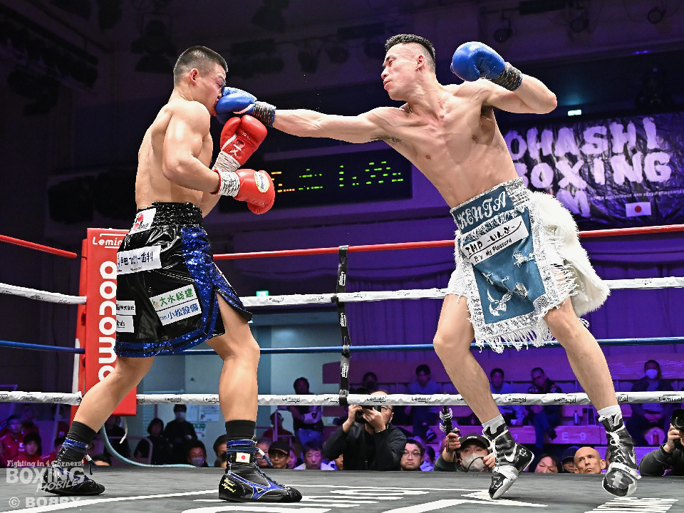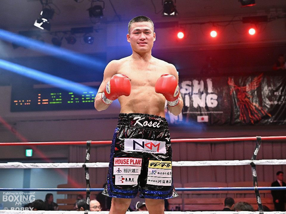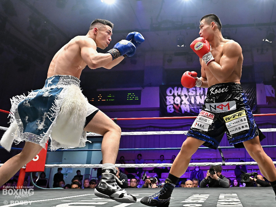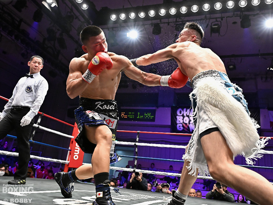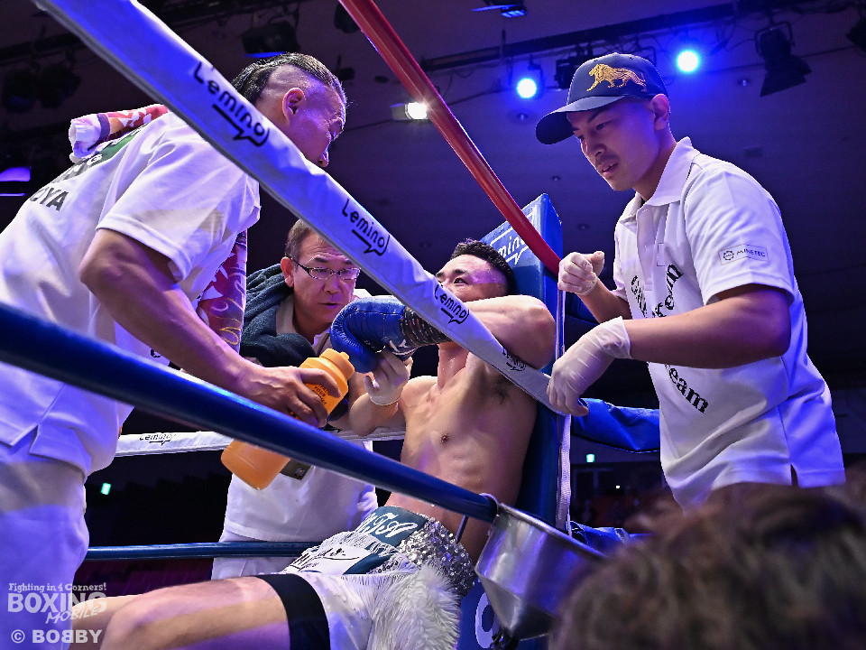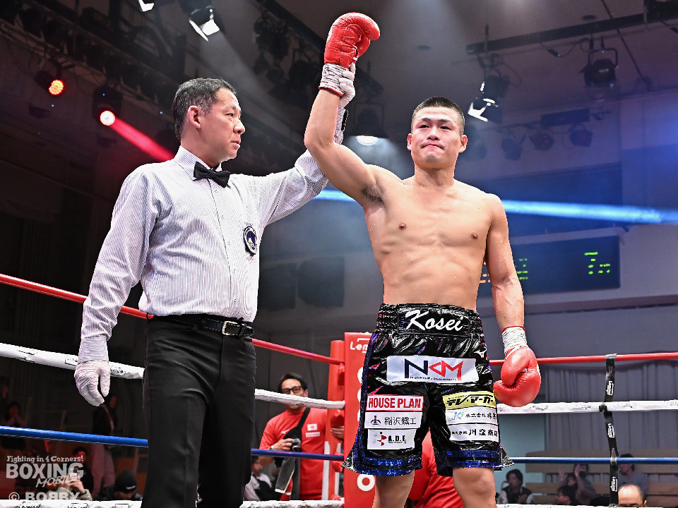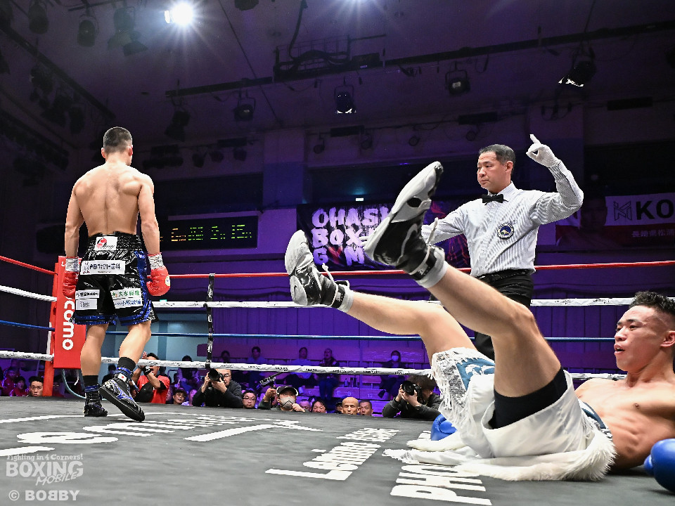 試合:サウスポー同士による一戦は、ジャブの差し合いからスタートする中、上村が単発の左ストレートをヒット。2回、一進一退の攻防で神経戦が続く。3回、上村がジリジリと距離を詰めて左ストレートを繰り出せば、野上は打ち終わりを狙う構図。4回、野上は左オーバーハンド、右ボディを好打し相手の顔面を紅潮させた。5回、上村はリターンの左ストレートで顔を弾くとヒット数でやや上回った印象。6回、野上は右ボディで下を意識させると相撃ちの右フックでダウンを奪取。再開後、左ストレートで倒してフィニッシュした。野上が昨年8月のタイトル戦以来の再起戦を飾った。