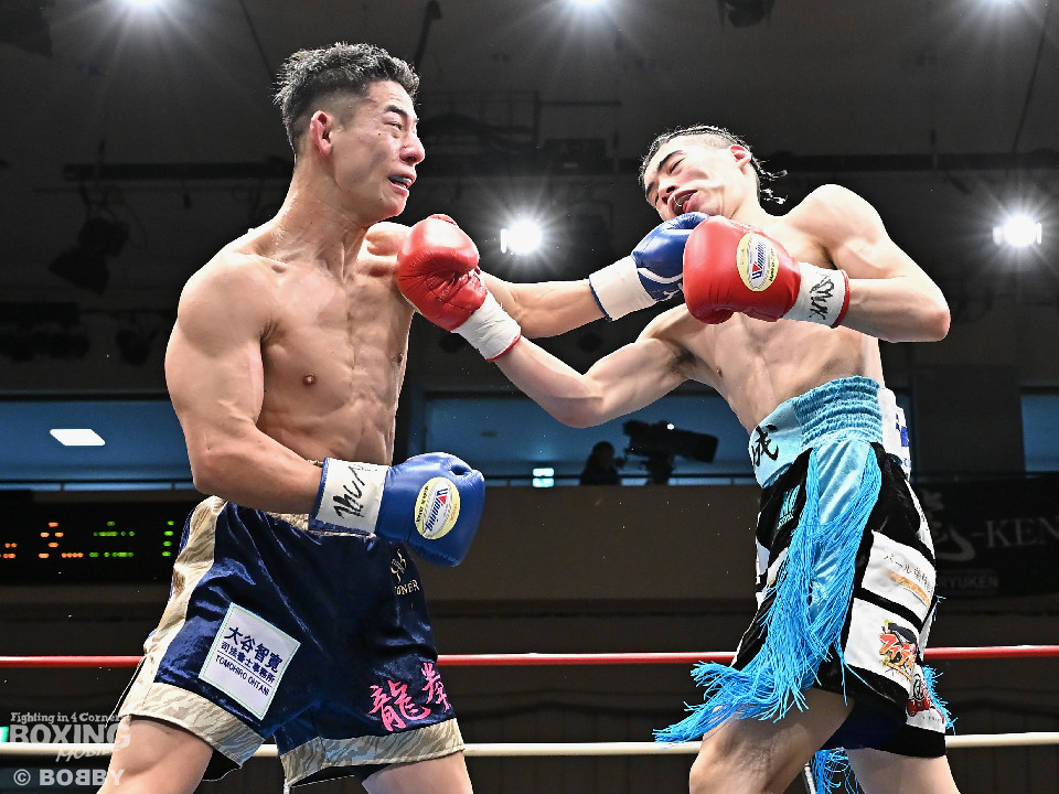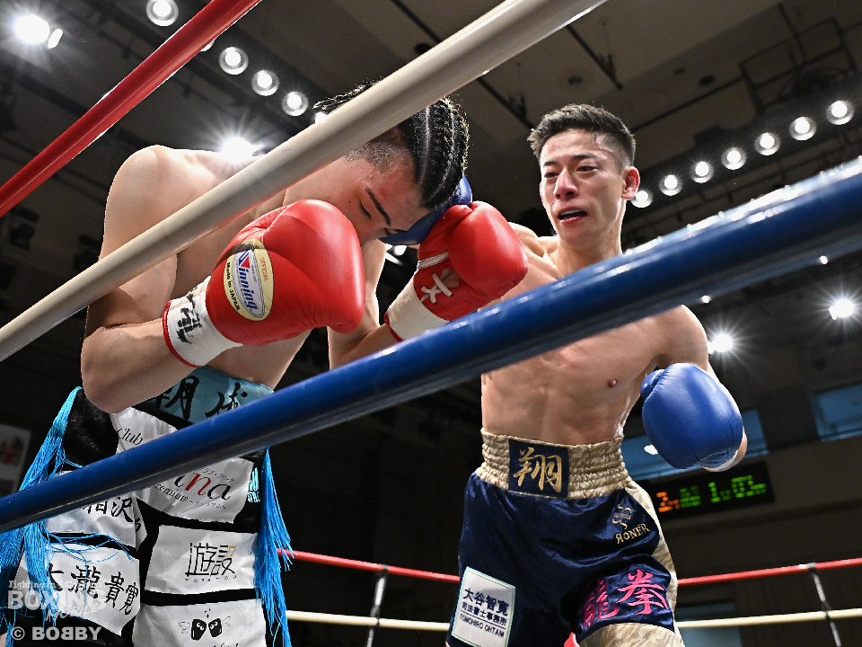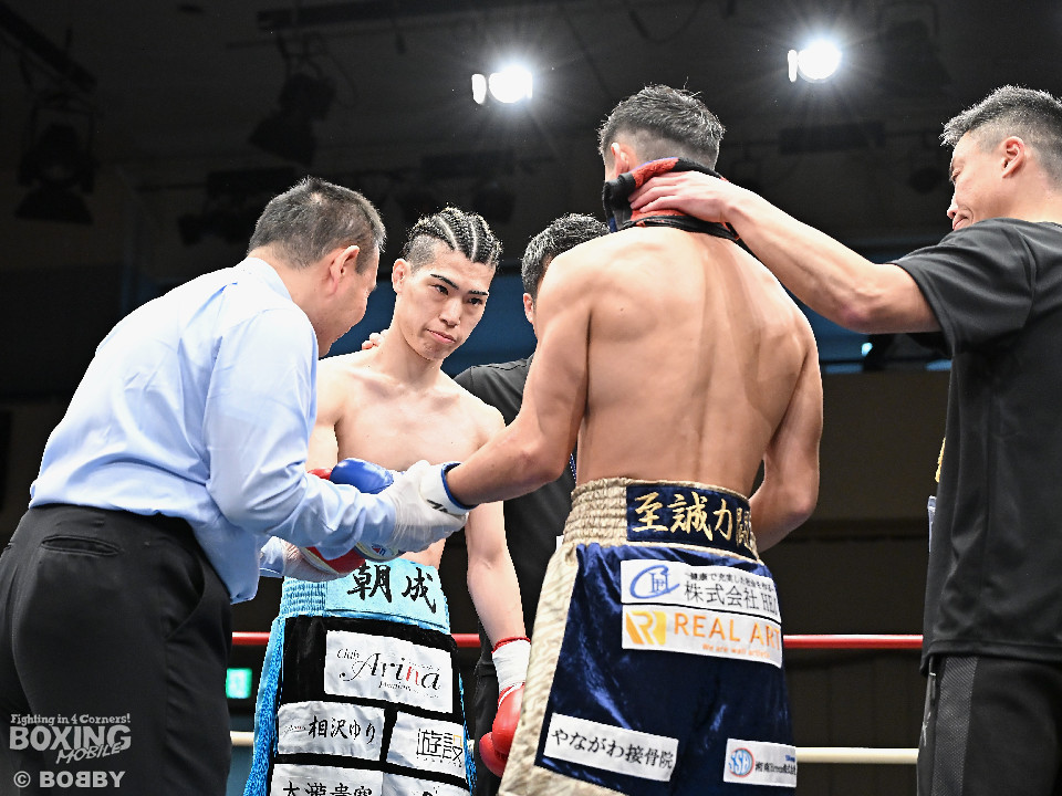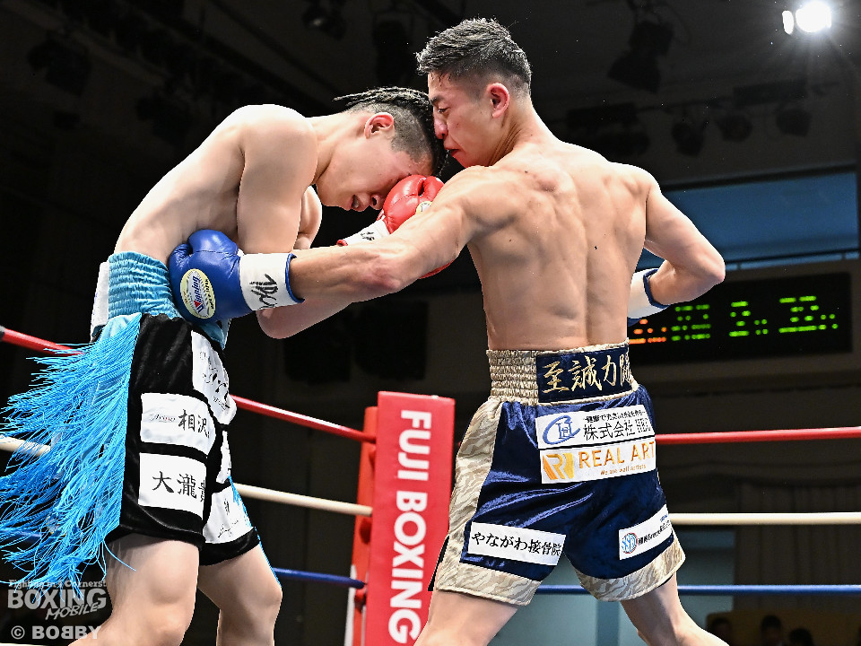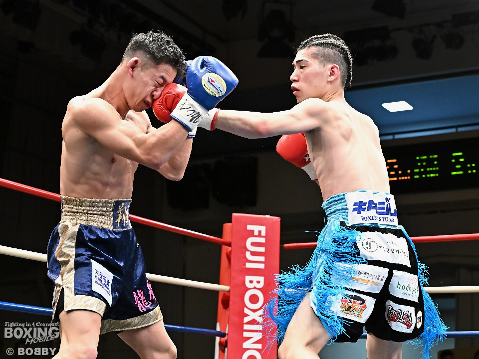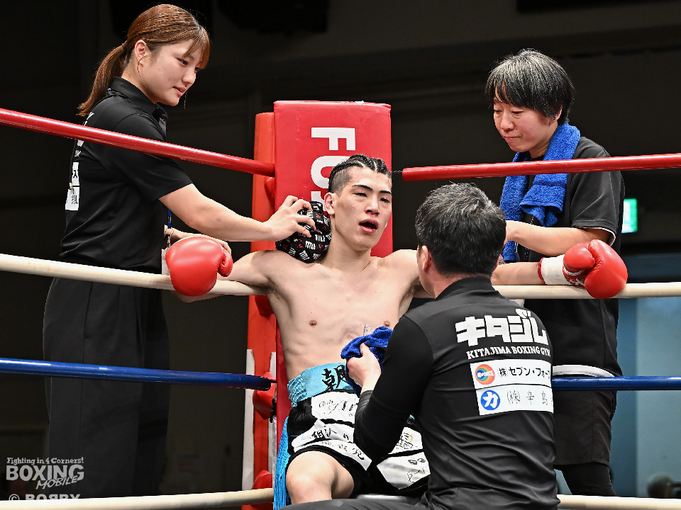 試合:伊豆が右ロングフックから仕掛けるが、松村は押し負けず右ショートアッパー、右ボディストレートをコツコツと当ててペースを掌握。2回、至近距離でのショートパンチの応酬。松村はポジションを上手く切り替えながらボディ攻撃を徹底。防戦一方になったところでレフェリーが割って入った。