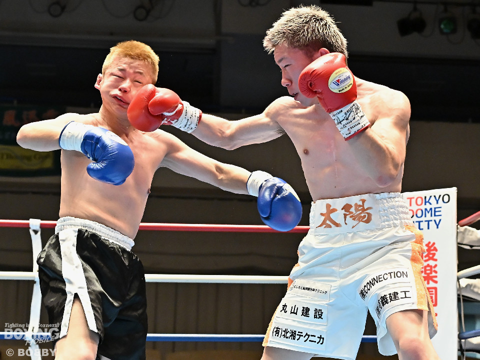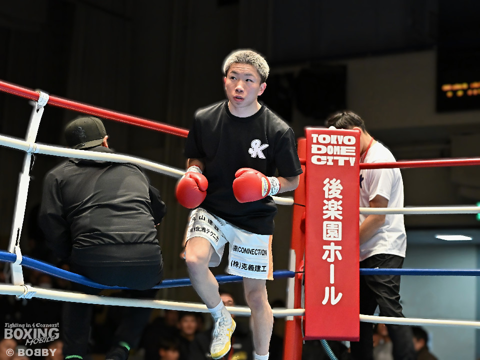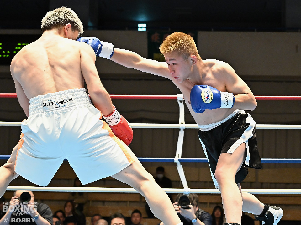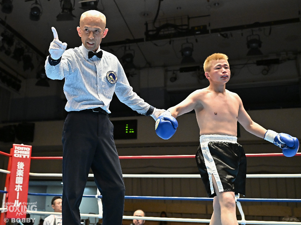 試合:サウスポー野中が前の手で距離を作りながら左ストレートをヒットし先制。2回、右から切り込む根岸だが、距離が遠く決定打を打ち込めず。野中は上下に打ち分けペースを維持した。3回、野中はしつこい相手に手を焼きながらも右フックを再三ヒット。ラウンド終盤、根岸はヘッドバッティングの反則で減点1が課せられた。勝負が決まったのは4回、野中は左ストレートで動きを止めると一気にスパート。防戦一方になった根岸を見てレフェリーが割って入った。