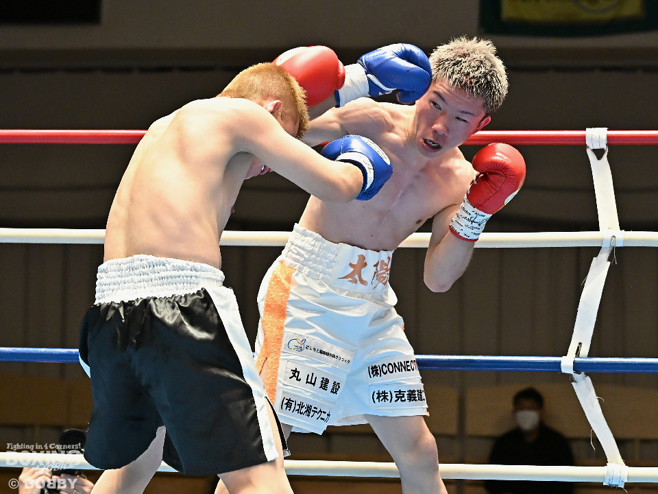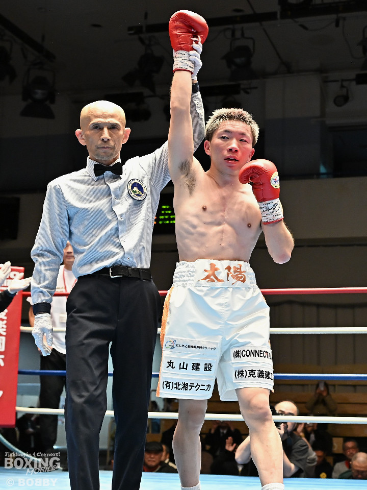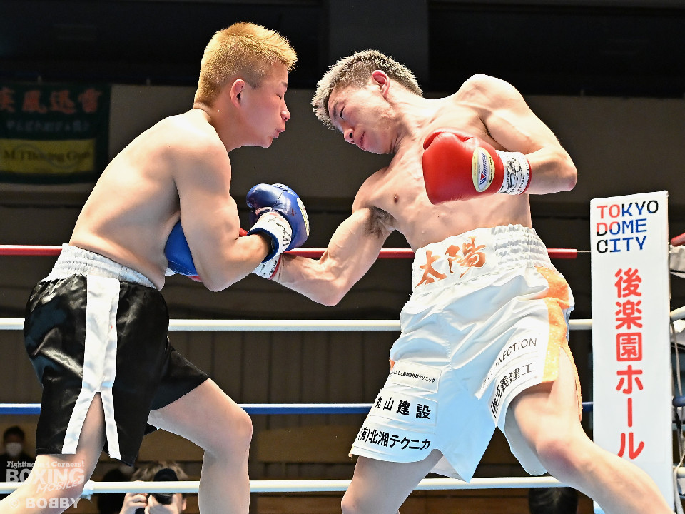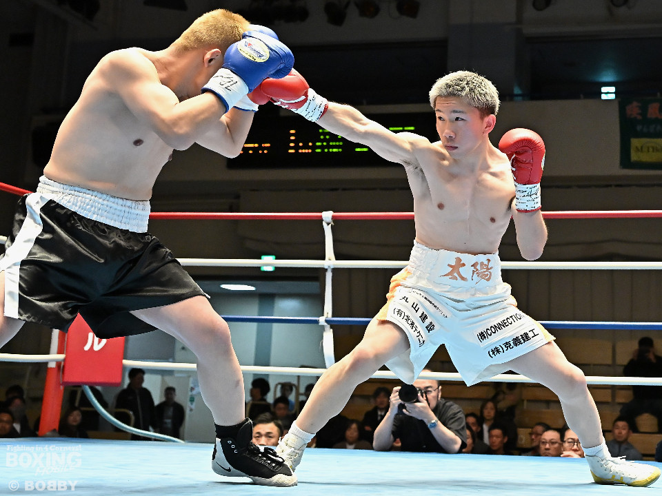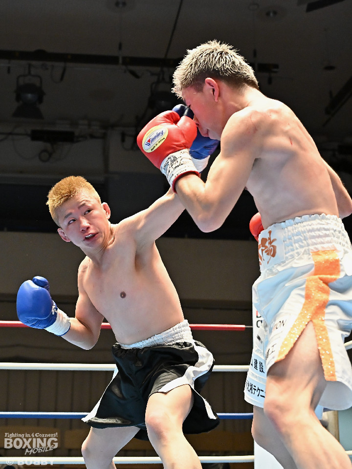 試合:サウスポー野中が前の手で距離を作りながら左ストレートをヒットし先制。2回、右から切り込む根岸だが、距離が遠く決定打を打ち込めず。野中は上下に打ち分けペースを維持した。3回、野中はしつこい相手に手を焼きながらも右フックを再三ヒット。ラウンド終盤、根岸はヘッドバッティングの反則で減点1が課せられた。勝負が決まったのは4回、野中は左ストレートで動きを止めると一気にスパート。防戦一方になった根岸を見てレフェリーが割って入った。