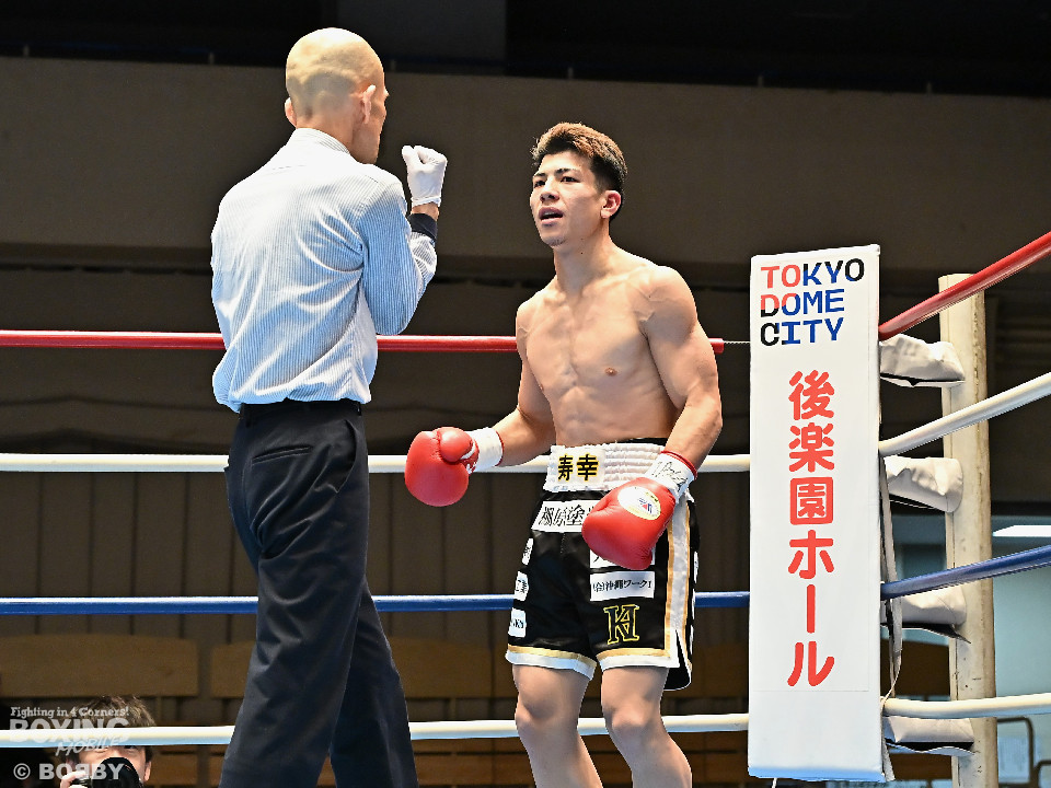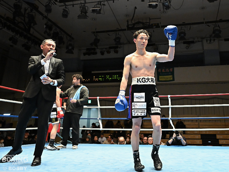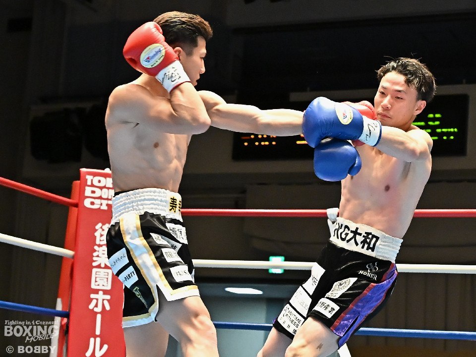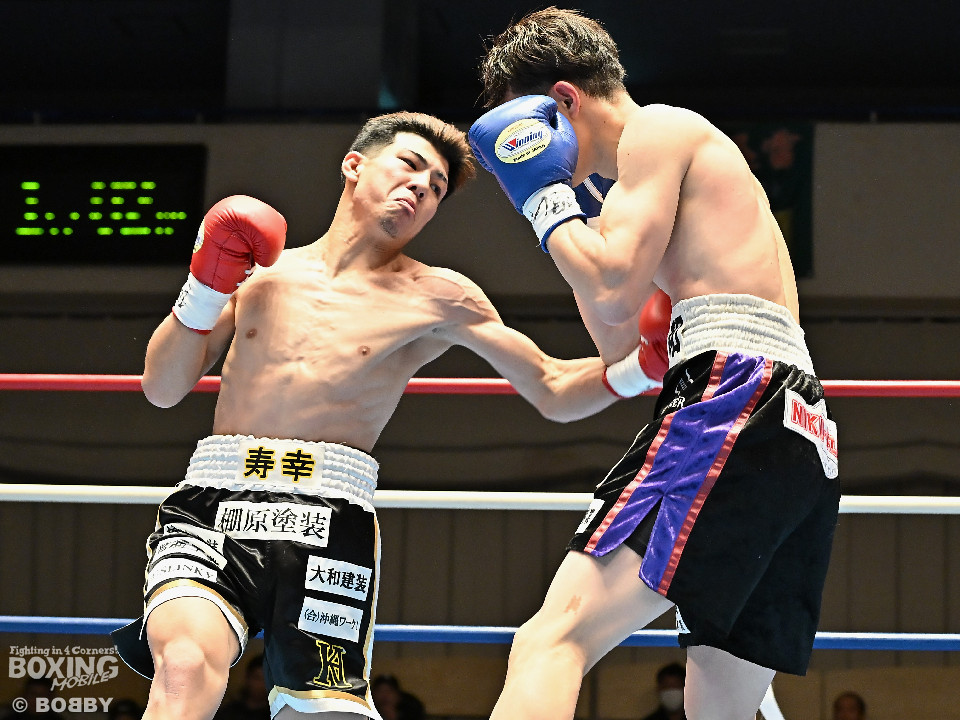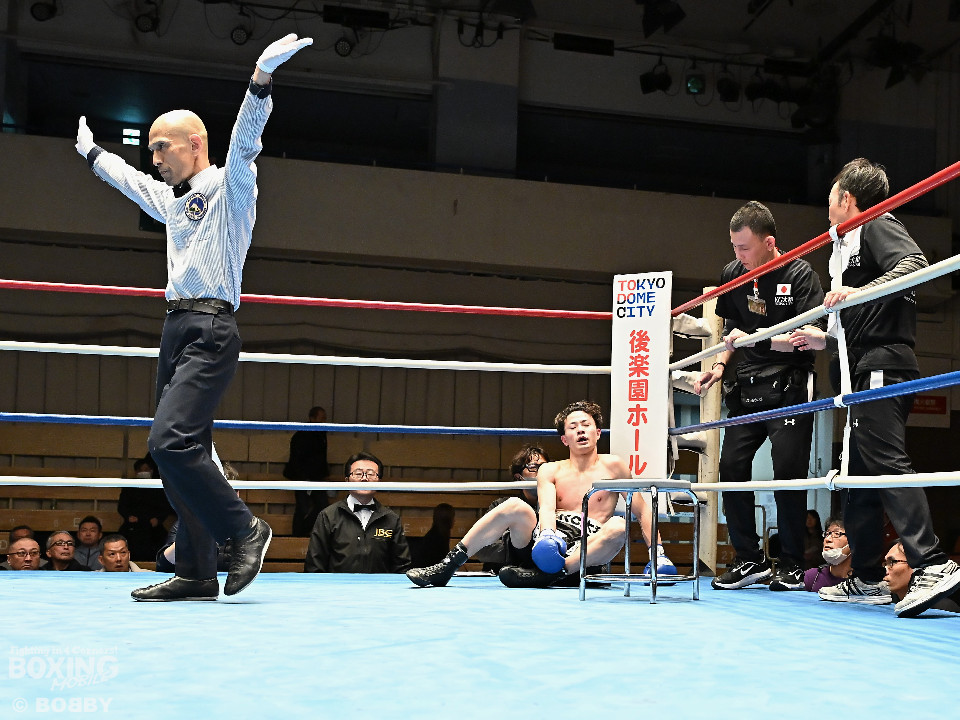 試合:齋藤が打ち終わりに右ストレートでガクッと腰を沈めさせて先制攻撃。しかし、金城もここは負けじと右フック、左ボディを強振。スリリングな攻防を繰り広げる中、齋藤が左フックで倒すとレフェリーはダウンを宣告した。2回、レフェリーのブレイク後に金城が加撃。パンチを浴びた齋藤はダメージが甚大でレフェリーは休憩を与えたが、試合ができる状態ではなく担架で運ばれた。レフェリーは金城に失格を言い渡し、齋藤が反則勝ちという結果になった。