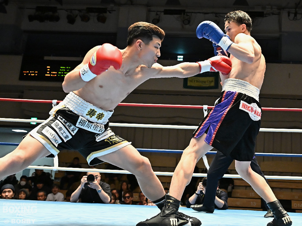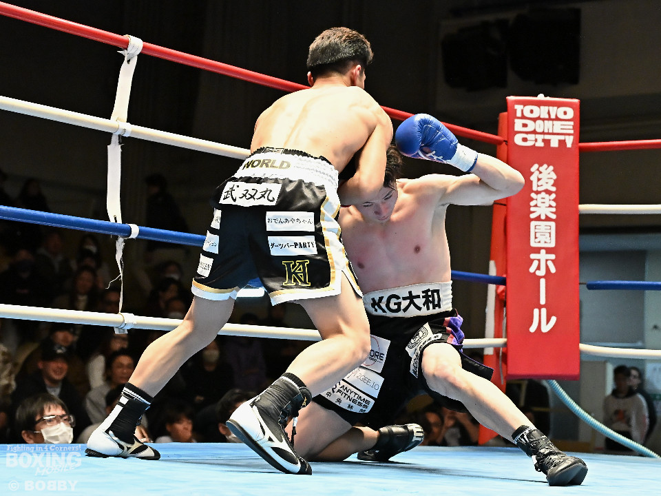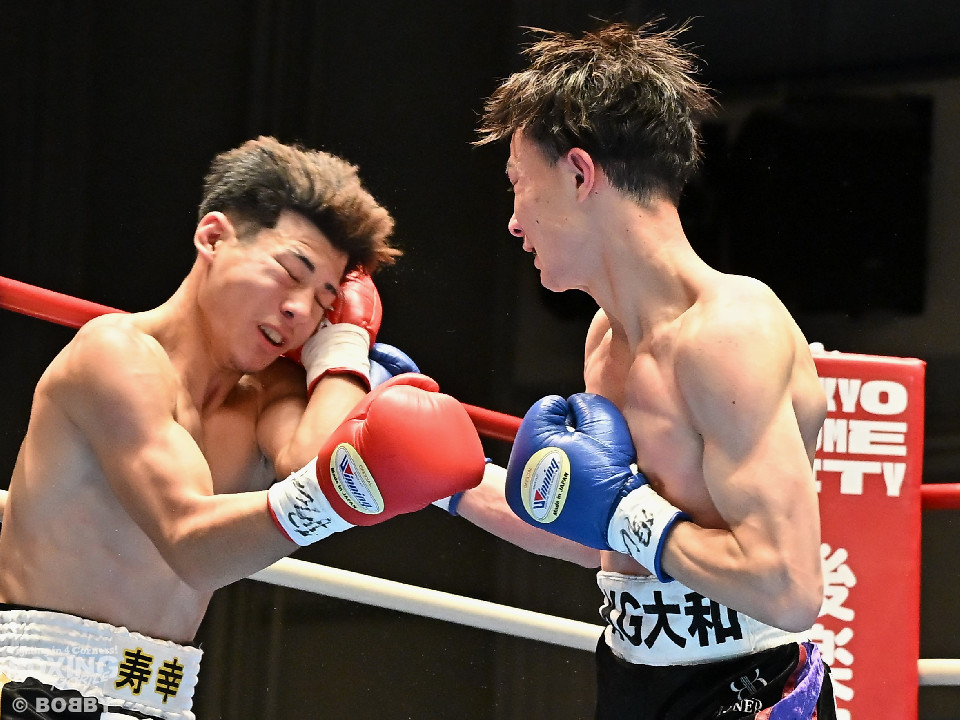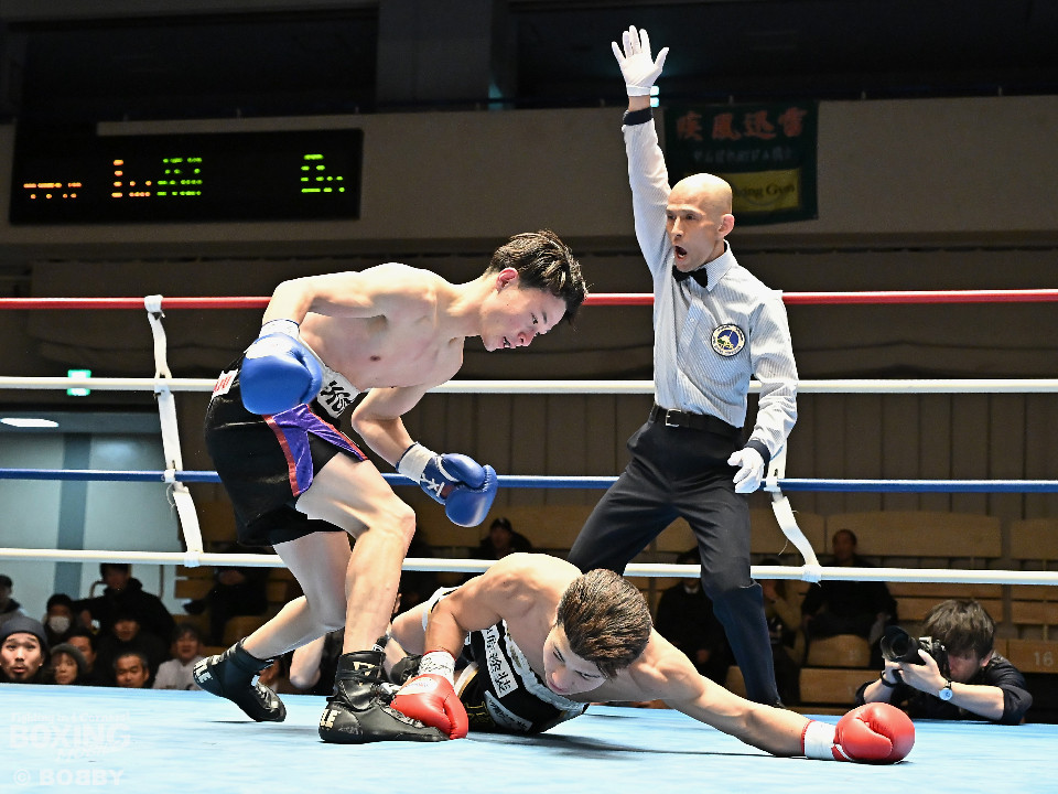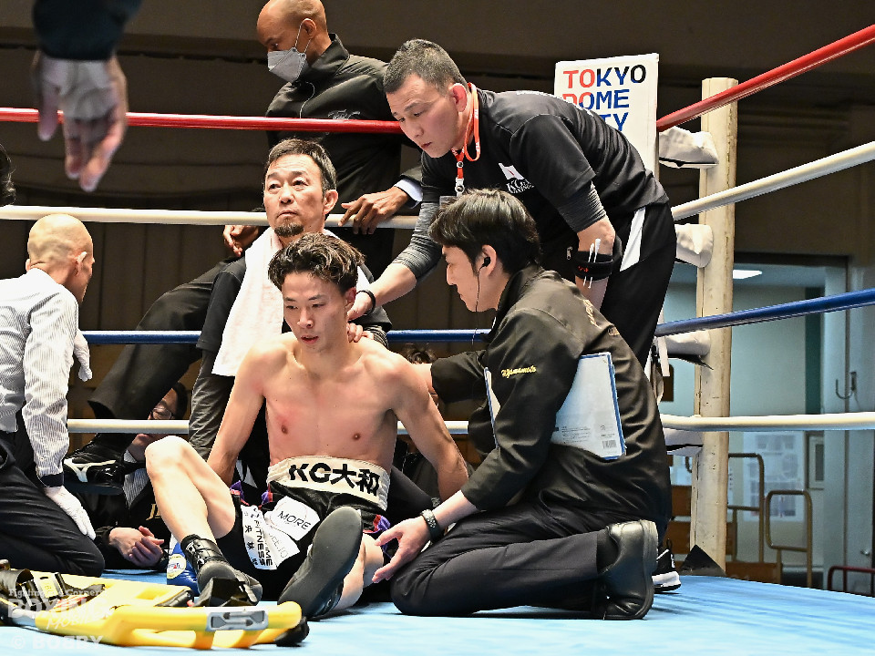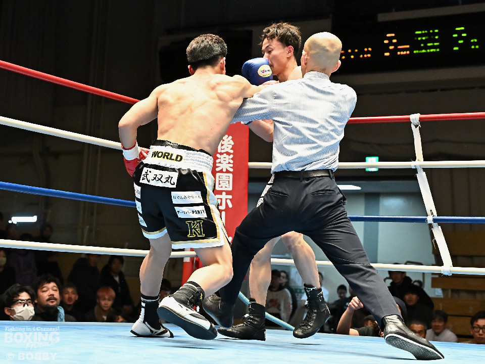 試合:齋藤が打ち終わりに右ストレートでガクッと腰を沈めさせて先制攻撃。しかし、金城もここは負けじと右フック、左ボディを強振。スリリングな攻防を繰り広げる中、齋藤が左フックで倒すとレフェリーはダウンを宣告した。2回、レフェリーのブレイク後に金城が加撃。パンチを浴びた齋藤はダメージが甚大でレフェリーは休憩を与えたが、試合ができる状態ではなく担架で運ばれた。レフェリーは金城に失格を言い渡し、齋藤が反則勝ちという結果になった。