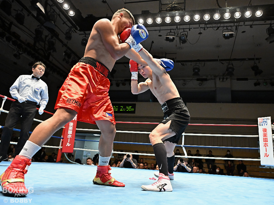 試合:元日本スーパーライト級1位の大野が1年3ヶ月ぶりにリングに上がった。立ち上がりから大野がボディに左右フックを叩きつけて積極的な攻撃。ヤノングはガードで被弾を最小限に抑えると右ボディを返した。2回、ヤノングは右ショートでグラつかせるが、ここを耐えた大野は右フックで左目上を切り裂き反撃。派手な打ち合いを続けた。3回、激しいパンチの応酬を繰り広げる中、今度は大野がヒッティングで左目上を腫らした。4回、ヤノングは右クロスでバランスを崩させて攻勢。しかし、大野も折々で左右フックを返し粘りを見せた。5回、お互いに体力の消耗が激しい中、要所でボディにパンチを集めたのはヤノング。6回、大野はジャブを飛ばしながら左ボディを好打すると続く回もジャブを軸に組み立てた。8回、最後の力を振り絞り懸命に打ち合う中、ヤノングの有効打がやや上回った。ジャッジに委ねられた採点は割れたがヤングに軍配が上がった。