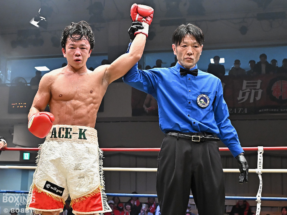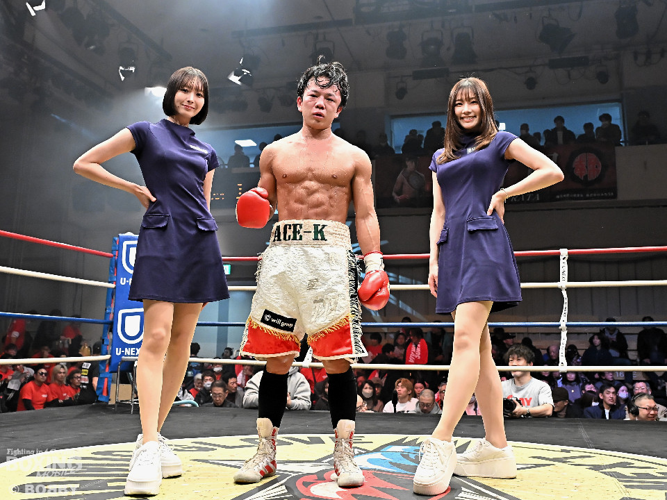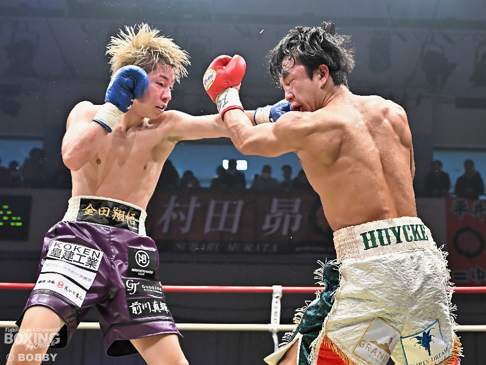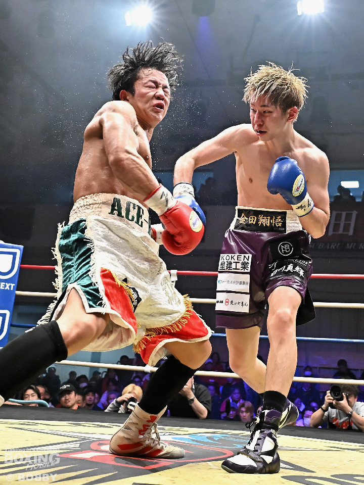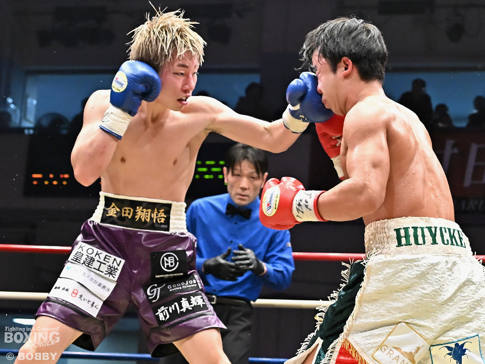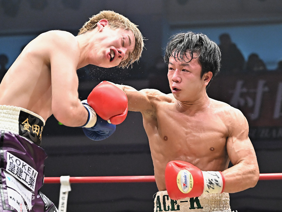 試合:金田がジャブからワンツー左フックのコンビネーションで腰を落とすと、金田はワンツー連打で追撃。膝を折った永里にレフェリーはダウンを宣告。再開後、金田はワンツー連打で攻めるも永里は左右アッパーで反撃した。2回、ワンツーを軸に攻める金田に対して永里は左右アッパーで反撃。3回、ワンツーから左ボディにつなげた金田に対し、永里は左を下から上に返し、ワンツーを左ボディにつなげた。4回、右フックからワンツーにつなげた永里は左右ボディから左アッパーを突き上げた。5回、ワンツーを軸に反撃を試みた金田だったが、永里がワンツーのコンビネーションと上下に散らしたパンチでペースを渡さなかった。6回、互いの意地をかけたラストラウンド、被弾を恐れずパンチを上下に散らし、右のクリーンヒットでポイントを加点した永里が3者の支持を得て判定勝利を飾った。判定結果がアナウンスされた瞬間に永里の応援団の歓声が響き渡り永里は応援団の声援に両手をあげて応えた。