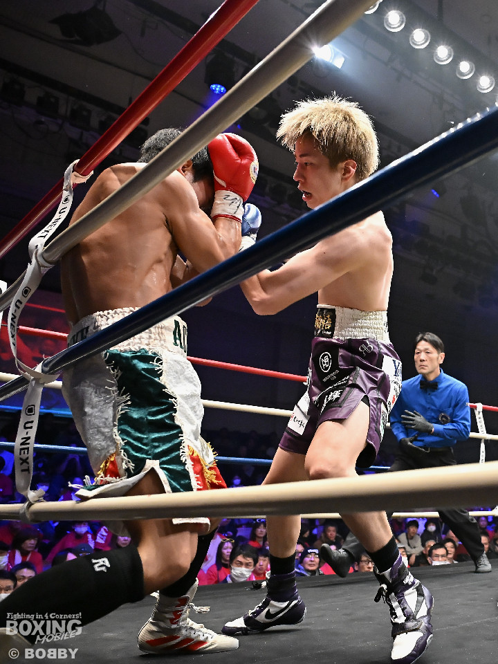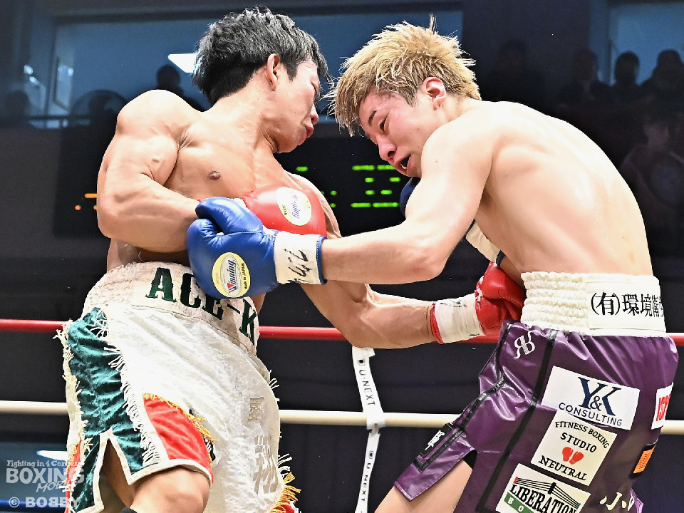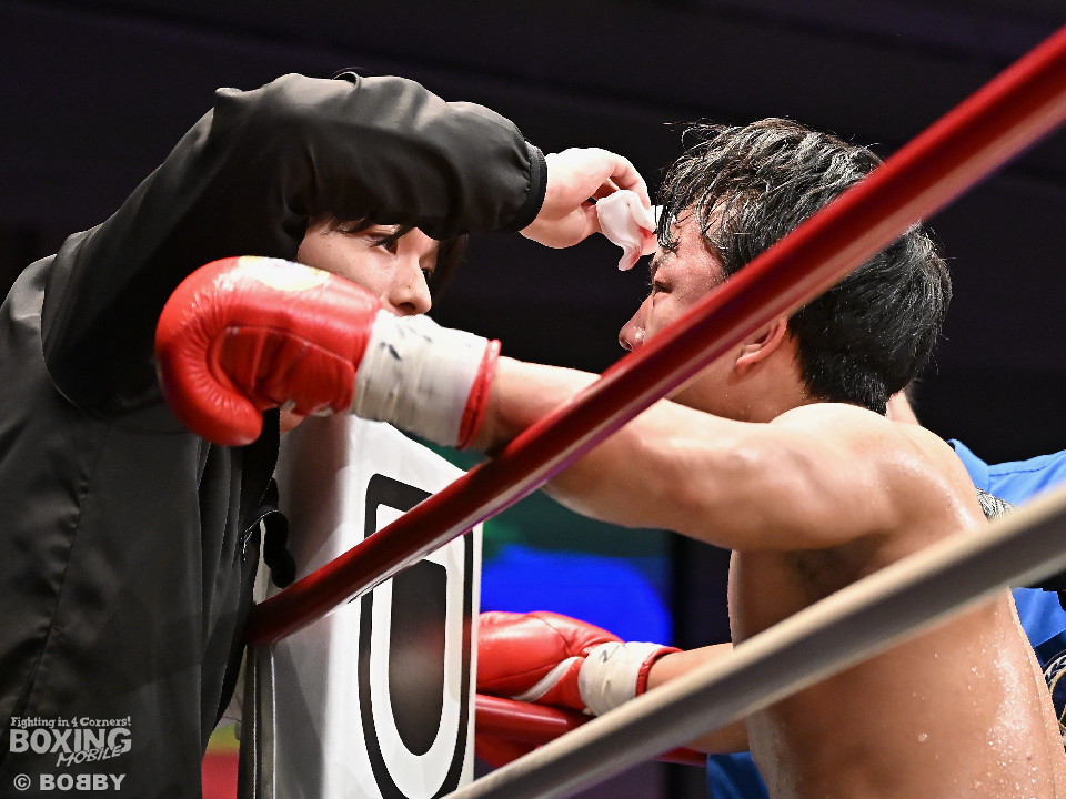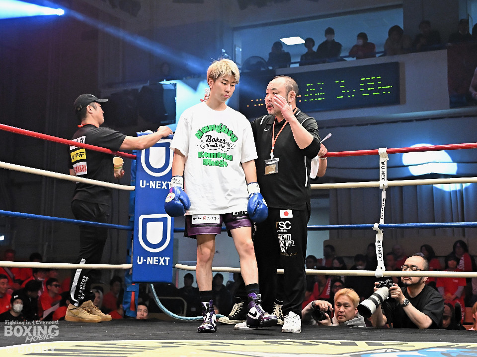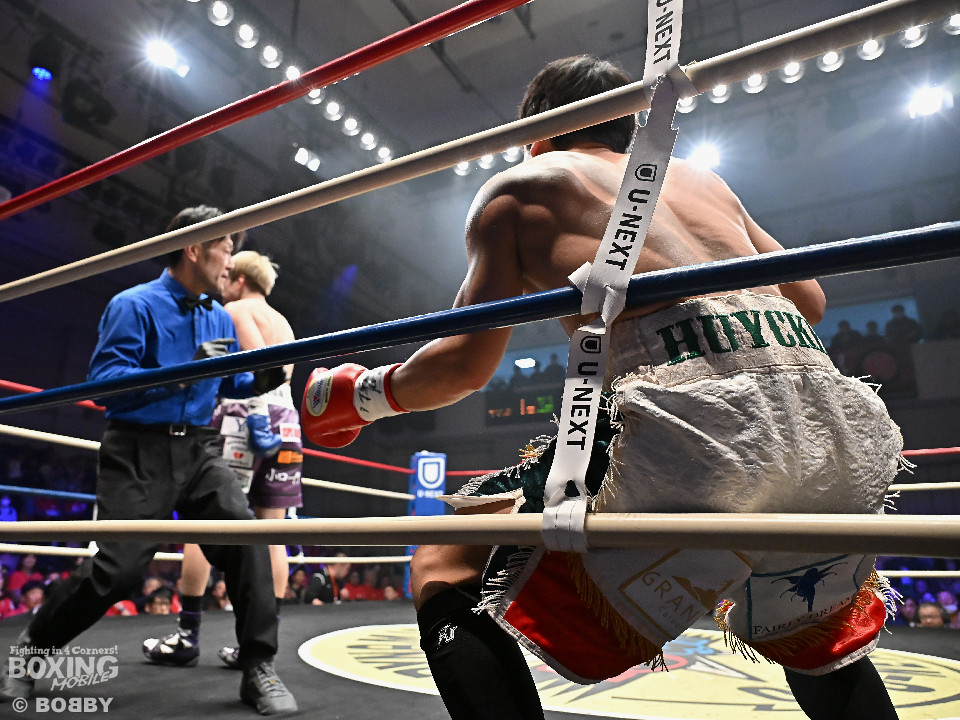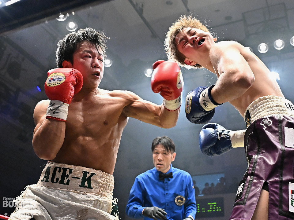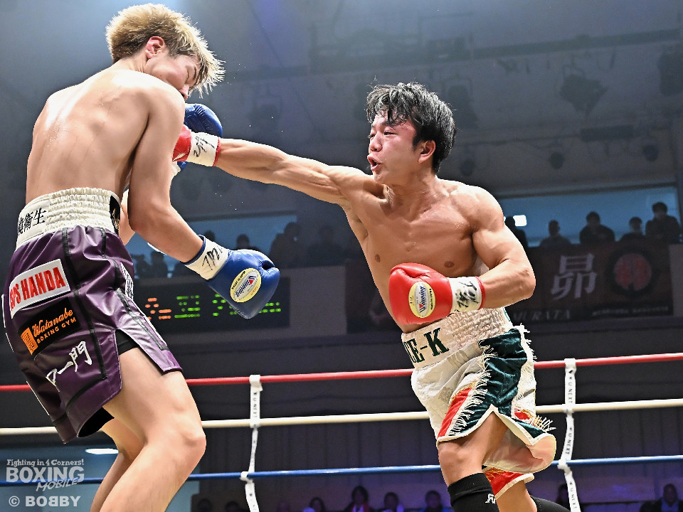 試合:金田がジャブからワンツー左フックのコンビネーションで腰を落とすと、金田はワンツー連打で追撃。膝を折った永里にレフェリーはダウンを宣告。再開後、金田はワンツー連打で攻めるも永里は左右アッパーで反撃した。2回、ワンツーを軸に攻める金田に対して永里は左右アッパーで反撃。3回、ワンツーから左ボディにつなげた金田に対し、永里は左を下から上に返し、ワンツーを左ボディにつなげた。4回、右フックからワンツーにつなげた永里は左右ボディから左アッパーを突き上げた。5回、ワンツーを軸に反撃を試みた金田だったが、永里がワンツーのコンビネーションと上下に散らしたパンチでペースを渡さなかった。6回、互いの意地をかけたラストラウンド、被弾を恐れずパンチを上下に散らし、右のクリーンヒットでポイントを加点した永里が3者の支持を得て判定勝利を飾った。判定結果がアナウンスされた瞬間に永里の応援団の歓声が響き渡り永里は応援団の声援に両手をあげて応えた。