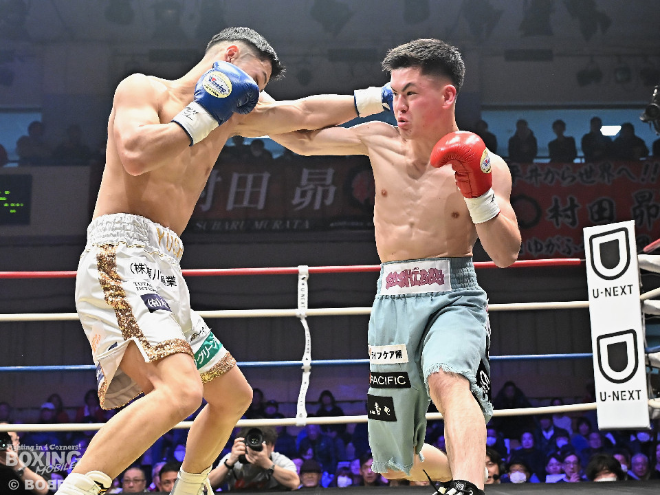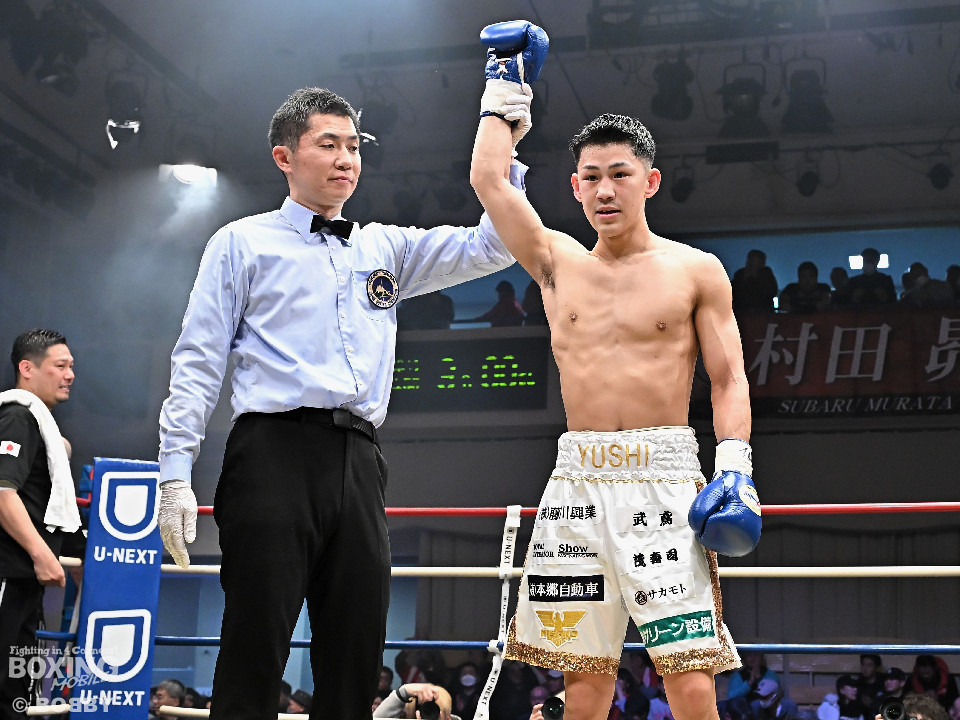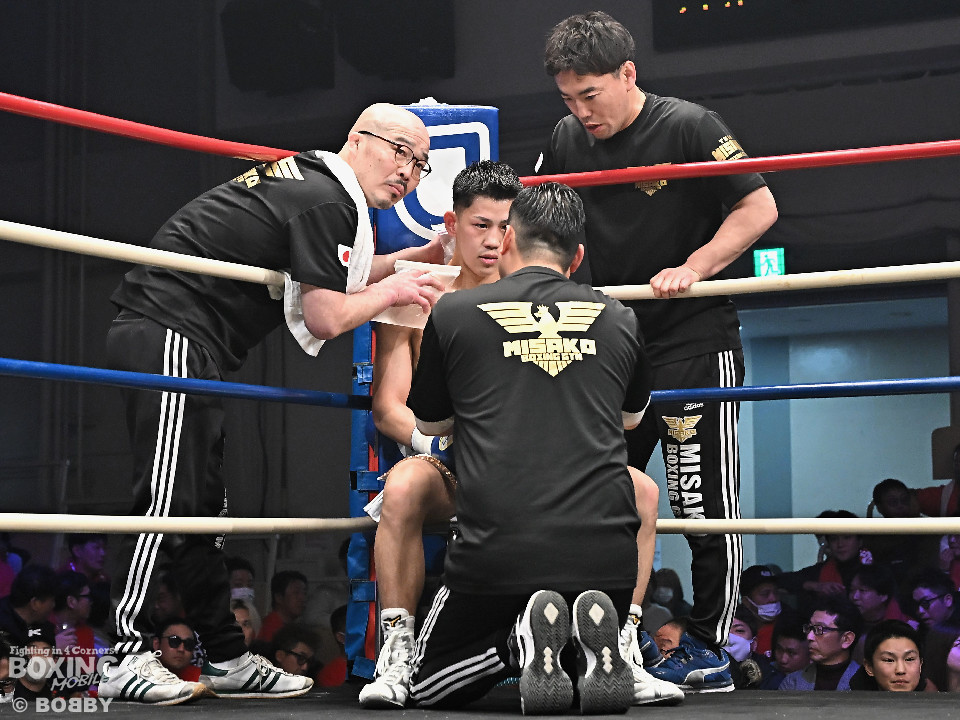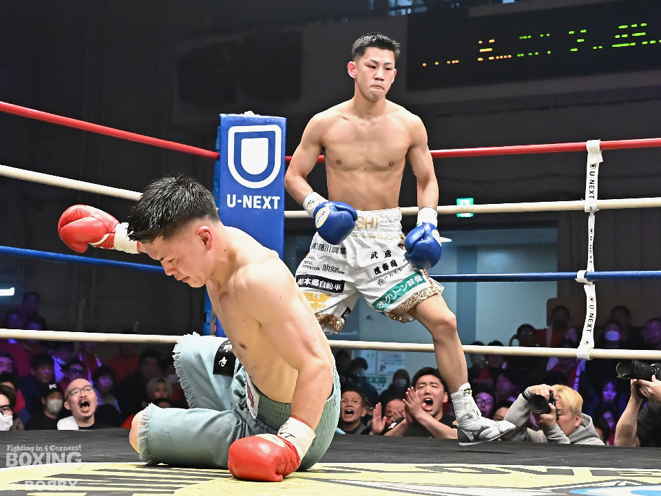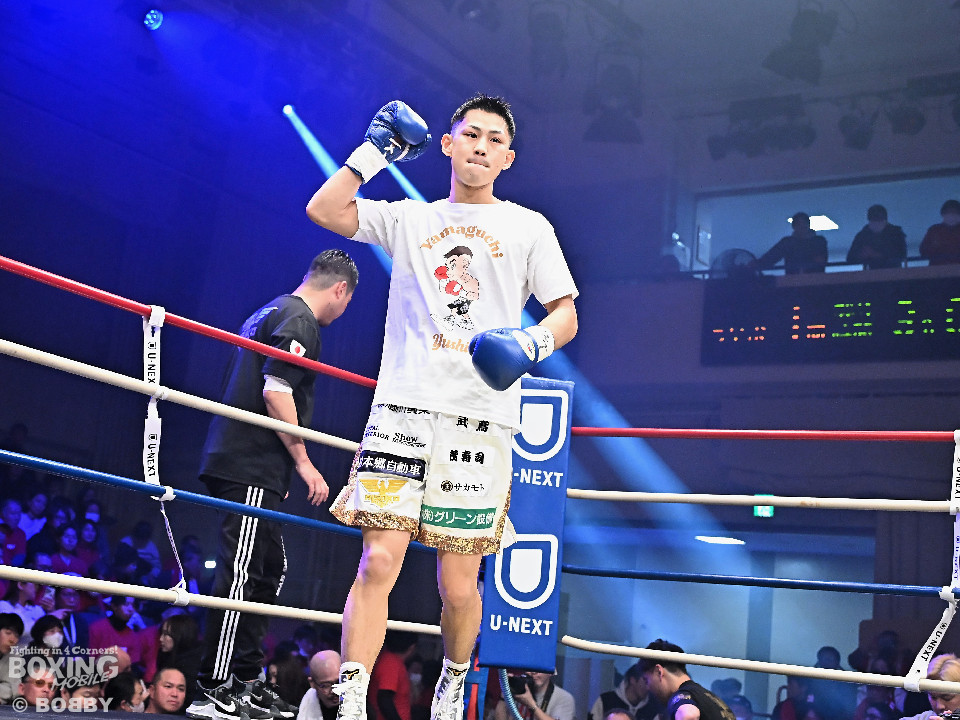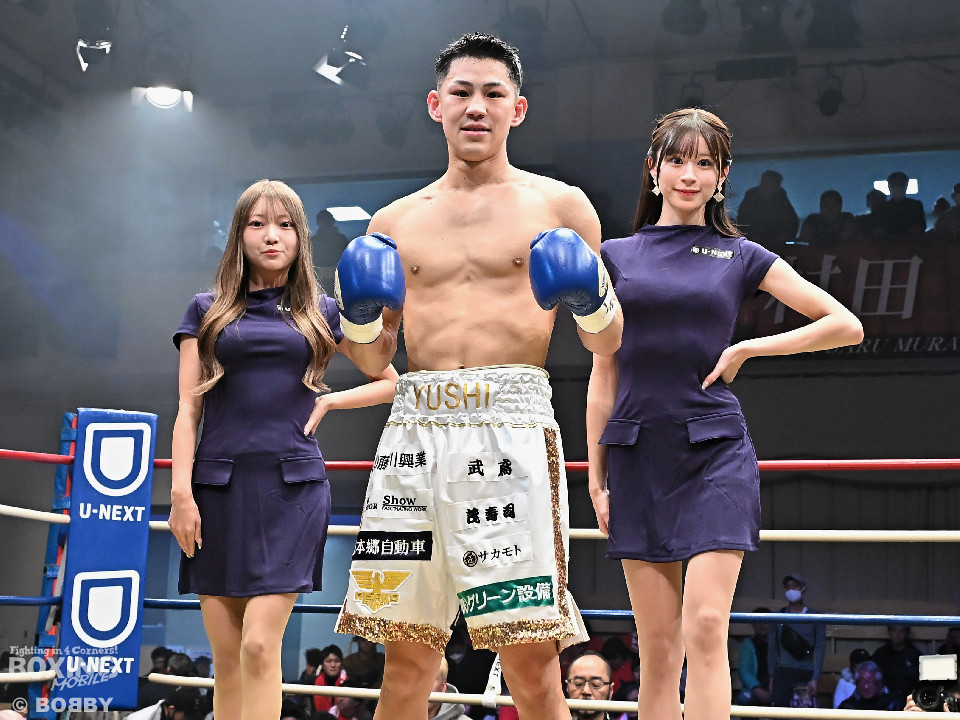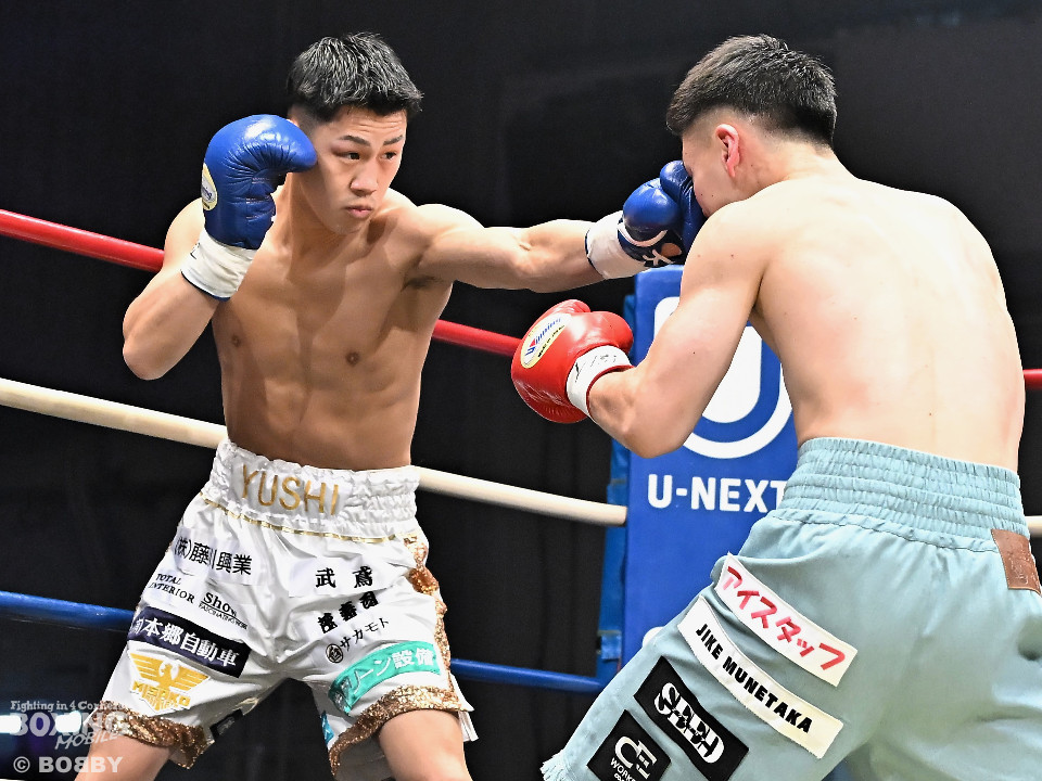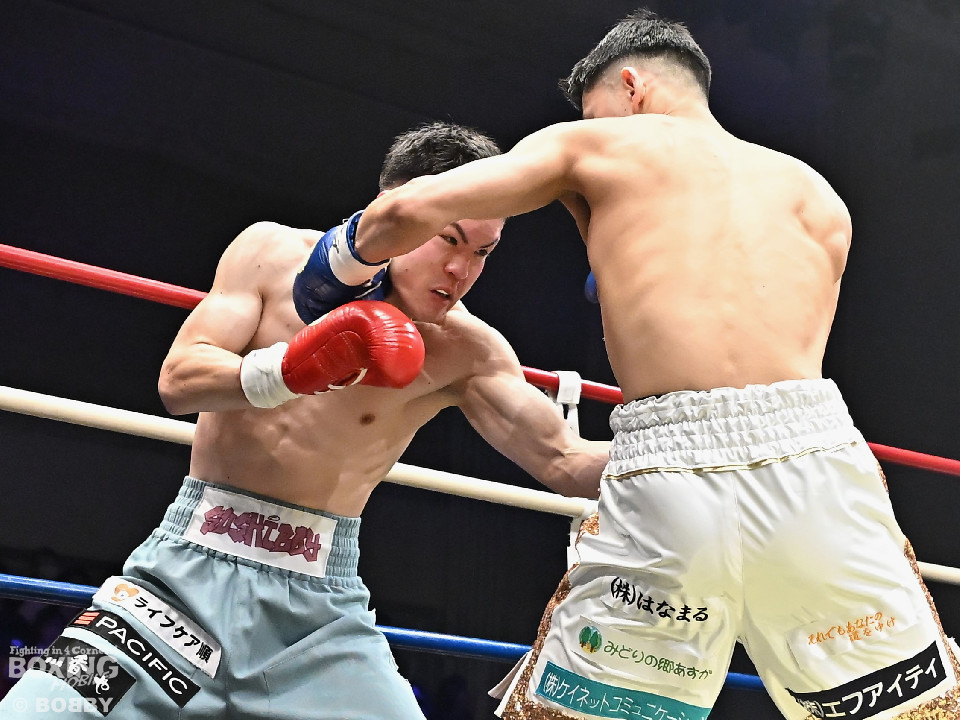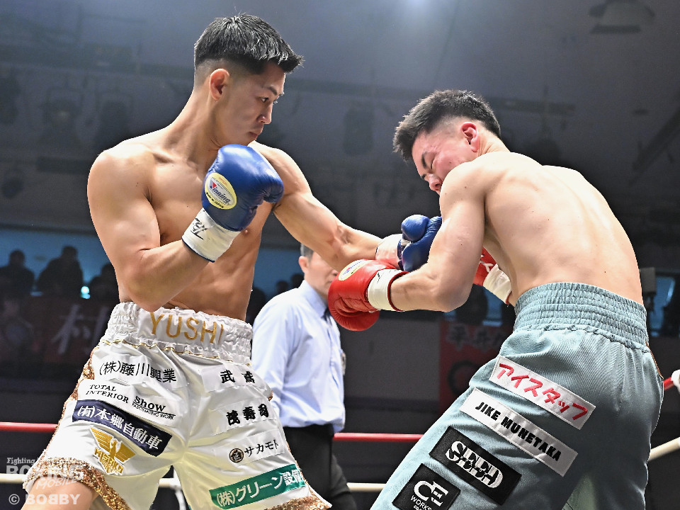 試合:日本バンタム級11位の西屋にノーランカーの山口が挑んだ。山口が長いリーチを活かしジャブでリズムを構築すると右ストレートでダウンを奪う絶好のスタート。2回、山口はポジションを上手くずらしながら打ち合いを避けると右アッパーを好打。3回、守勢を強いられた西屋は距離を止めたが、山口は右カウンターで2度目のダウンをゲット。再開後、攻撃の手を緩めず連打でフィニッシュした。山口がランカーを撃破する殊勲の勝利を挙げた。