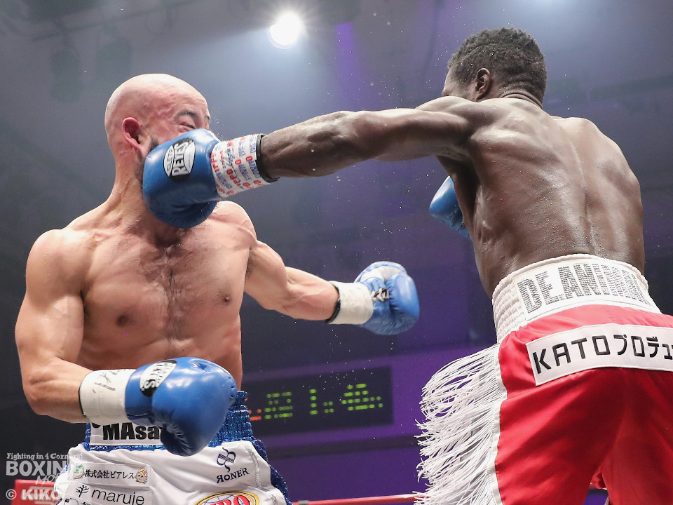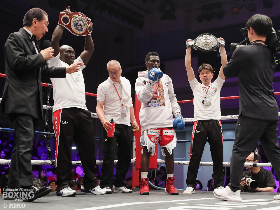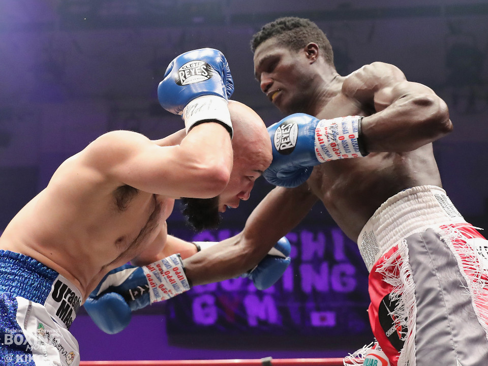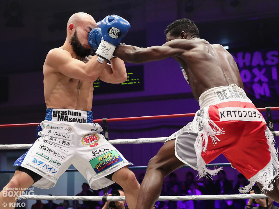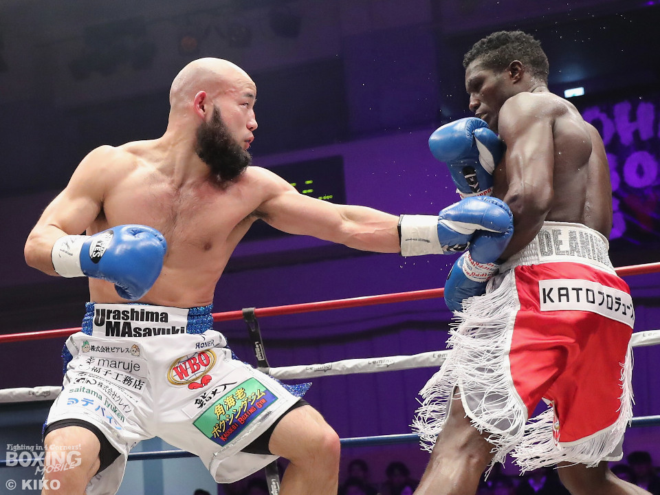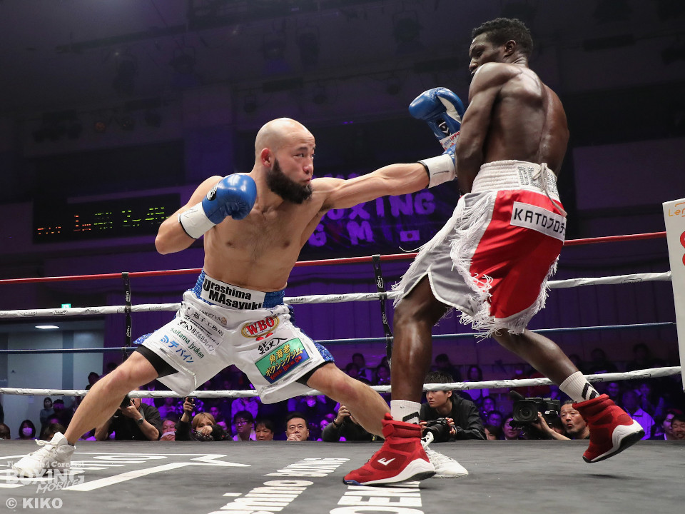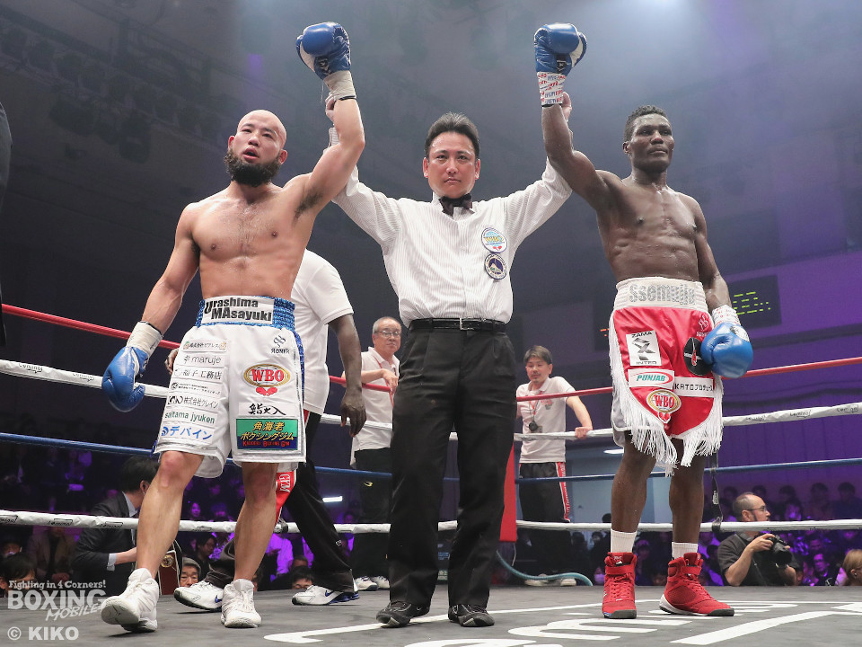 試合:日本・WBO-APウェルター級王者のセムジュが指名挑戦者の浦嶋を迎え撃った。浦嶋が出入りを意識しながら左ボディで先制。メリハリをつけながら的を外した。2回、浦嶋はステップインから右ストレート、返しの左フックを決めて見栄えの良さをアピール。3回、セムジュは長いリーチを活かした右ストレートを繰り出すが、浦嶋はバックスステップから右フックをヒット。4回、浦嶋は右アッパーで迎え撃つと右ストレートを好打しポイントを加点。相手の焦りを誘った。5回も浦嶋のラウンド。右カウンターを決めると時には大胆に右フックを叩きつけて揺さぶりをかけた。6回も浦嶋は左フックをねじ込むとパンチをまとめて優勢を印象付けた。7回、セムジュはプレスをかけて反撃するが、浦嶋はボディワークで回避。8回、セムジュはプレスをかけてワンツーで反撃。浦嶋は疲れてきたか。9回、セムジュはボディにパンチを集めて猛追。両応援団の大声援の中はじまった10回、両者とも死力を尽くしての打ち合い。セムジュが追いかけて浦嶋も負けじと返した。ジャッジ委ねられた採点は1者が浦嶋につけたが残り2者はドロー。セムジュが苦しみながらベルトを死守した。