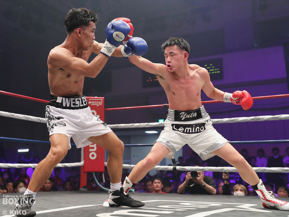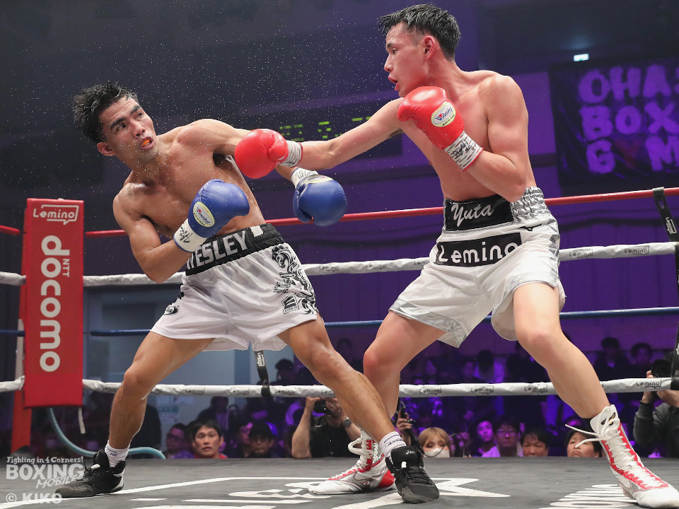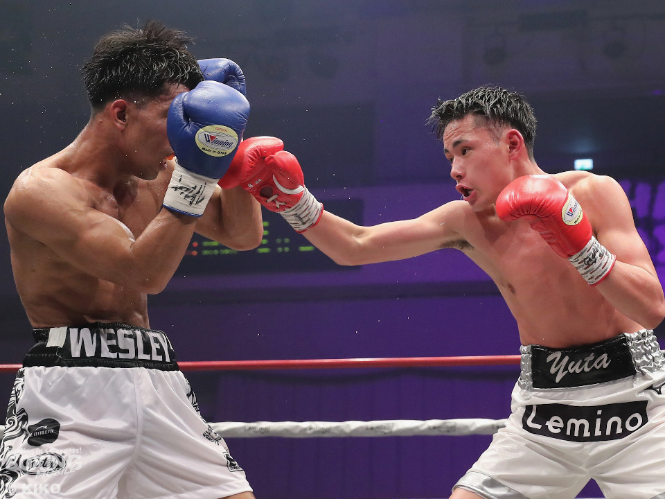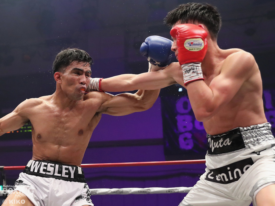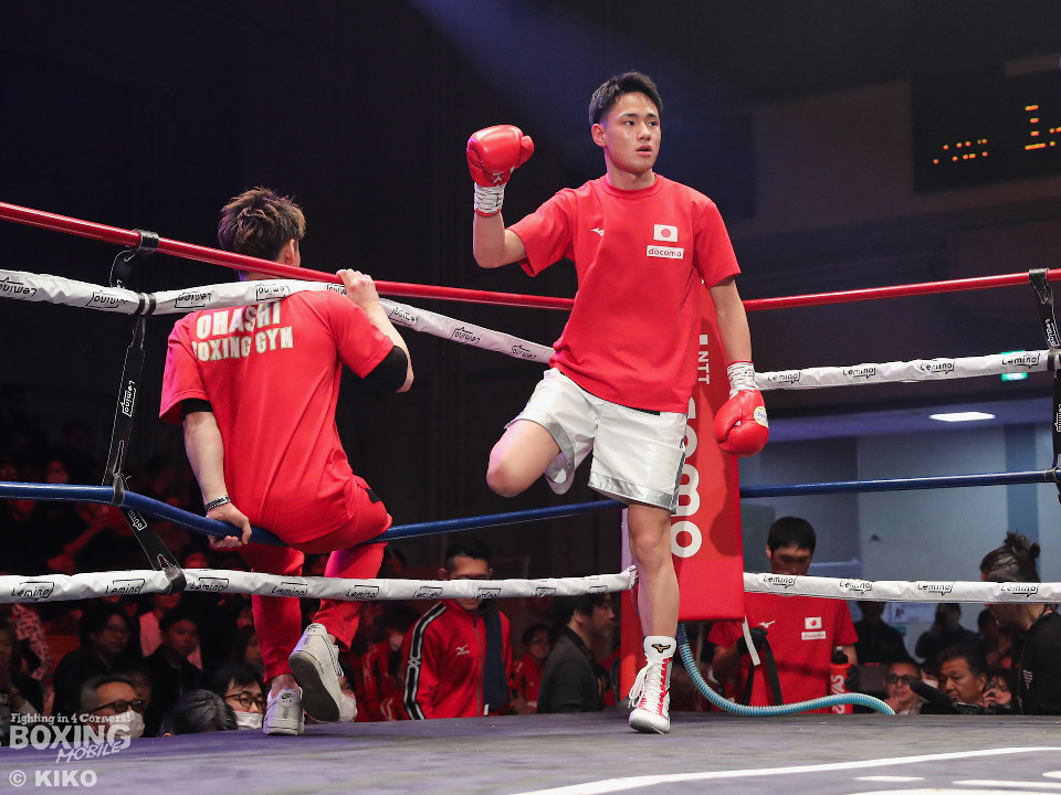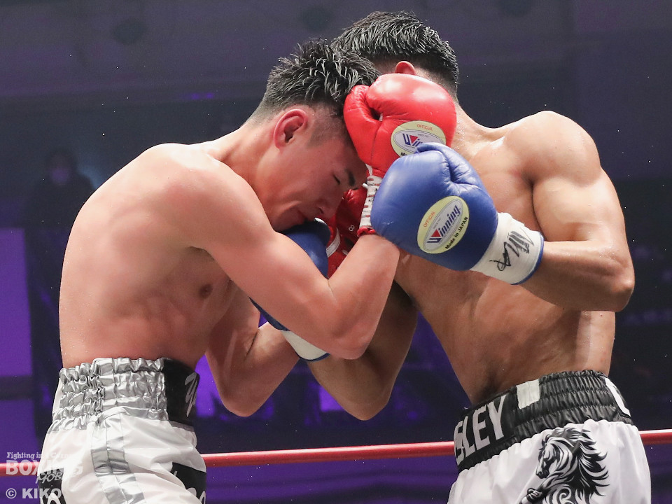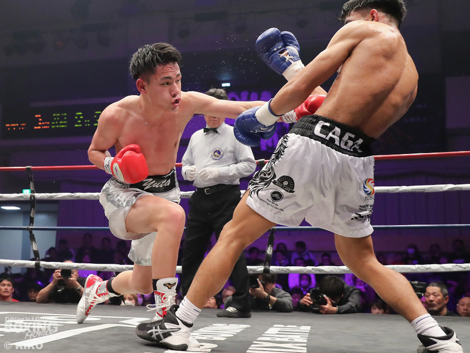 試合:日本バンタム級6位の坂井の7戦目。サウスポー坂井がジャブで組み立てると返しの左をスウェーで回避。しかし、カガは強気に返すと左フックを合わせてバランスを崩させた。2回、坂井はジャブからワンツーを好打。カガの変則的な右フックに手を焼いた。3回、坂井は距離をキープすると振ってくるパンチに冷静に対応。4回、坂井は左ボディストレートを差し込み体力を削りに行くが、右フックを浴びてヒヤリ。5回、坂井は左カウンターを決めると、上下に打ち分け見栄えの良さをアピール。6回、坂井は再三ワンツーを決めるが頑丈なカガは、ロングフックを返した。8回、坂井は右フックを合わせると左ボディアッパー、ワンツーで攻勢をアピールした。連続KO勝ちストップしたものの、坂井が全勝記録を更新した。