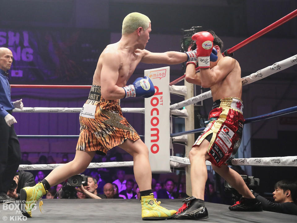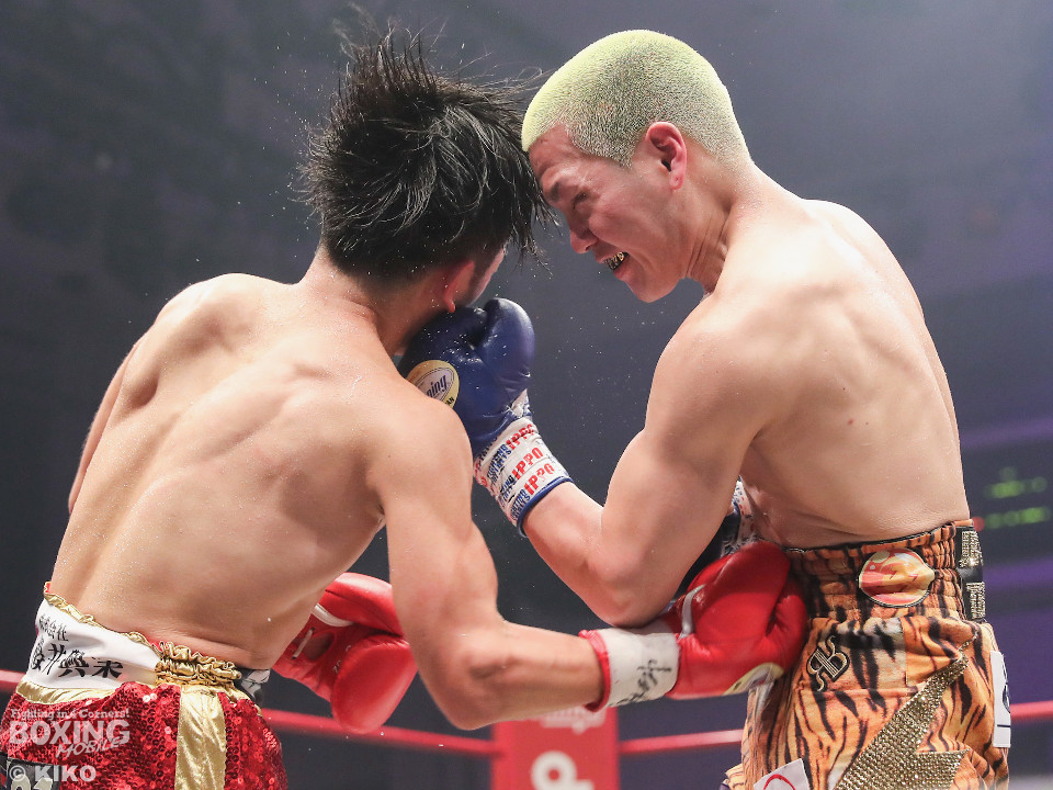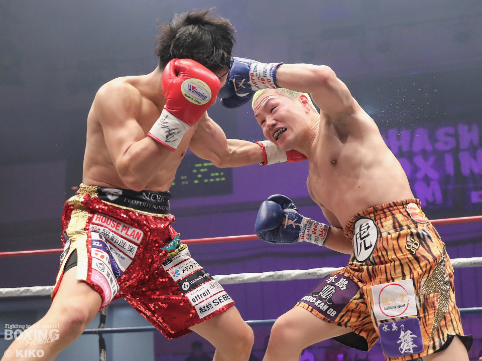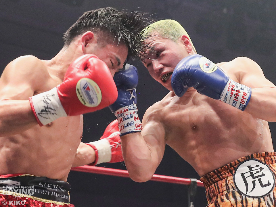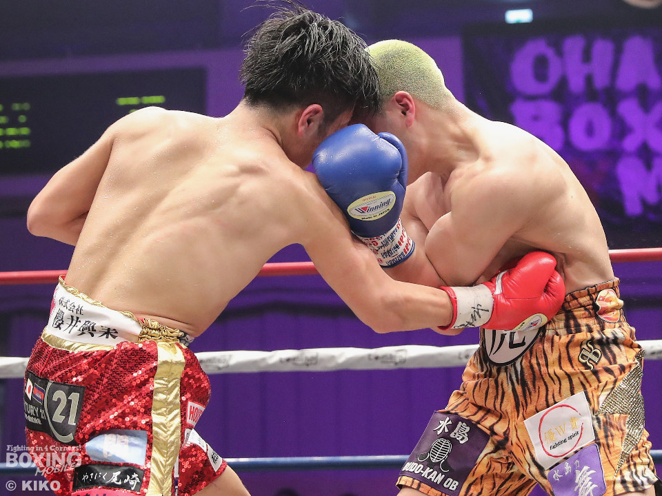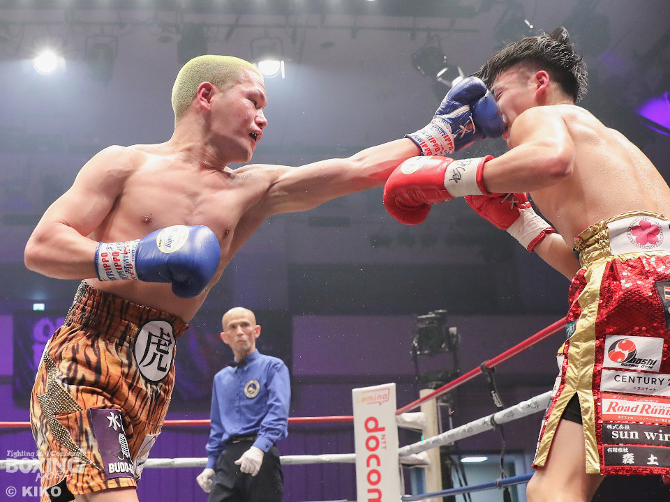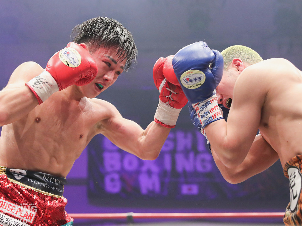 試合:日本ミニマム級王者の森がランキング1位の岡田を迎えて初防衛戦に臨んだ。森が前後にステップを刻みながら揺さぶりをかけるのに対し、サウスポー岡田は相手の動きを見ることに意識を置いた。2回、岡田は入り際に右フックを合わせると緩急を意識。3回、森はステップインから左フックをねじ込むと忙しく動き見栄えの良さをアピール。4回、森がテンポアップ。左のダブルのコンビネーションでポイントを加点。5回、森は打っては動くを意識しながらペースを維持。前半終了時の公開採点は、48-47×2、49-46×1で森がリード。6回、岡田はワンツーからパパっとまとめて反撃に転じるが、森は左ボディを徹底。7回、岡田は右フックでグラつかせると距離を詰めて攻勢を強めた。8回、岡田が左を巧みに使い分けてて攻勢。9回、ショートレンジでボディの削り合いに発展。ラウンド前半は岡田が攻めたが、後半は森が右ボディアッパーを突き刺し譲らず。10回、両者とも、最後の力を振り絞り懸命に打ち合った。ジャッジ1者は森に付けた残り2者は95ー95。森は引き分けで初防衛に成功した。