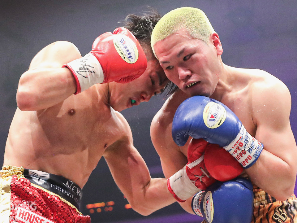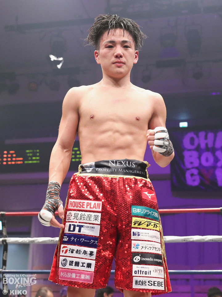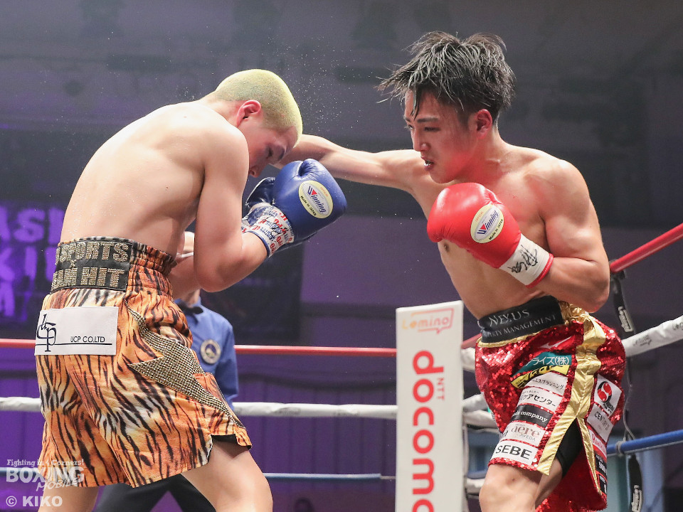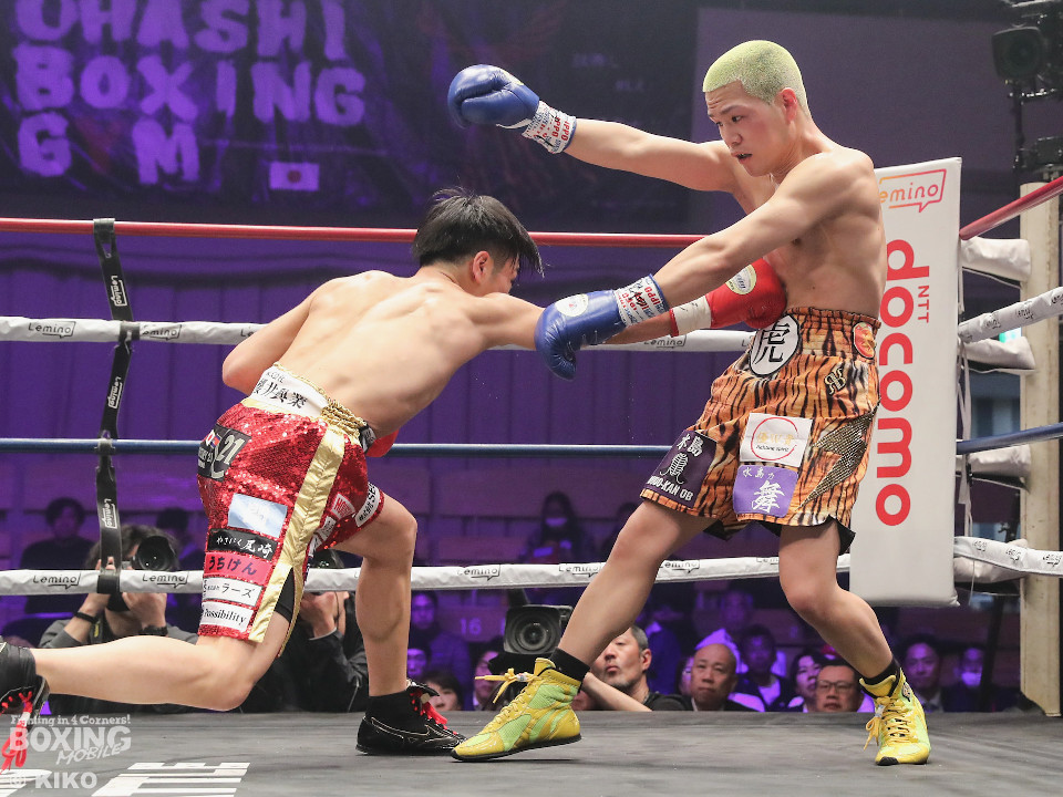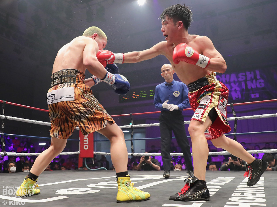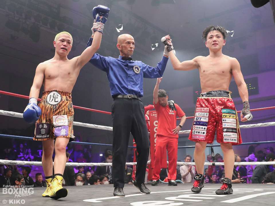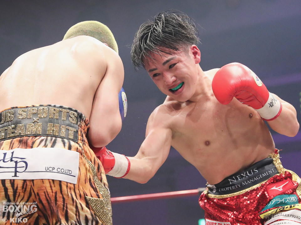 試合:日本ミニマム級王者の森がランキング1位の岡田を迎えて初防衛戦に臨んだ。森が前後にステップを刻みながら揺さぶりをかけるのに対し、サウスポー岡田は相手の動きを見ることに意識を置いた。2回、岡田は入り際に右フックを合わせると緩急を意識。3回、森はステップインから左フックをねじ込むと忙しく動き見栄えの良さをアピール。4回、森がテンポアップ。左のダブルのコンビネーションでポイントを加点。5回、森は打っては動くを意識しながらペースを維持。前半終了時の公開採点は、48-47×2、49-46×1で森がリード。6回、岡田はワンツーからパパっとまとめて反撃に転じるが、森は左ボディを徹底。7回、岡田は右フックでグラつかせると距離を詰めて攻勢を強めた。8回、岡田が左を巧みに使い分けてて攻勢。9回、ショートレンジでボディの削り合いに発展。ラウンド前半は岡田が攻めたが、後半は森が右ボディアッパーを突き刺し譲らず。10回、両者とも、最後の力を振り絞り懸命に打ち合った。ジャッジ1者は森に付けた残り2者は95ー95。森は引き分けで初防衛に成功した。