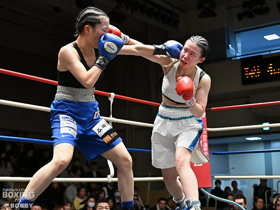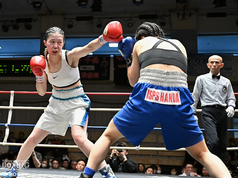 試合:畑が前後を意識しながらジャブ、ワンツーにつなげて先制攻撃。2回、山下は距離を詰めて回転力を上げて攻勢をアピール。3回、山下はさらにギアを上げて豊富な手数でポイントを加点。4回、畑は右オーバーハンドを繰り出すが、山下はプッシュしながらワンツーを軸に攻め込みペースを渡さなかった。ジャッジ3者ともに2ポイント差をつけた山下が勝利した。