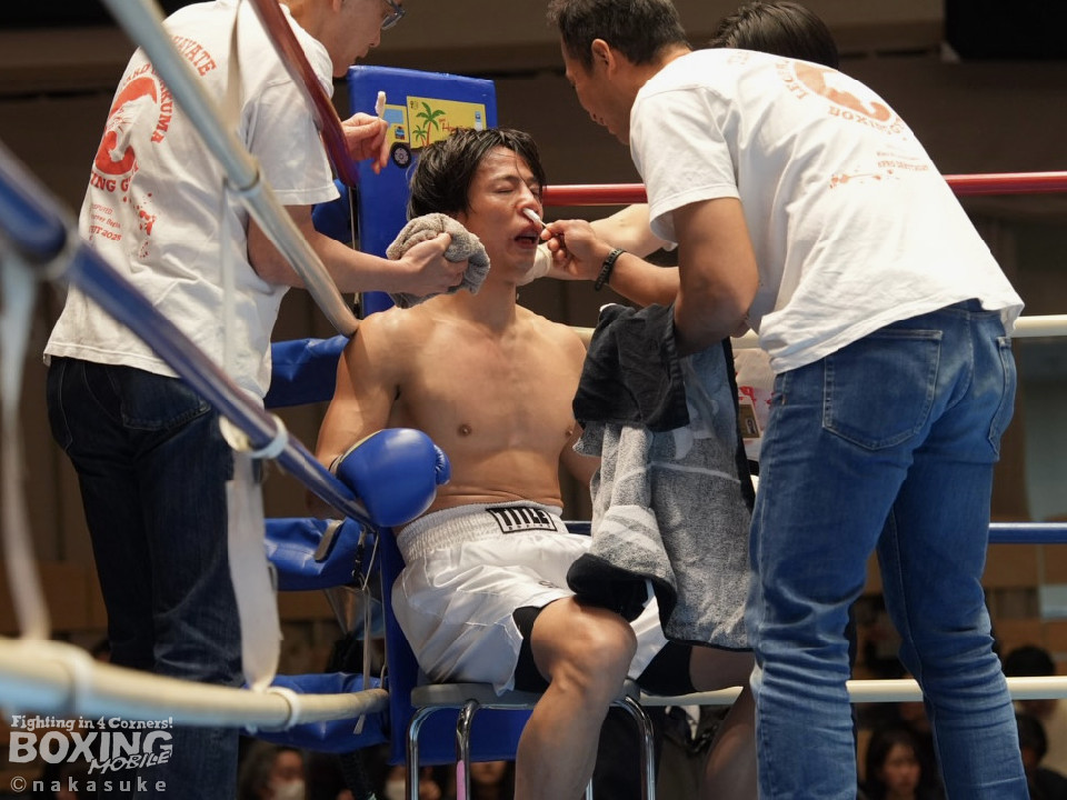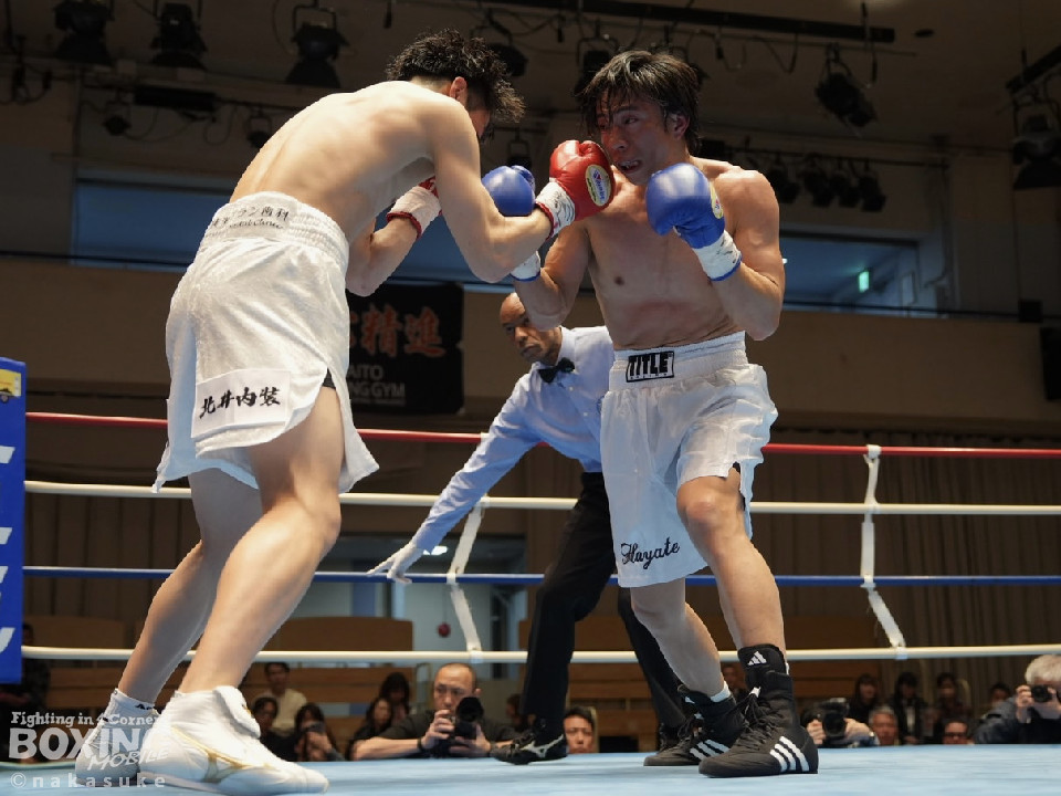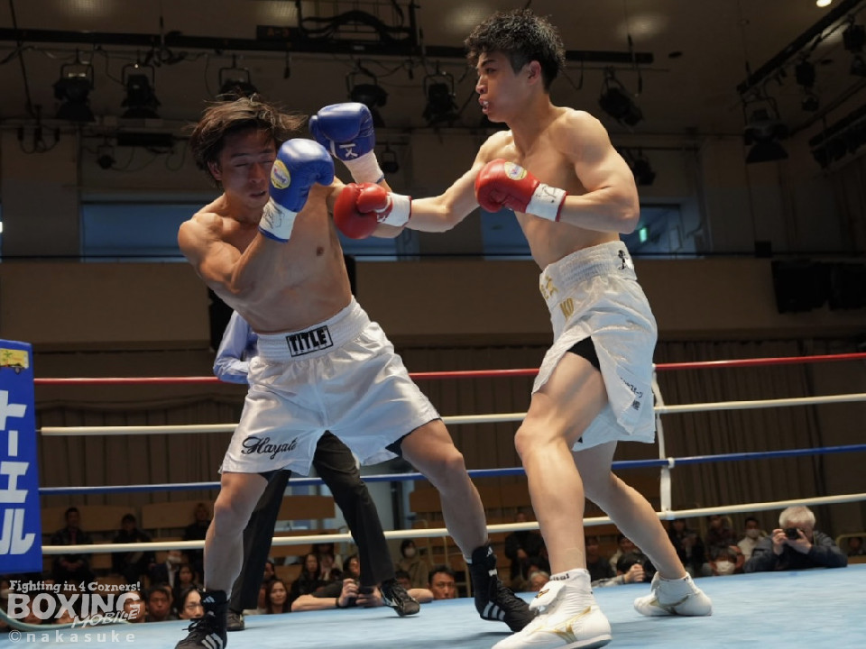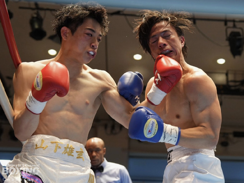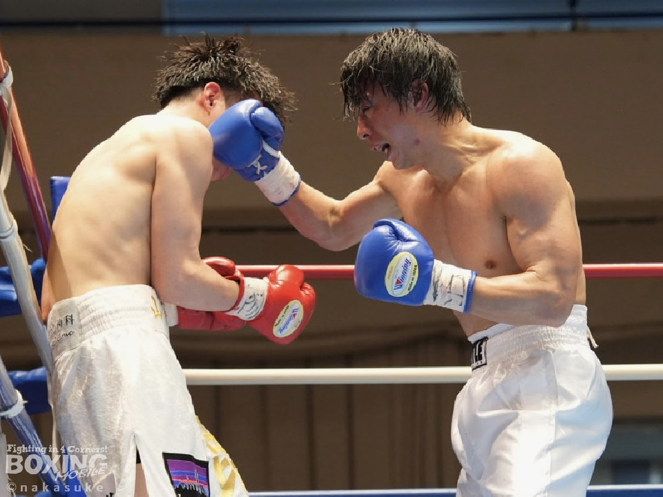 試合:山下が右フックを強振しグイグイと攻め立てる。後手に回った白澤だが、ここを耐えるとワンツーをねじ込み応戦。初回から火が出るような打ち合いを見せた。白澤はヒッティングで右目上を腫らした。2回、山下は要所で左ボディを突き刺し見栄えの良さをアピール。3回、白澤のしつこいボクシングが功を奏してくる。突き放したい山下だが、思い通りの展開を作れず。4回、白澤は回転力を上げて積極的な攻撃で猛追した。相手の反撃を振り切った山下に軍配が上がった。