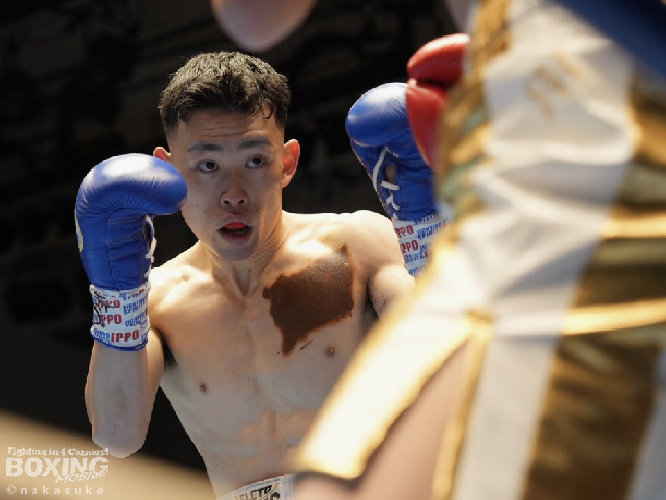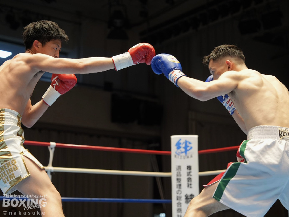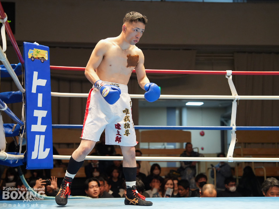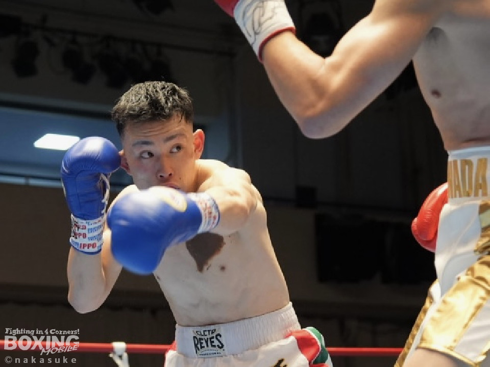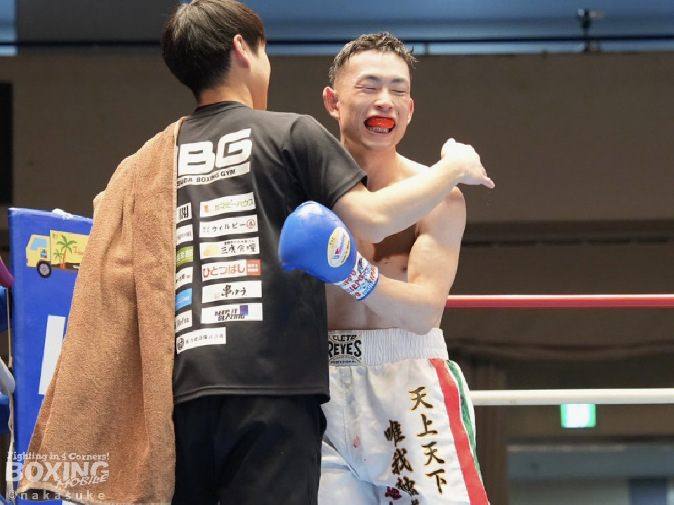 試合:早川がステップインから右フックを繰り出し先制攻撃。2回、サウスポー澤田は、前の手で揺さぶりをかけて出鼻を挫きにいくが、早川は単発の右ボディストレートをヒット。3回、澤田は右フックを合わせると足を使いながら決定打を回避。4回、早川はプレスをかけてボディにコツコツと集めてアグレッシブな姿勢を見せた。愛媛から参戦した早川が連敗脱出に成功した。