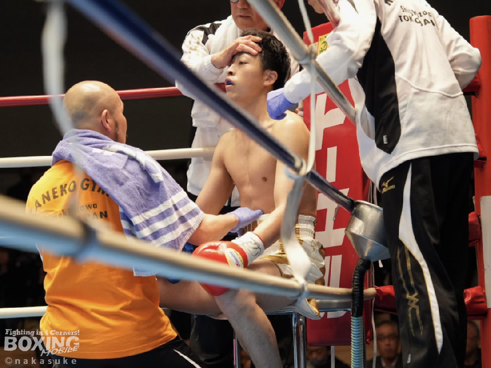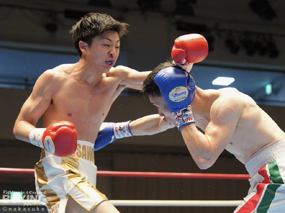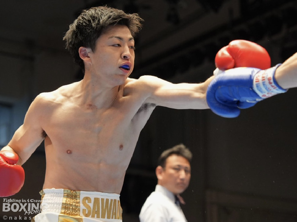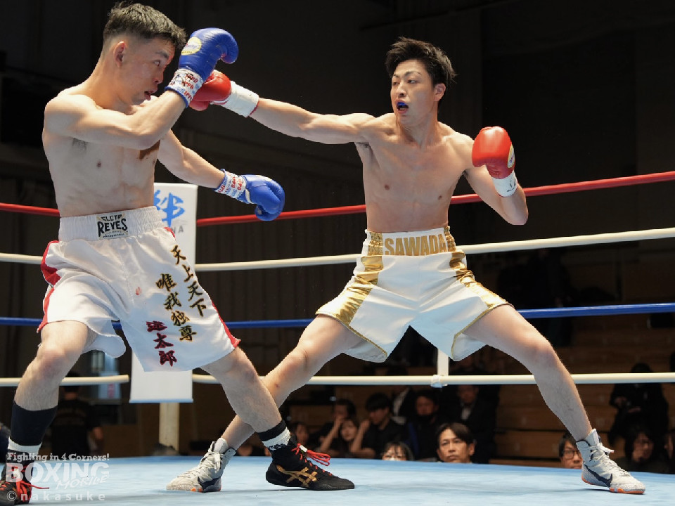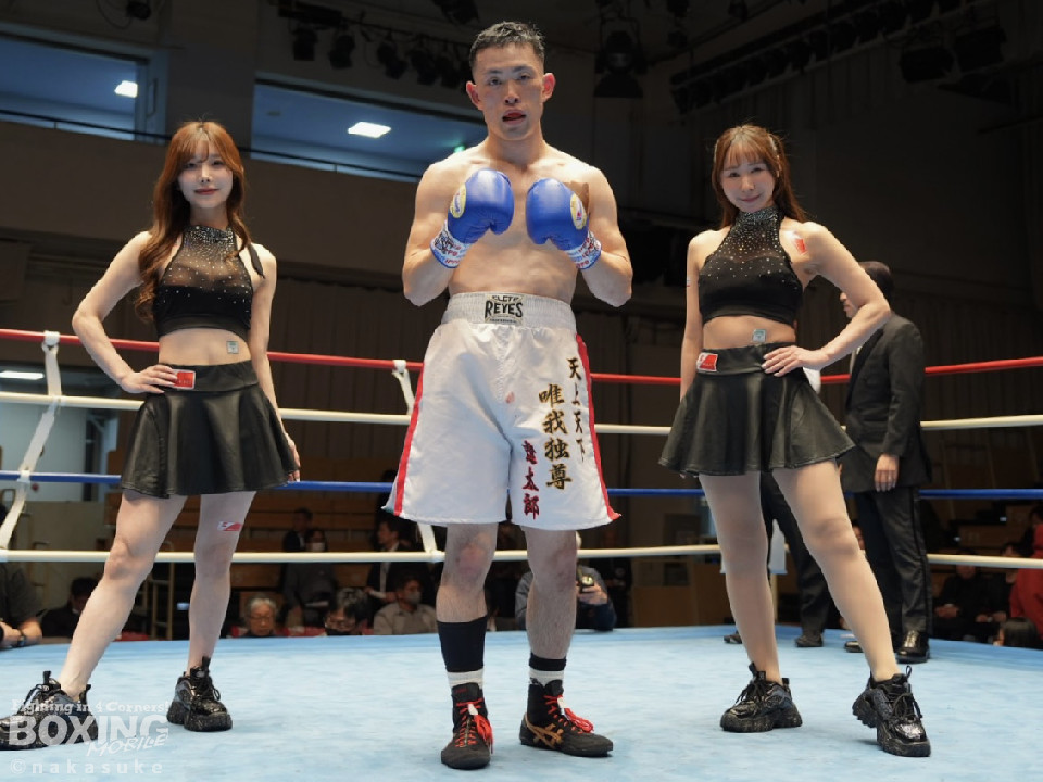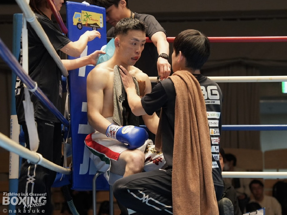 試合:早川がステップインから右フックを繰り出し先制攻撃。2回、サウスポー澤田は、前の手で揺さぶりをかけて出鼻を挫きにいくが、早川は単発の右ボディストレートをヒット。3回、澤田は右フックを合わせると足を使いながら決定打を回避。4回、早川はプレスをかけてボディにコツコツと集めてアグレッシブな姿勢を見せた。愛媛から参戦した早川が連敗脱出に成功した。