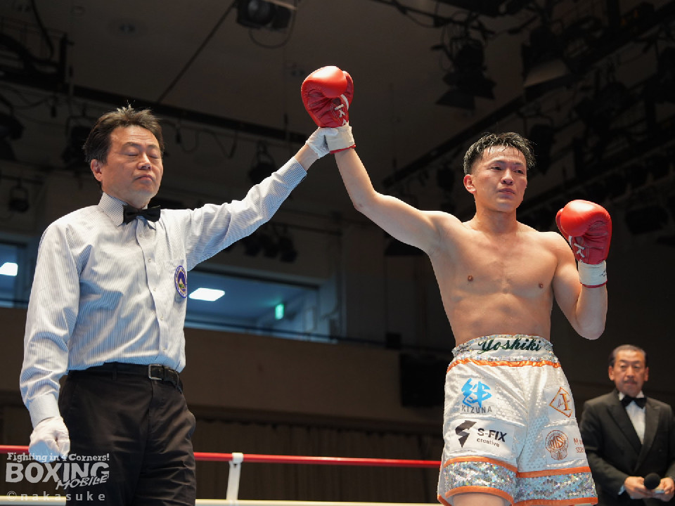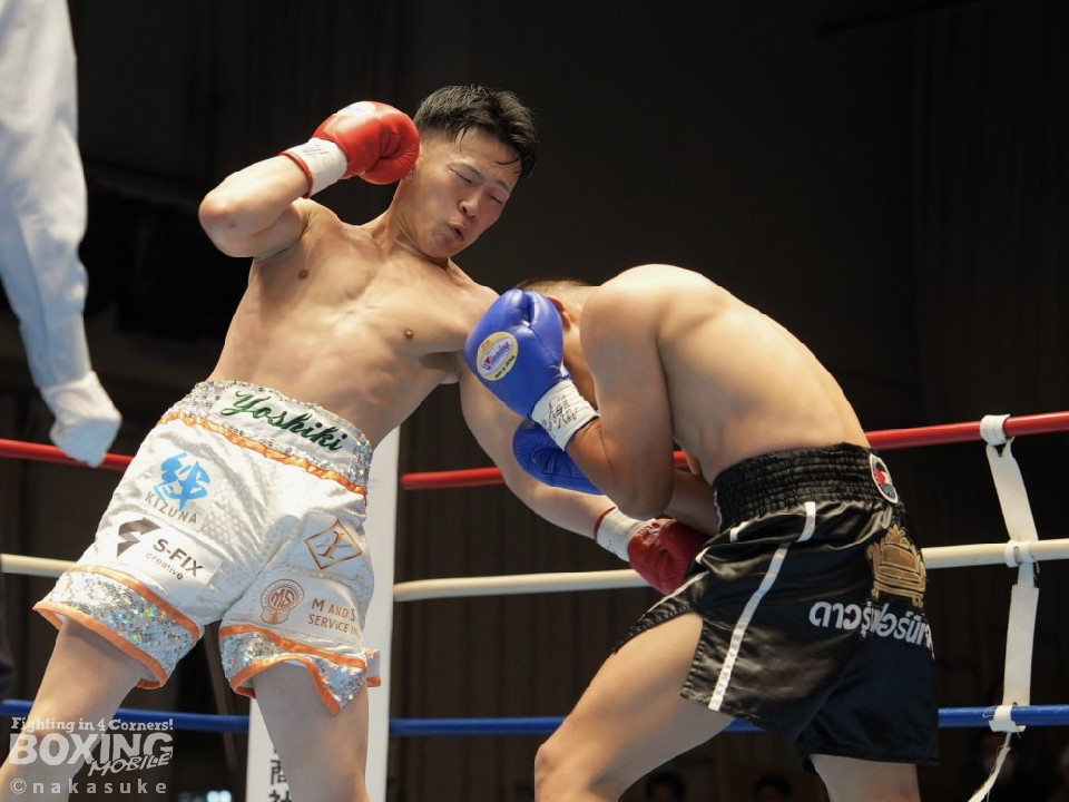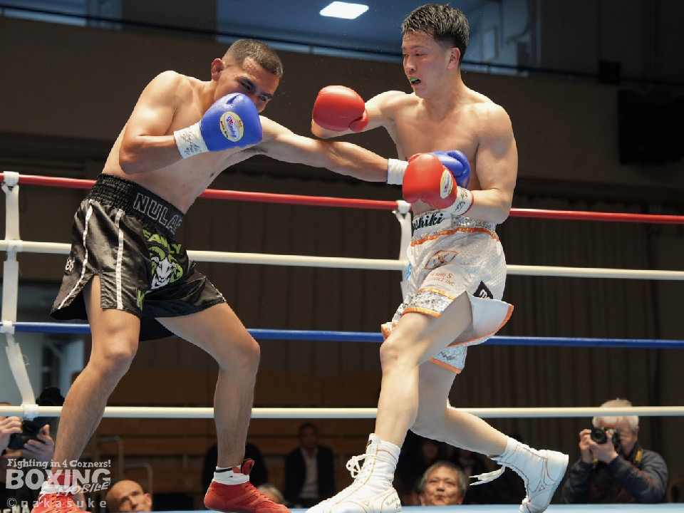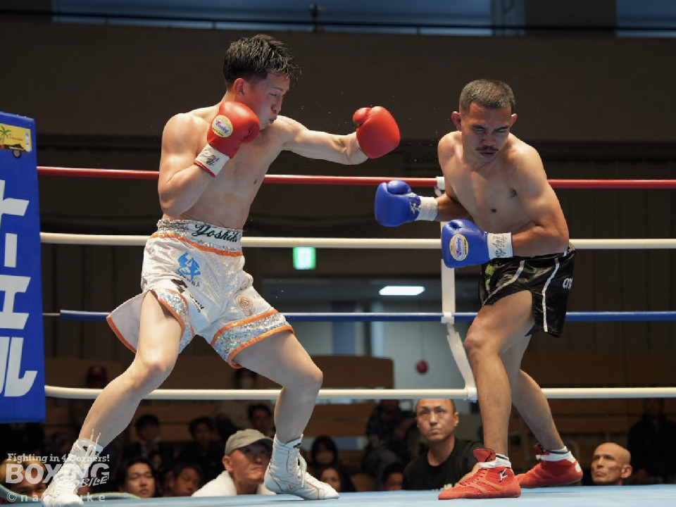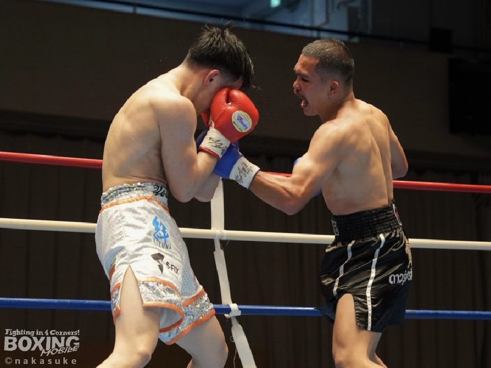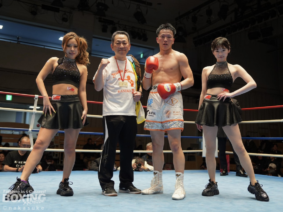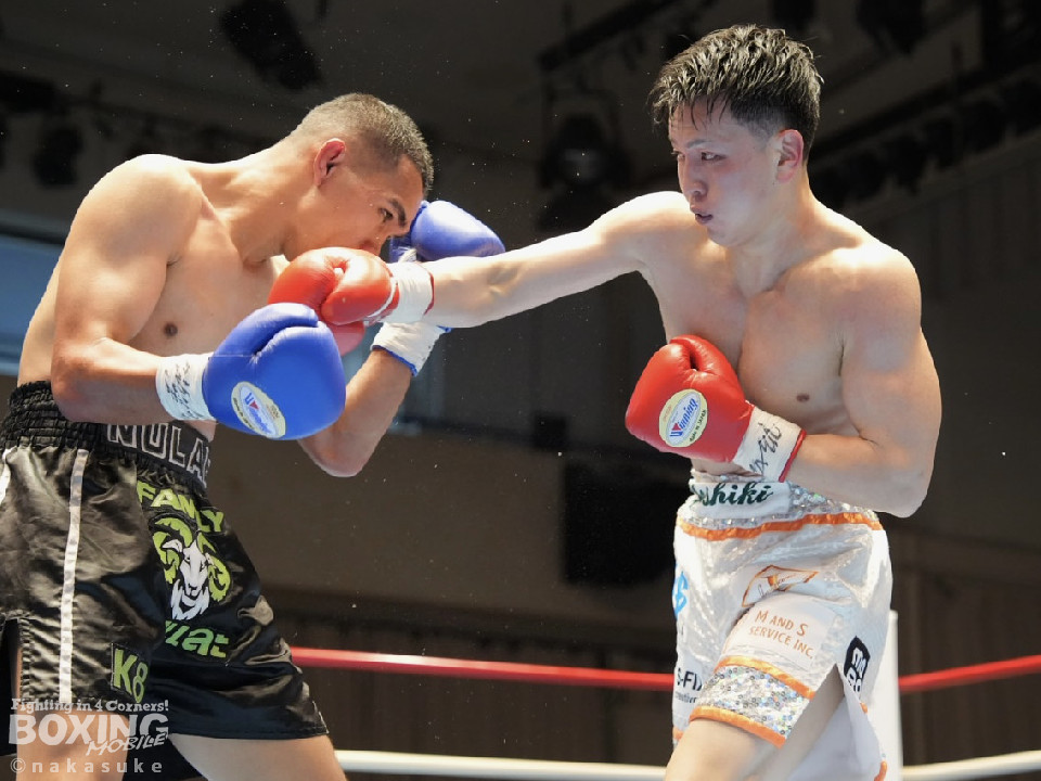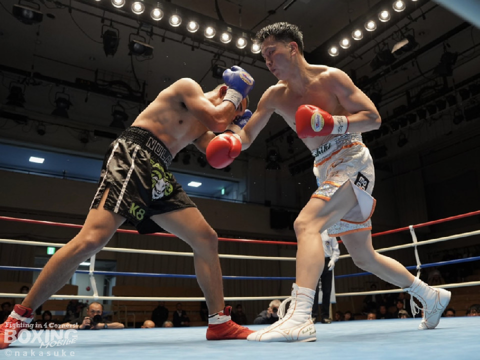 試合:金子がジャブで距離とタイミングを測ると左ボディを好打。返しの左フックを外して早くもペースを握った。2回、金子はプッシュしながら上下に打ち分け体力を削る作戦。3回、金子はワンツー左ボディを決めるが、アピシットは歯を食いしばりながら倒れることを拒否。4回、ガードを下げてのらりくらりとするアピシットに対し、金子はワンツー左ボディを軸にペースを維持した。5回、金子はワンツーで効かせると連打で攻勢。仕留めに行くが、アピシットもカウンターを合わせにいき勝負を諦めず。6回、KOを狙う金子は、積極的な攻撃を繰り広げたが、アピシットの粘り強さも光った。金子がフルマークの判定勝ちでA級昇格を決めた。