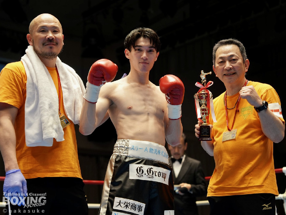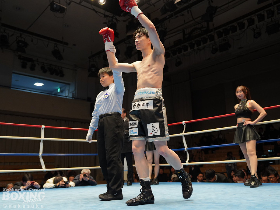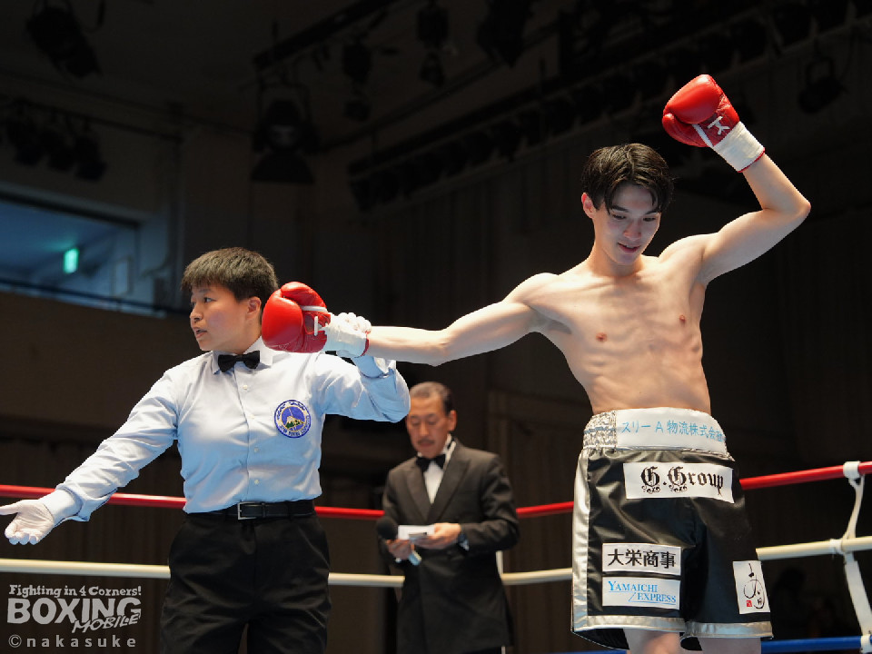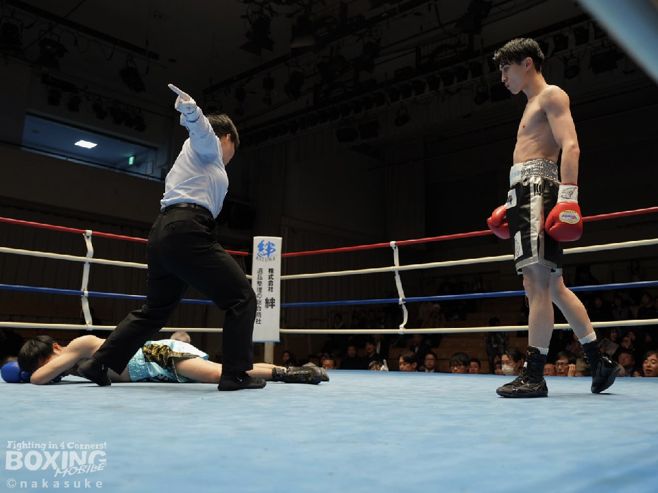 試合:安田が丁寧にジャブを突きながら様子を探るとワンツーをジャストミート!前のめりに倒れたジャカパンを見てレフェリーはノーカウントでストップした。安田が豪快KO勝ちで4勝目を挙げた。