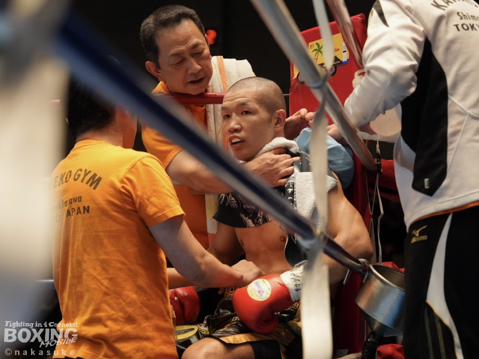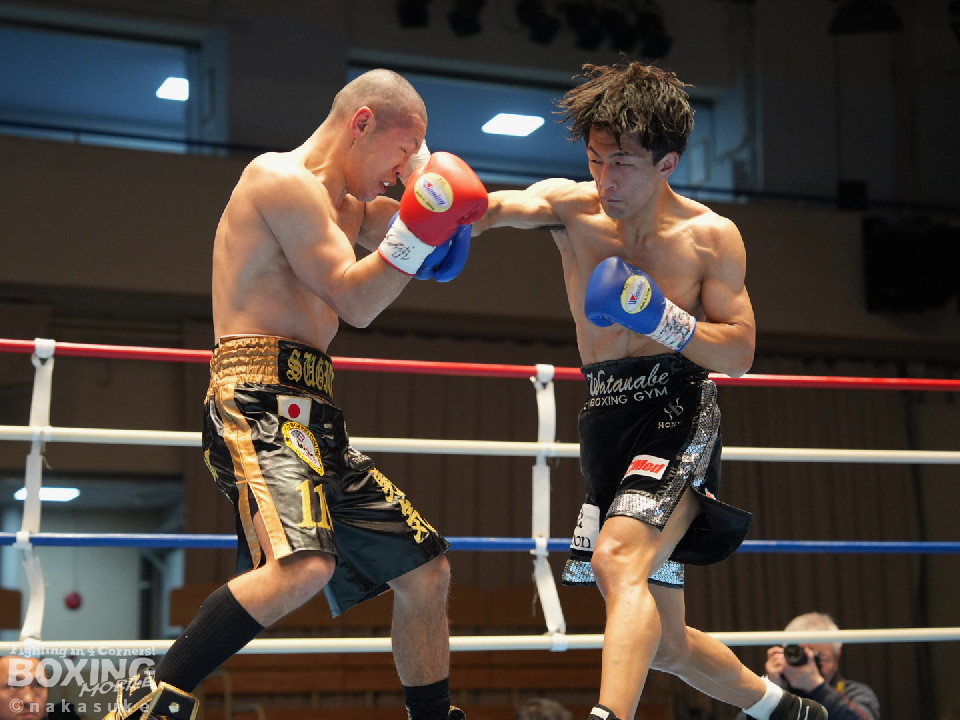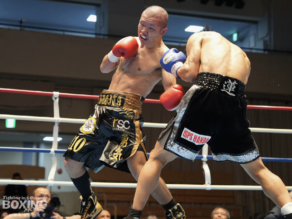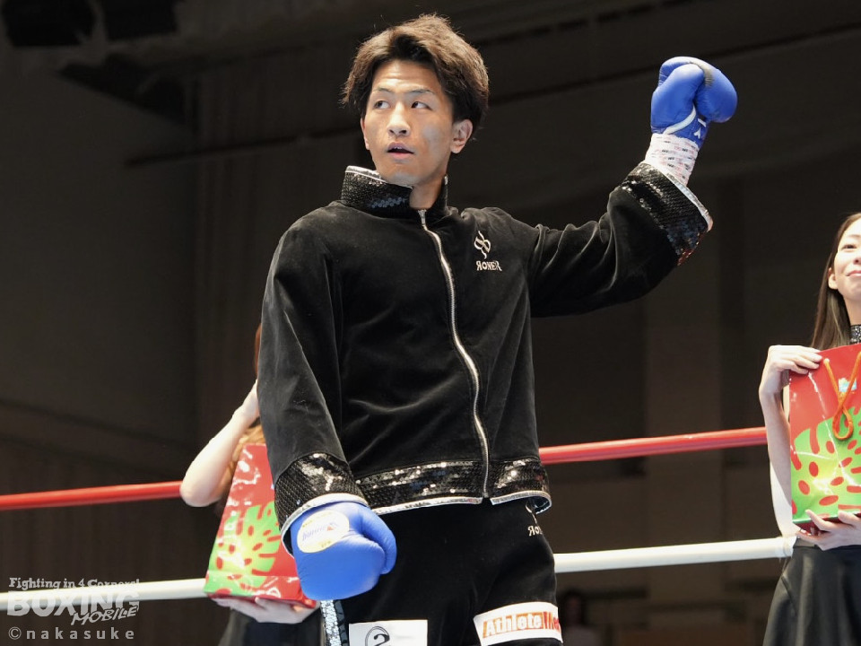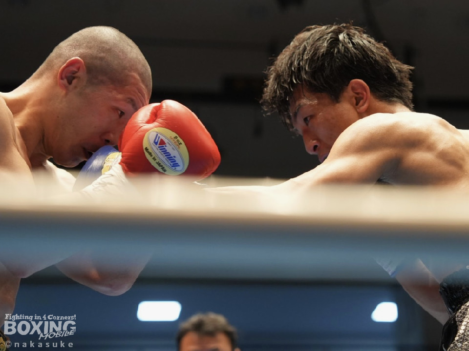 試合:ジャブの差し合いでスタートした試合は、杉田が単発の左ボディをヒット。2回、柿元は右ストレートを上下に打ち分けるとワンツーを好打。被弾した杉田だが、負けじと打ち返し会場を盛り上げた。3回、杉田は左を突き刺すと左ボディ、右フックで積極的な攻撃。4回、一進一退の攻防を繰り広げる中、見栄えの良いボクシングを見せたのは杉田。5回、柿元はワンツーを決めるが、杉田は倍返しでペースを渡さず。6回、柿元は右ショートで膝を揺らしジャッジに攻勢をアピール。7回、柿元はプレスをかけてワンツーで効かせるとパンチをまとめて攻勢。8回、杉田はプッシュしながら左右フックを叩きつけてなりふり構わず攻め立てた。ジャッジ2者の支持を得た杉田がランキングの座を守った。