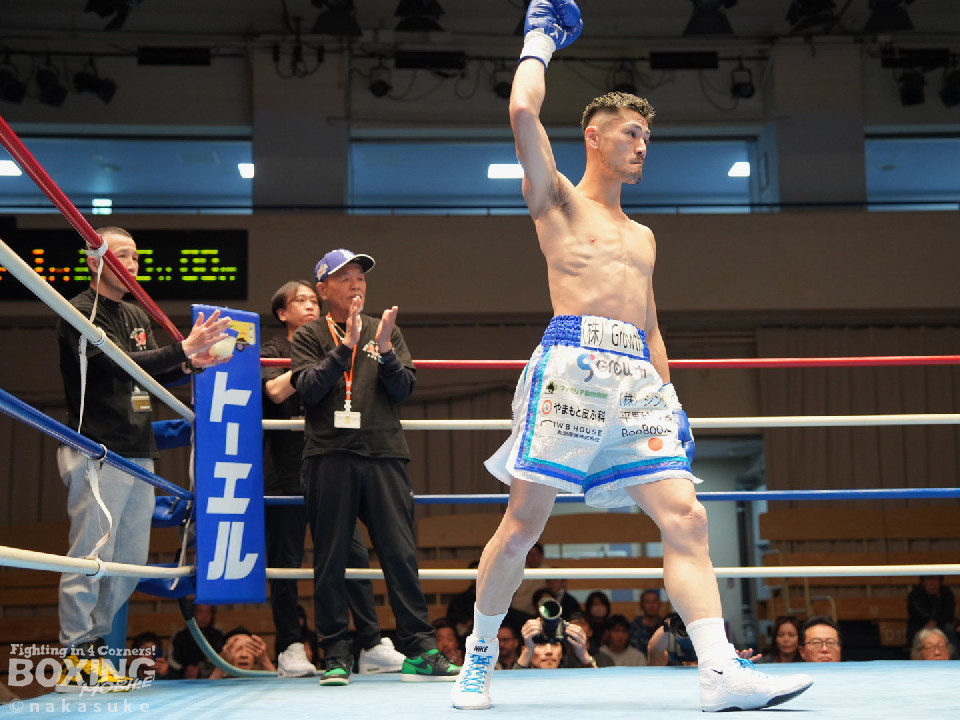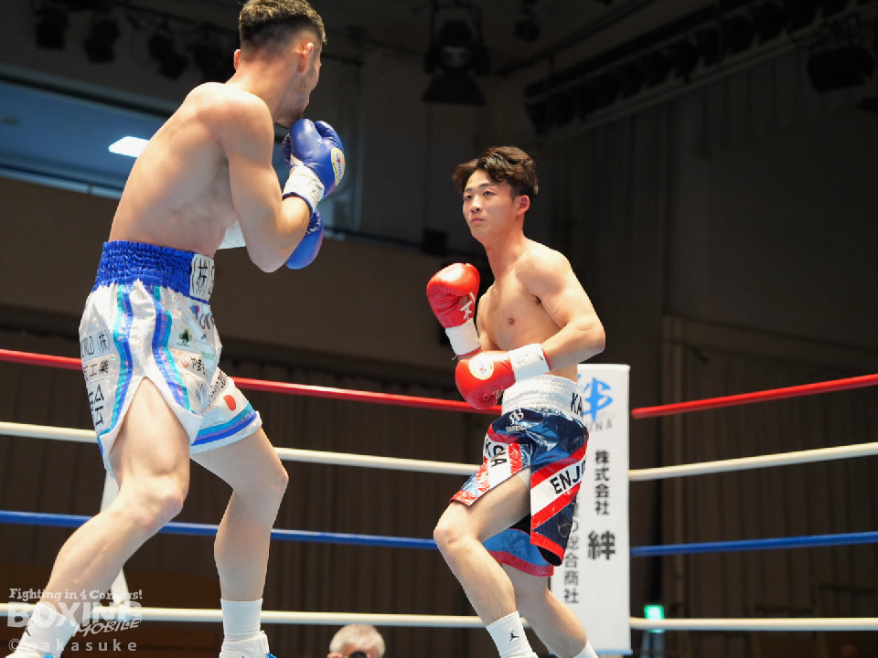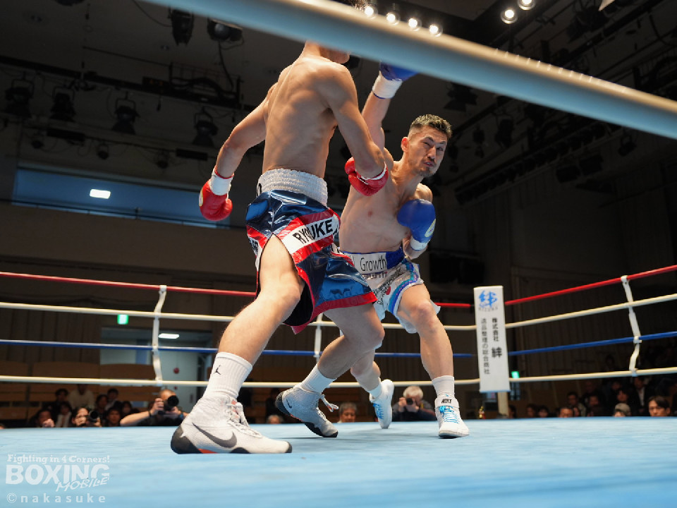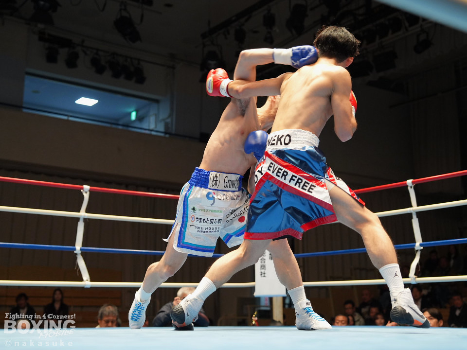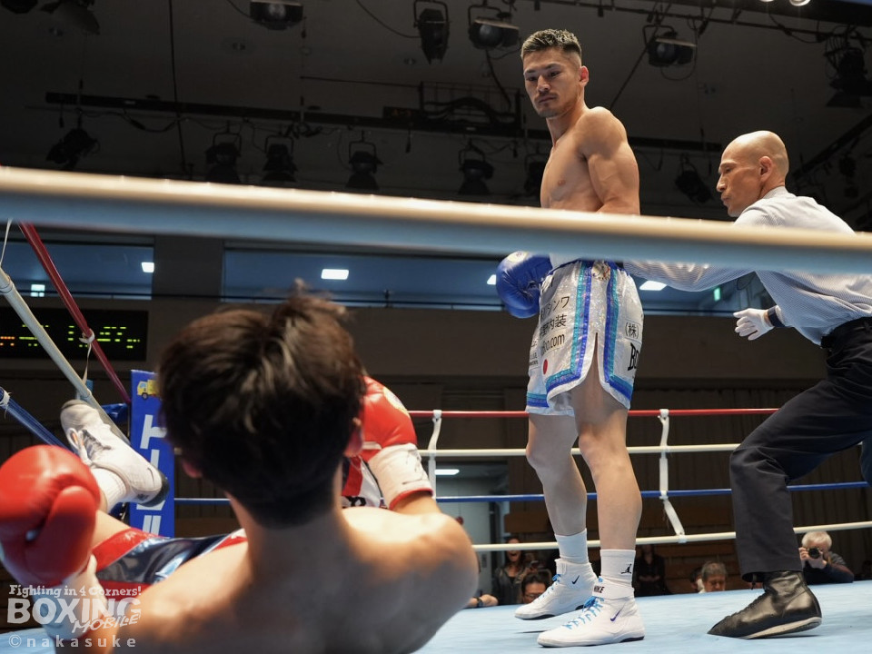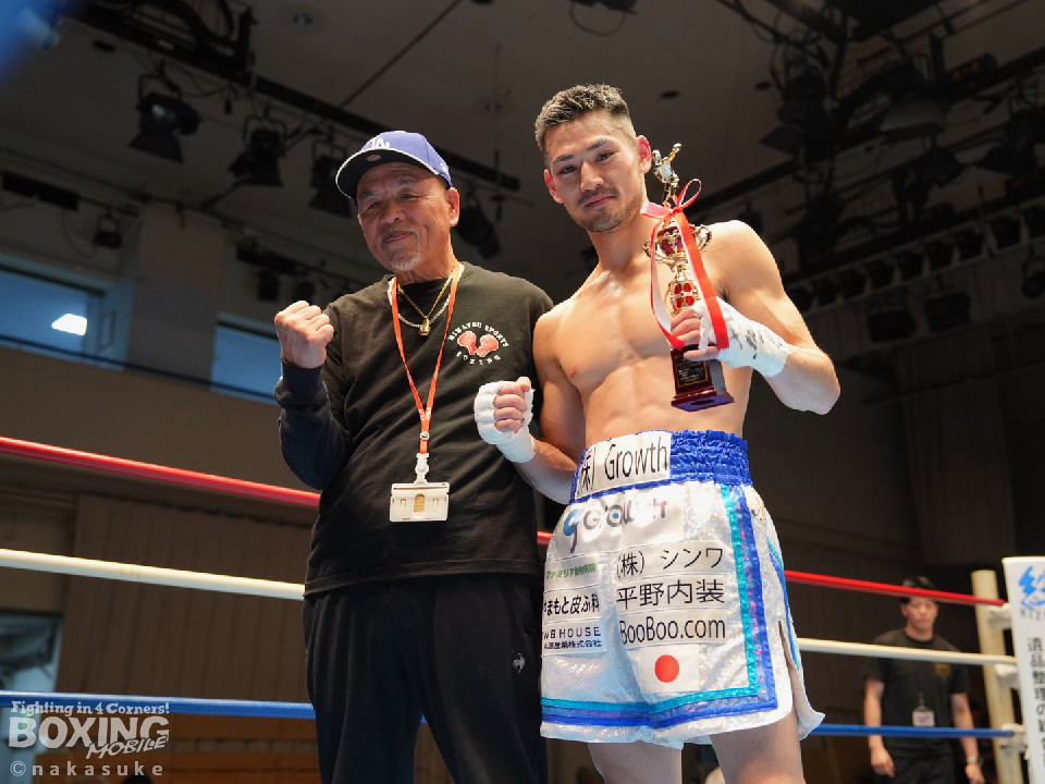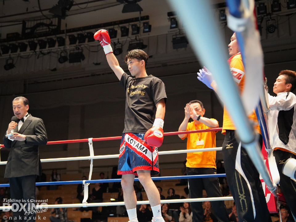 試合:平野がジャブから右ストレートで腰を沈めさせるとワンツーでダウンを奪取。カウント9で再開に応じた小山に迫ると右ストレートで痛烈に倒して結着をつけた。福岡から乗り込んできた平野がインパクト大のKO勝ちを飾った。ダメージが深い小山は担架で運ばれた。