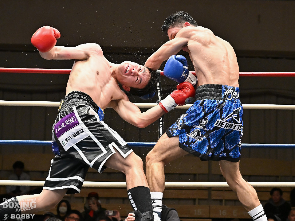 体勢を入れ替えたセセも負けじと力強い左右ボディを叩いた。6回、左右フックでセセにロープを背負わせた岩下だが、セセも体勢を入れ替え、左右で反撃した。7回、右で切り込むセセに右フックのカウンターでダウンを奪った岩下は再開後、連打をまとめるとレフェリーがノーカウントで試合をストップ。岩下がTKO勝利を飾った。