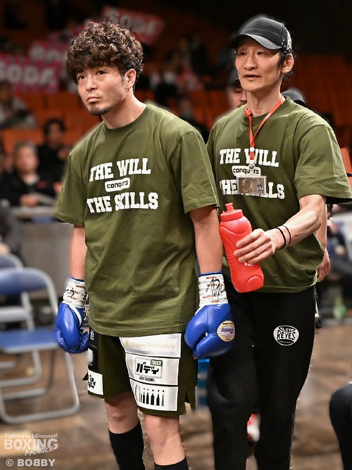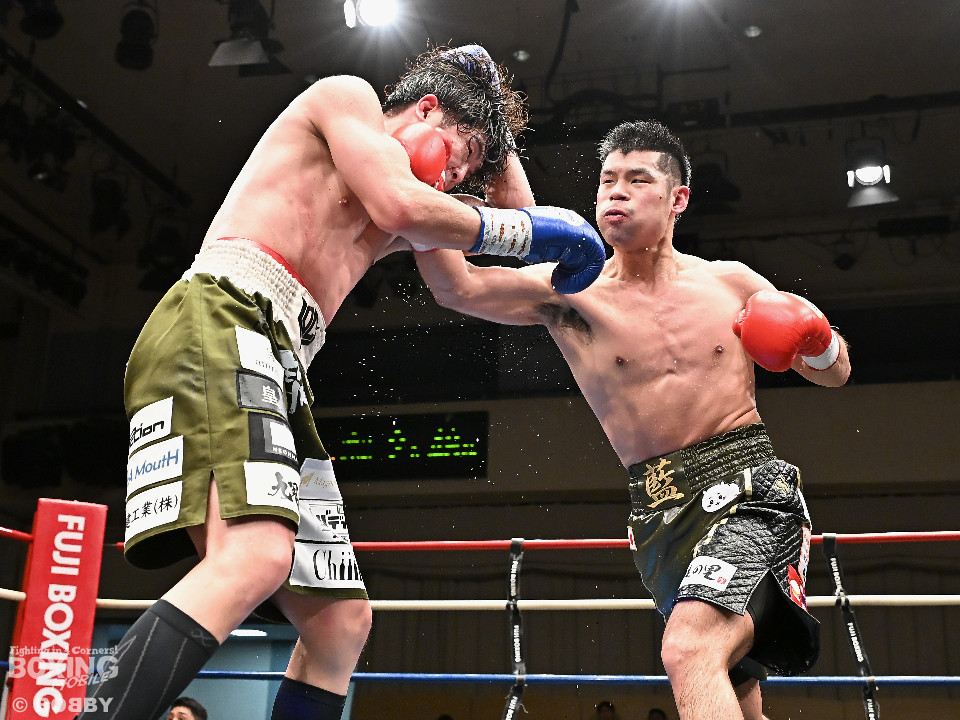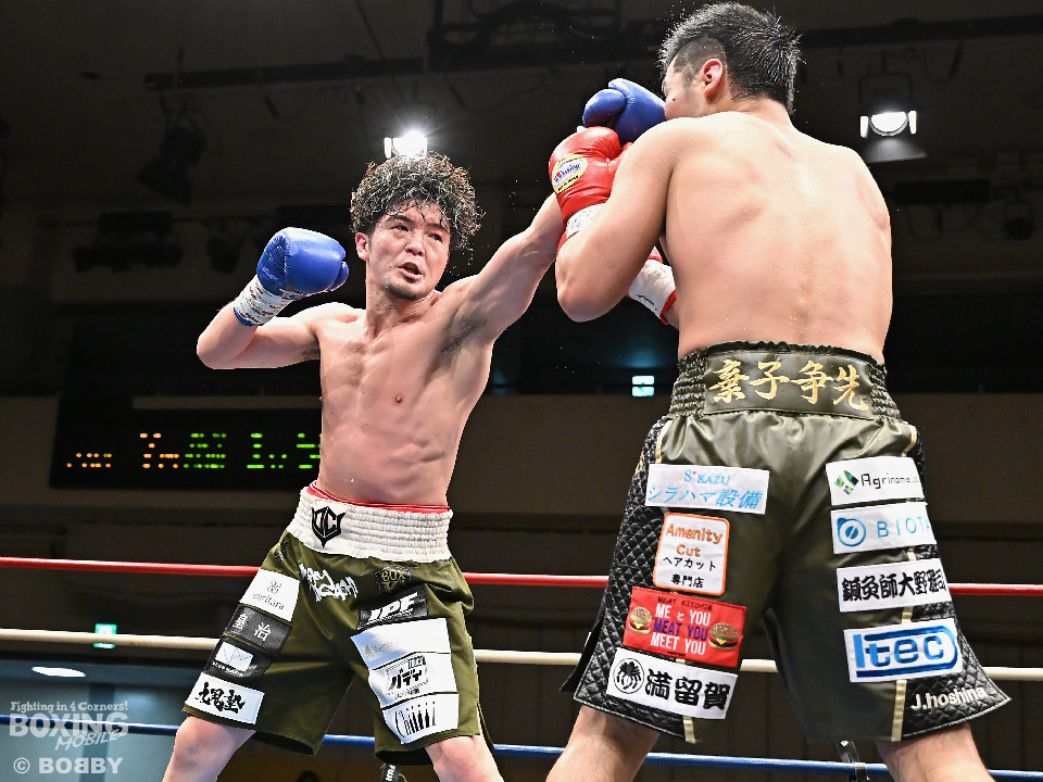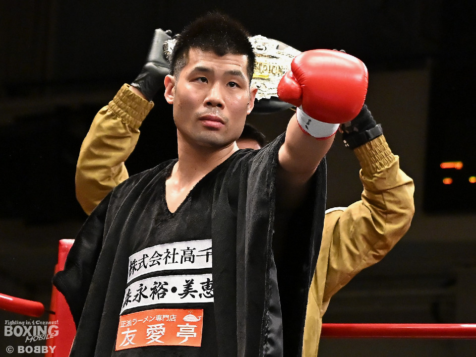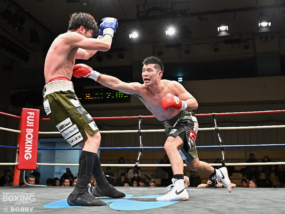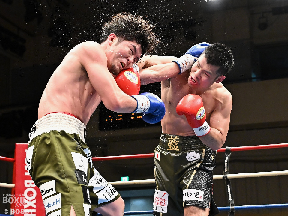 試合:日本スーパーウェルター級王者の神風がランキング1位の左右田を迎え撃った。左右田がジャブから丁寧に組み立てるとワンツーで膝を揺らして先手を奪うことに成功。2回、左右田は右ボディストレートを突き刺すと距離をキープ。単発の左ボディを決めた神風だが、後手に回った。3回、左右田は打ち下ろしの右ストレート、左ボディを好打しポイントを加点。4回、神風はプレスを強めて左フックを叩き込み反撃。5回、至近距離で激しいパンチの応酬、左右田がワンツーを決めれば神風も左ボディを突き刺した。前半終了時の公開採点は48-47(神風)、48-47(左右田)、49-46(左右田)と割れたが挑戦者がリード。6回、肉弾戦が続き体力の削り合い。7回、左右田はもう一度ジャブから組み立てるとワンツーで顔を弾く。8回、クリンチが多くなってくる中、神風が要所で右フックをヒット。9回も同じような展開となるが、今度は左右田がワンツーを決めた。10回、左右田はボディにコツコツと集めると神風も真っ向から応戦。左右田の有効打が上回った。ジャッジ3者とも4ポイント差をつけた左右田が新チャンピオンに輝いた。