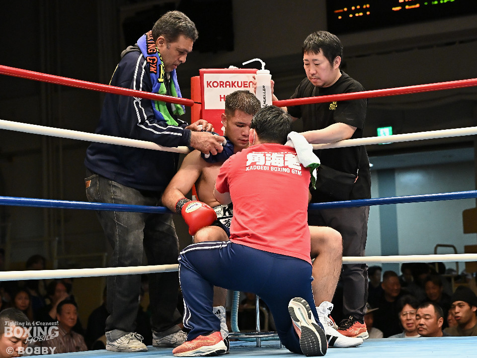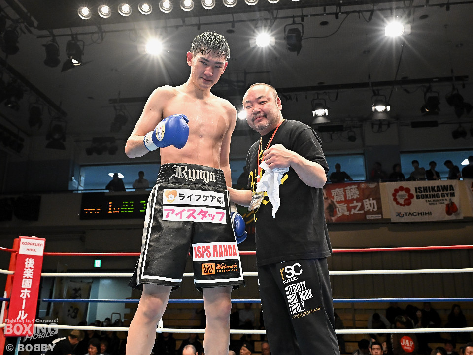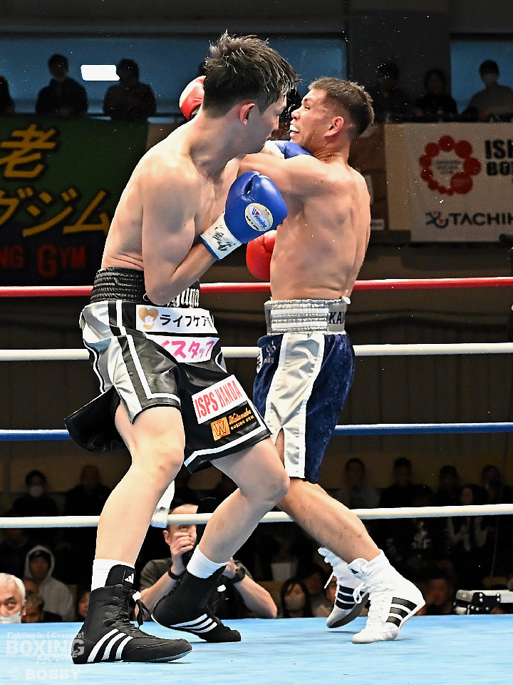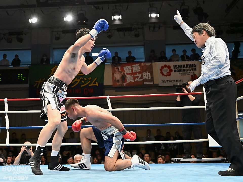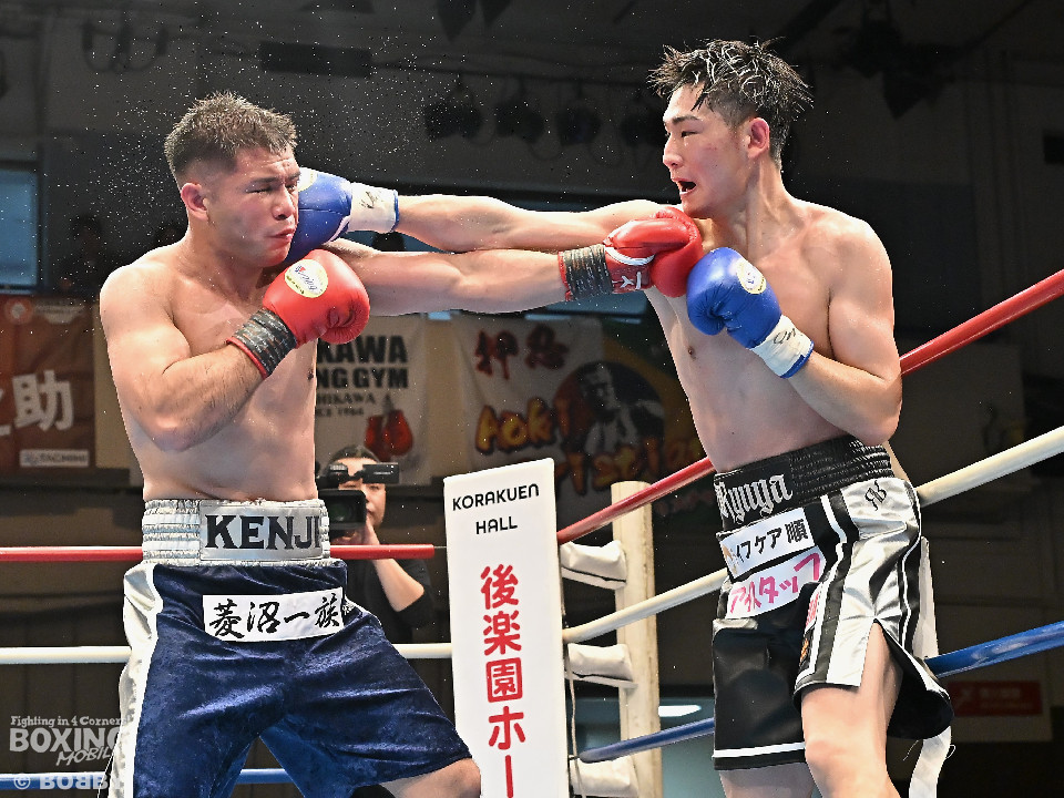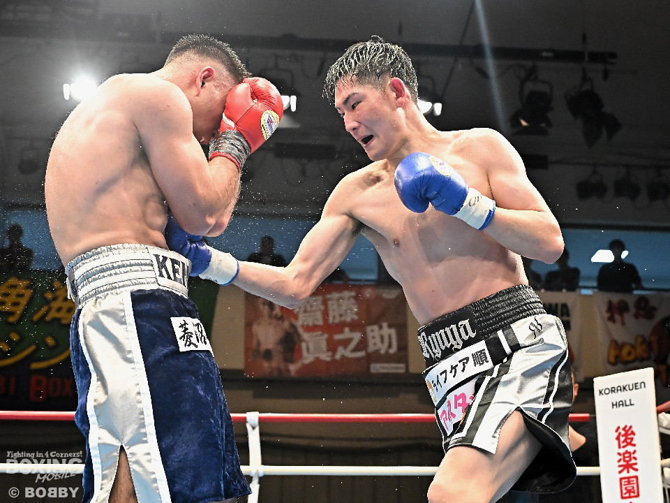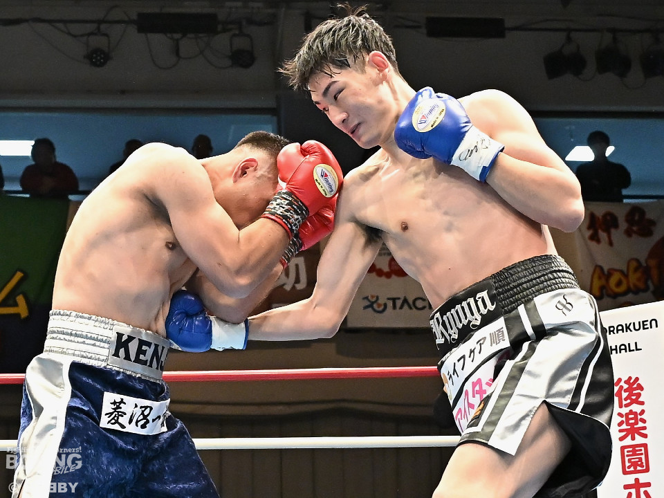 試合:日本ミドル7位・吉野が登場。吉野が一気に距離を詰め左右のフックを強振、対する盛合は打ち終わりを狙い上下にパンチを返す。序盤から迫力のある打ち合い演じ、観客は盛り上がりを見せる。2回、吉野が体を預けボディを攻め、対する盛合はガードを固め有効打を返す。ラウンド終了間際、盛合が右の打ち下ろしでダウンを先取。3回、吉野がポイントを取り返そうと重厚なプレスをからボディにパンチをまとめ、盛合は打ち終わりにコンパクトなパンチを返し対抗。4回、盛合が中間距離か、ワンツーを刺し込み、吉野は負けじと距離を潰し左右の強打を返す。5回、吉野は至近距離での打ち合いに持ち込みたいが、盛合は空間を作り細かいアッパーをねじ込む。最終6回、盛合がワンツーで顔を弾けば、吉野は左右のフックを強振し応戦。勝負の決着はジャッジに委ねられ、2者の支持を得た盛合が1年5か月ぶりの再戦で、リベンジを果たした。