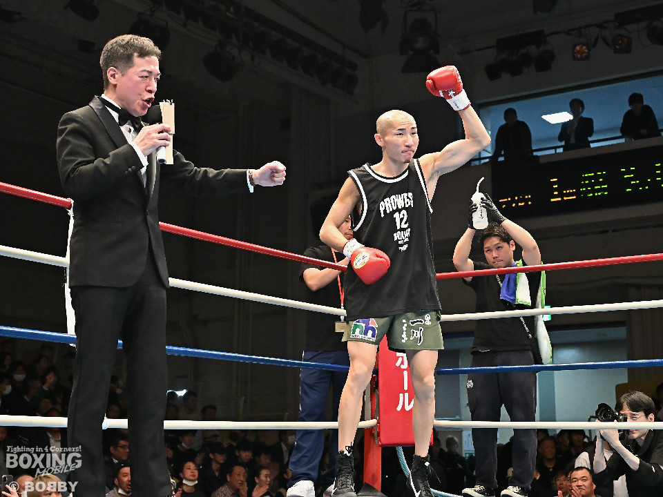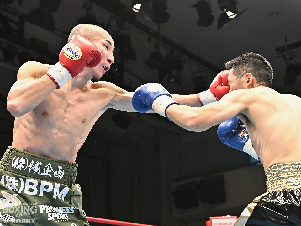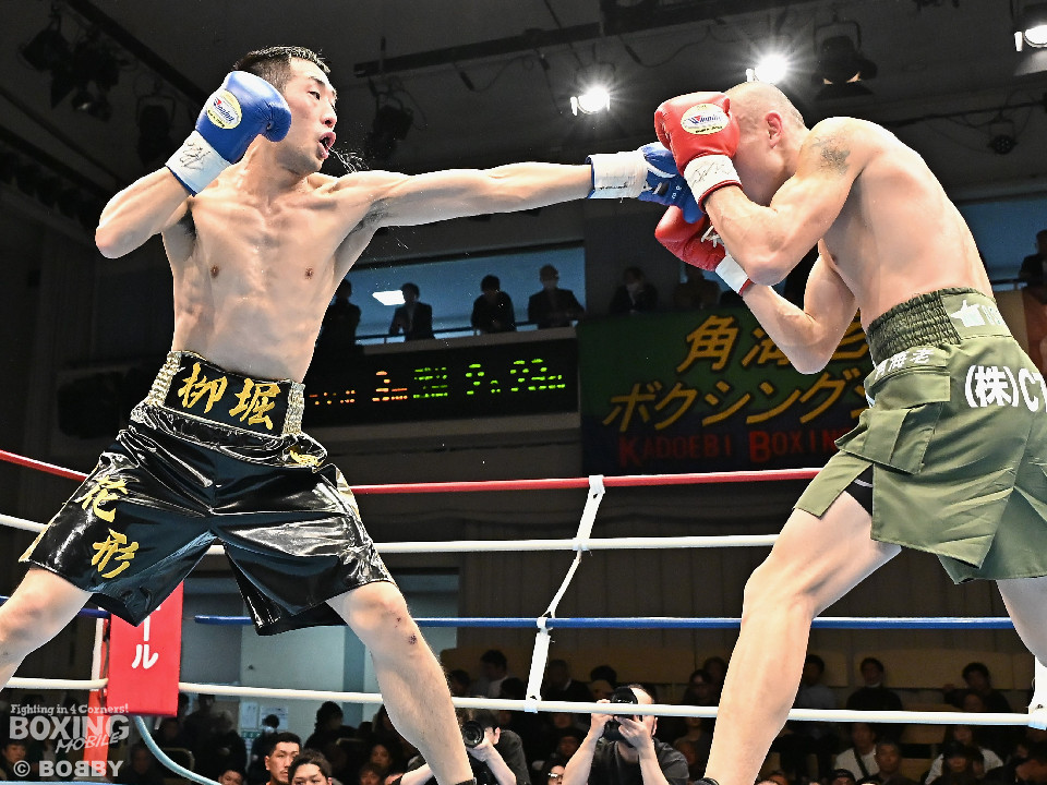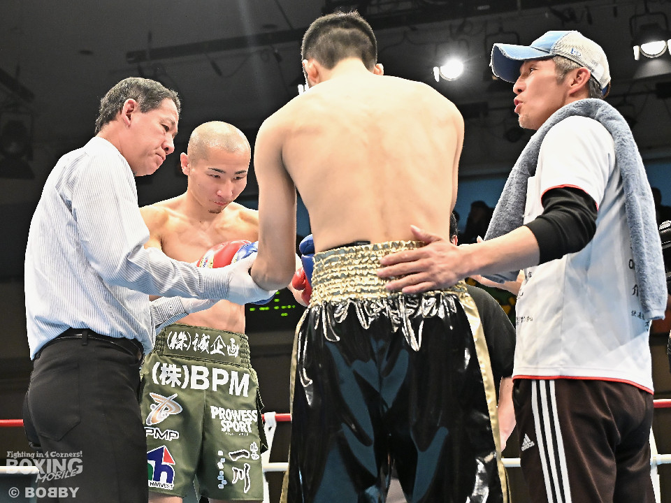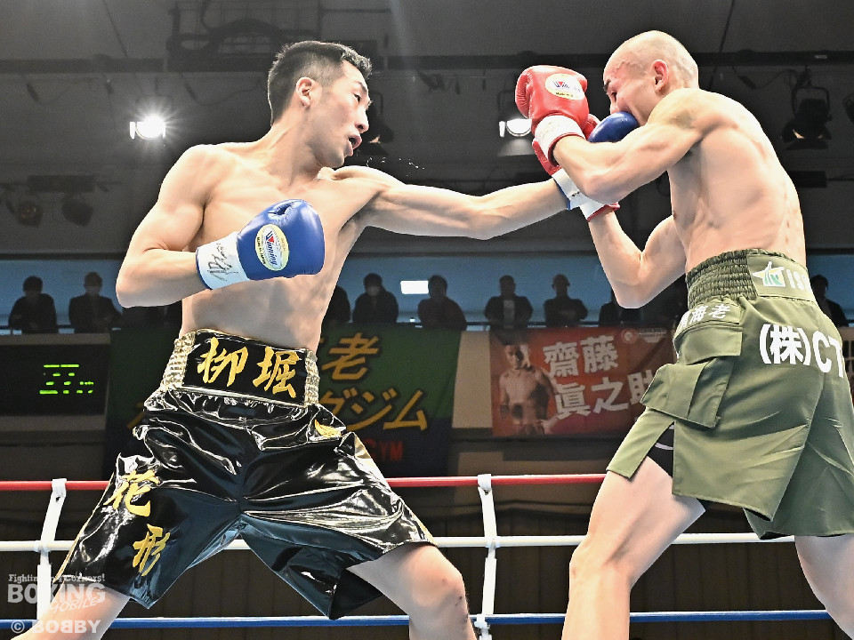 試合:日本スーパーライト級3位の富岡と、日本ランキング復帰を狙う栁堀の一戦。初回、栁堀がプレスをかけ上下へ攻め、対する富岡は冷静にジャブで顔を弾き、右の有効打へ繋げる。2〜3回、富岡がリズムを刻みながら中間距離でコンビネーションを放ち、対する栁堀はワンツーでプレスかけ、上下へパンチを繋げる。この回、富岡が偶然のバッティングに左目上をカット。4回、距離を保ちながら有効打を重ねた富岡がこの回の優勢をアピール。中盤は、栁堀が主導権を奪おうと距離を詰め、左右のフックを上手に散らすも、富岡はボディワークでパンチを受け流し、顔面にパンチをまとめ応戦。7回、栁堀の右オーバーが顔面を捉えるが、富岡は落ち着いてコンビネーションを返す。最終8回、富岡が右のショートアッパーと左フックで明確なポイントを重ねるが、栁堀も気持ち前面に出し、プレスをかけ左右のフックを放ち対抗。終始、試合を優勢に進め続けた富岡がフルマークで勝利した。