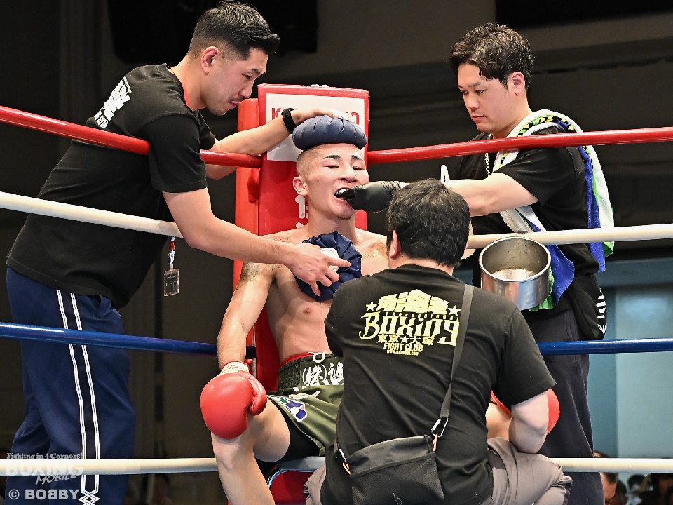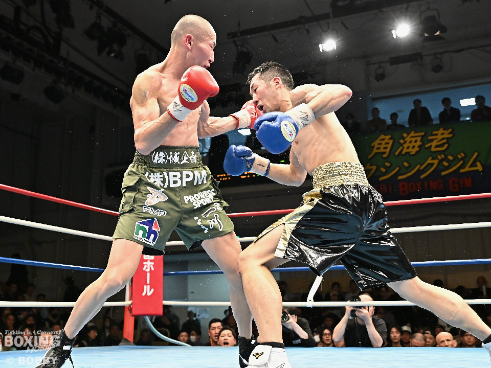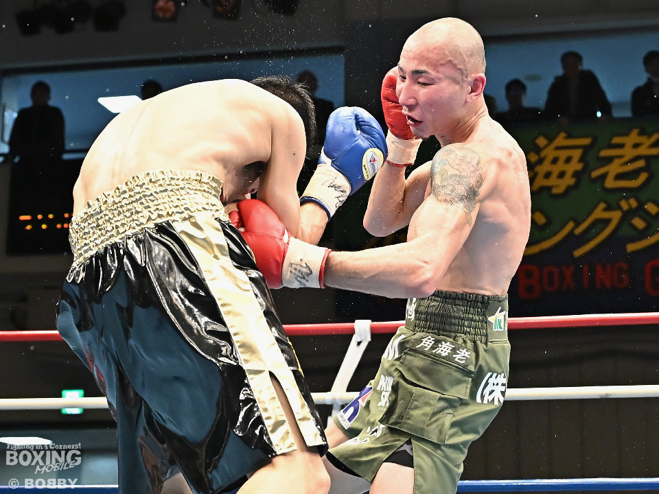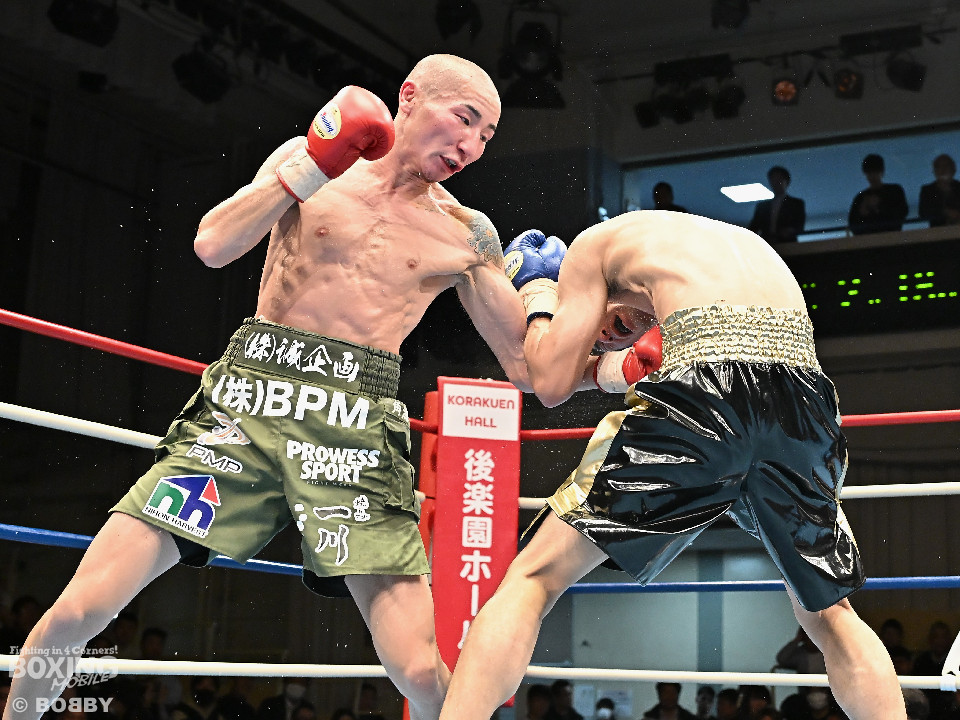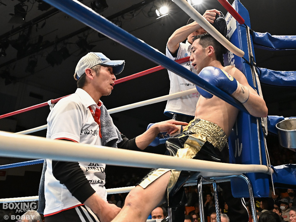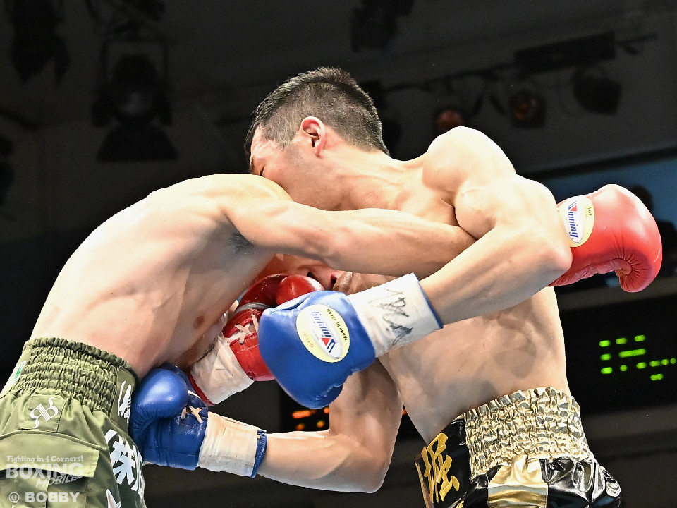 試合:日本スーパーライト級3位の富岡と、日本ランキング復帰を狙う栁堀の一戦。初回、栁堀がプレスをかけ上下へ攻め、対する富岡は冷静にジャブで顔を弾き、右の有効打へ繋げる。2〜3回、富岡がリズムを刻みながら中間距離でコンビネーションを放ち、対する栁堀はワンツーでプレスかけ、上下へパンチを繋げる。この回、富岡が偶然のバッティングに左目上をカット。4回、距離を保ちながら有効打を重ねた富岡がこの回の優勢をアピール。中盤は、栁堀が主導権を奪おうと距離を詰め、左右のフックを上手に散らすも、富岡はボディワークでパンチを受け流し、顔面にパンチをまとめ応戦。7回、栁堀の右オーバーが顔面を捉えるが、富岡は落ち着いてコンビネーションを返す。最終8回、富岡が右のショートアッパーと左フックで明確なポイントを重ねるが、栁堀も気持ち前面に出し、プレスをかけ左右のフックを放ち対抗。終始、試合を優勢に進め続けた富岡がフルマークで勝利した。