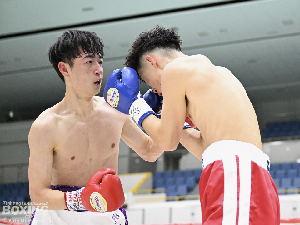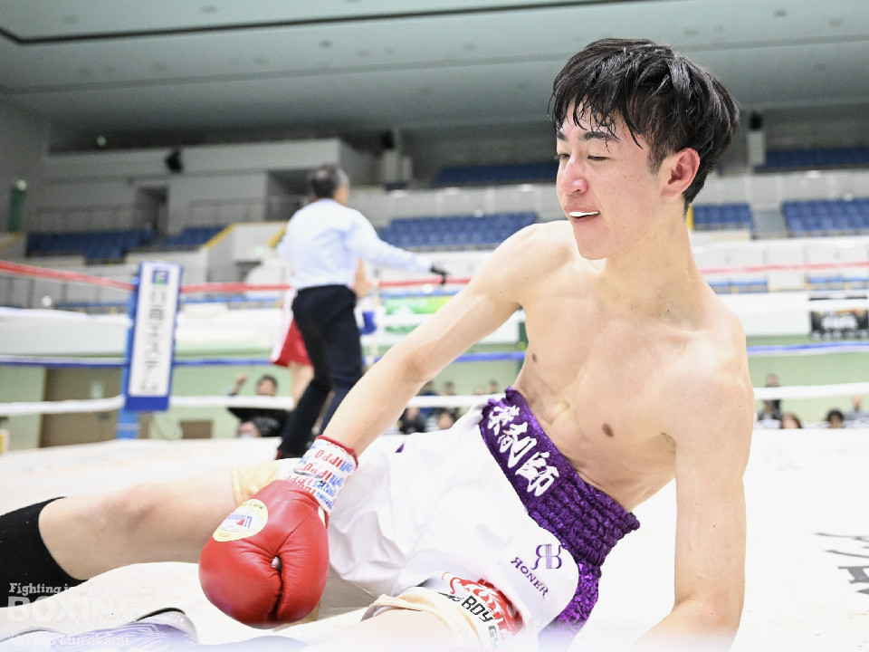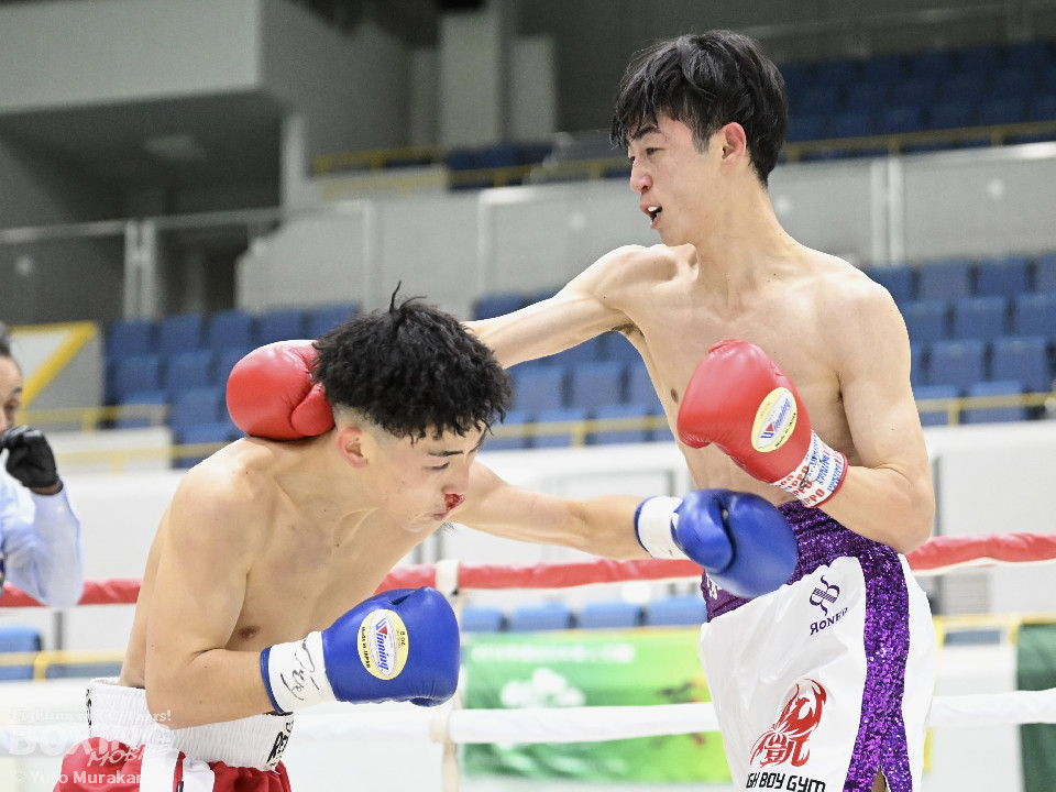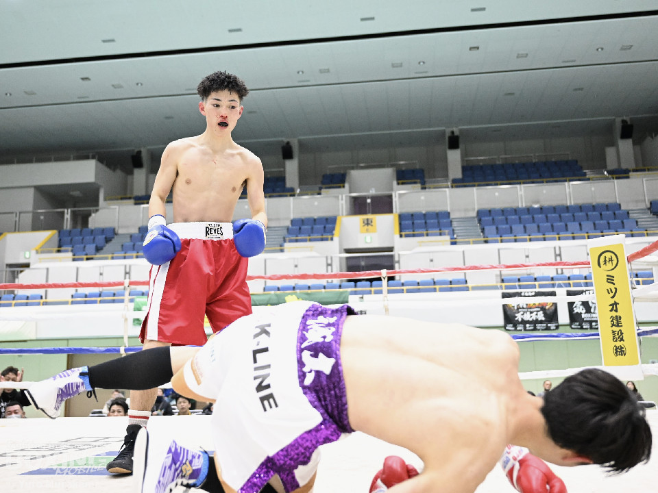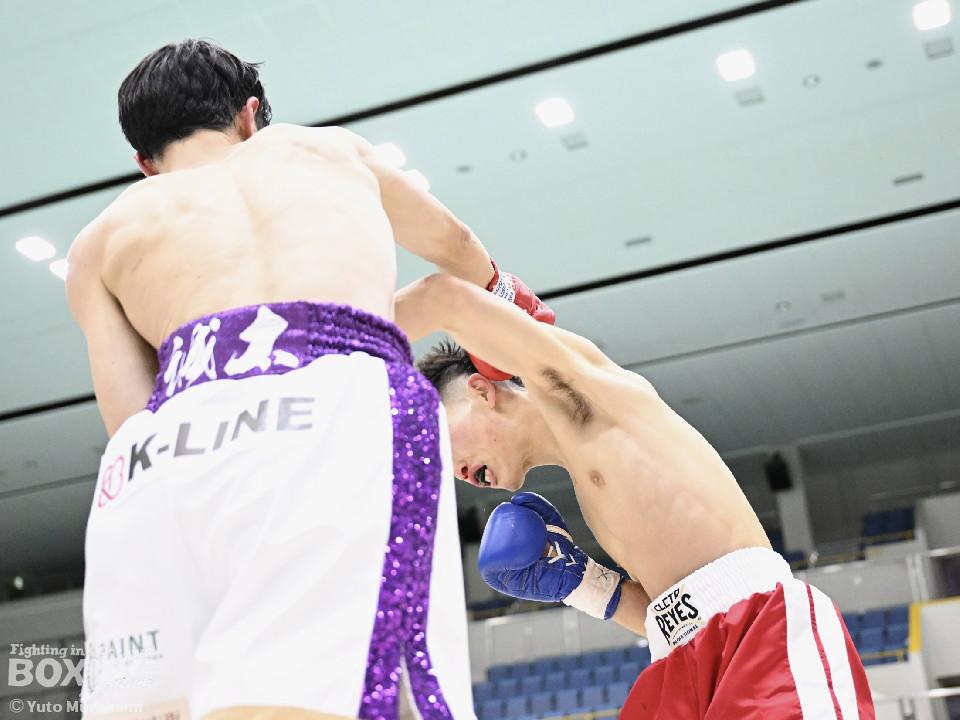 試合:片上がリーチを活かしジャブを伸ばす。サウスポーの中村は懐に入りボディからパンチを繋ぐ。ラウンド中盤から片上の右ストレートがヒットし始め中村は鼻血を流す。2回、中村は左右フックを連打し息を吹き返す。片上は連打に手を焼きながらも要所で右ストレートを返すが、中村の右フックに捕まりダウン。立ち上がろうとするも足がふらつき10カウントが数えられた。