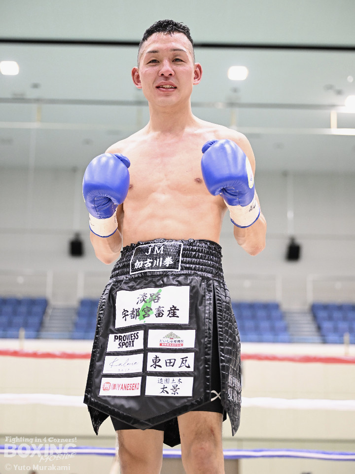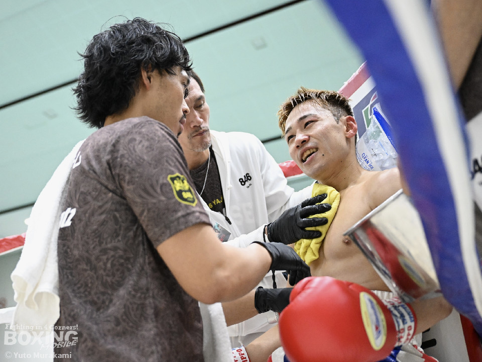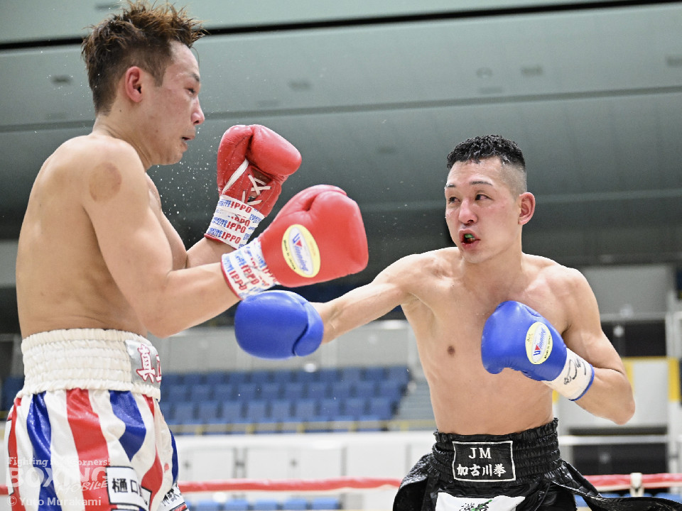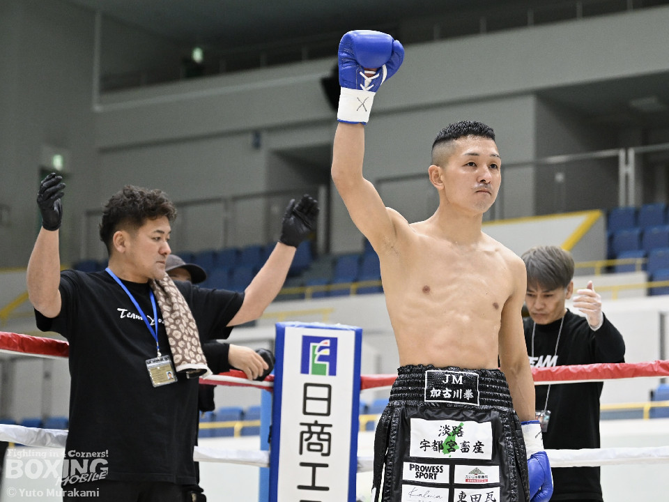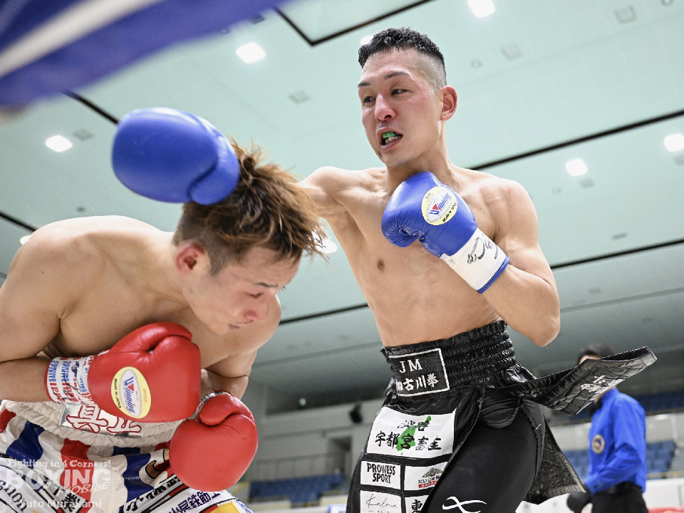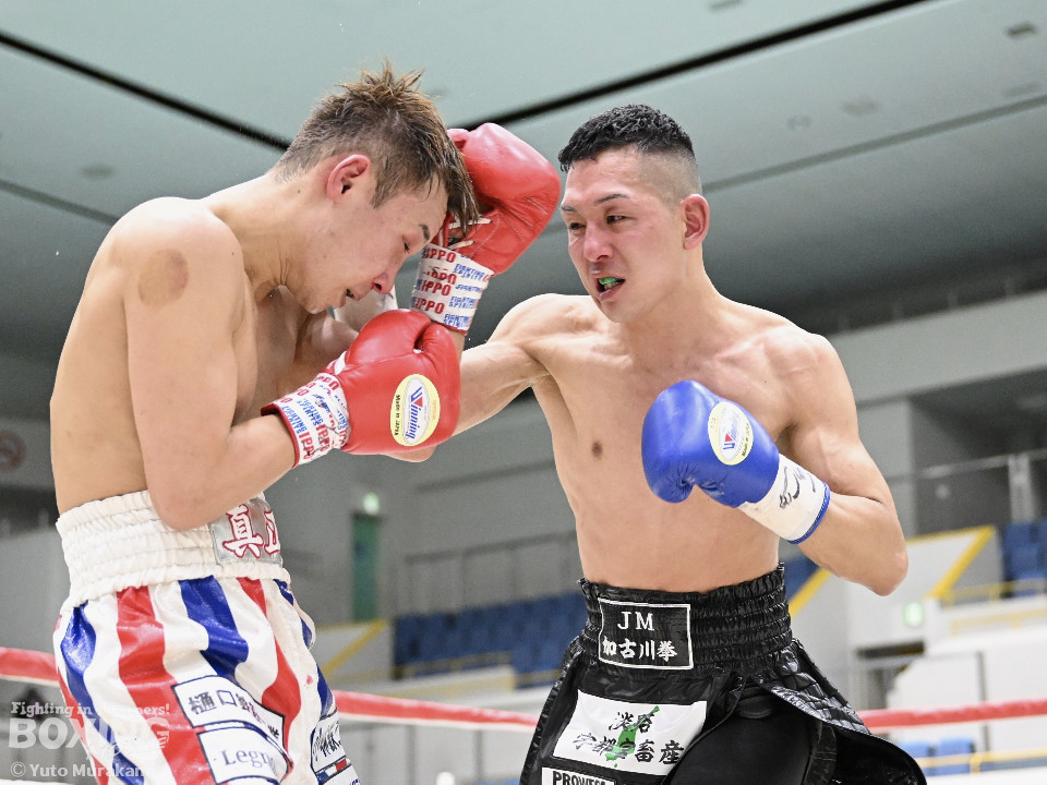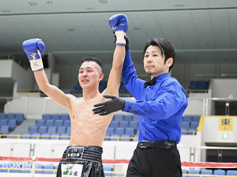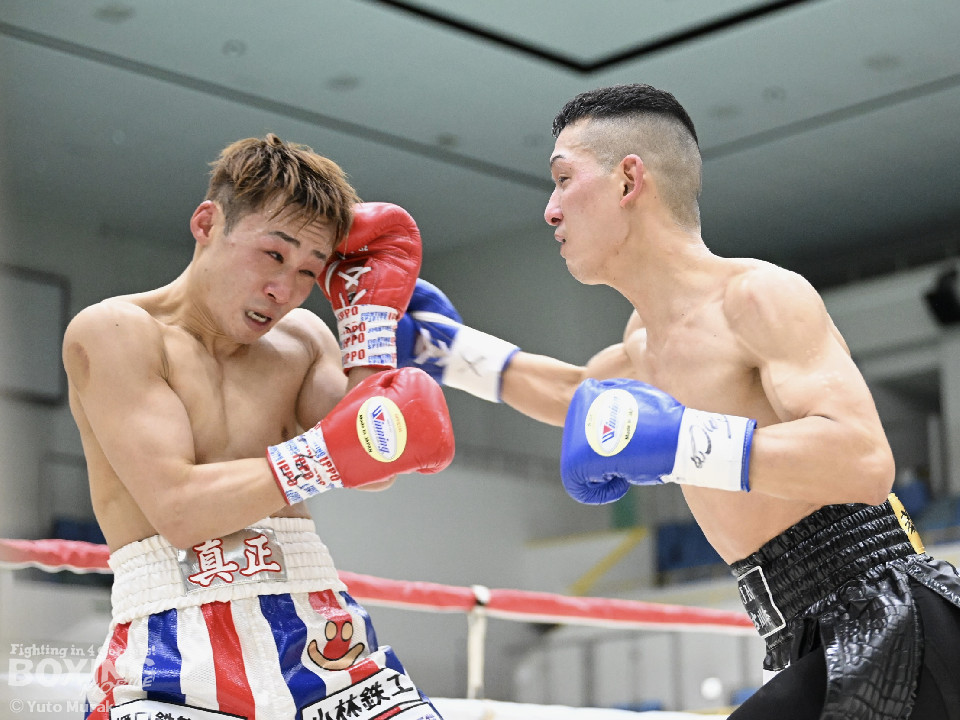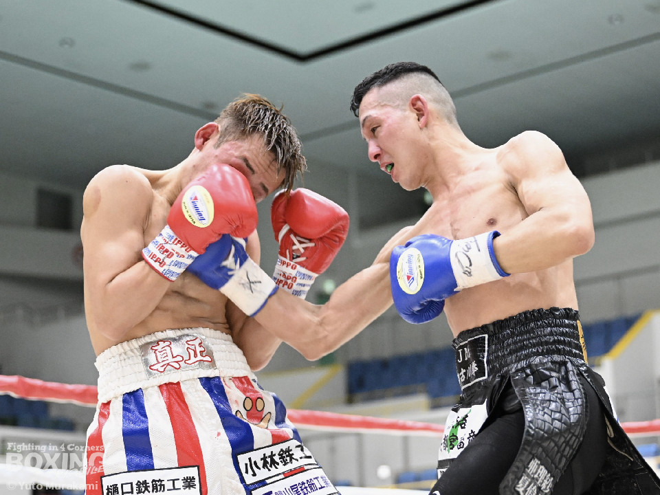 試合:湊が細かくステップを刻みジャブを伸ばし、飛び込みながら右ストレート放つ。井上はどっしり構え相手の出方を伺い、ラウンド終盤はプレスを強め、左フックをヒット。2回、湊の飛び込んでのフックをバックステップでかわした井上はフェイントを交えながら左フック、右ストレートをクリーンヒット。3回、ステップを刻み、パンチの回転数を上げた湊がコンビネーションを顔面に集めると井上もボディから顔面にパンチを繋げる。4回、湊がジャブで井上を下がらせ、右ストレートをクリーンヒットする場面を作る。5回も湊が前に出てジャブを軸にボクシングを組み立てる。井上は被弾数が増え、後手に回る。ラウンド終盤に井上がコンビネーションを顔面にヒットするが湊の勢いは止まらずゴング。6回、湊がジャブを突き刺すと井上もカウンターで左フックを返し、打ち合う展開となり、一進一退の攻防。7回、開始からお互い体をくっつけ打ち合う。湊は左右フック、井上は要所で右ストレートを打ち下ろす。湊は最後まで手数を緩めず打ち続けるが、井上のカウンターのフックが決まり、一瞬止まる。最終回、お互い勝負を決めるべく打ち合う展開になる。死力を尽くした試合の勝敗は判定となり、的確にジャブを当て続け最後まで手数を緩めなかった湊が勝利を上げた。