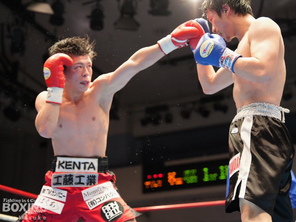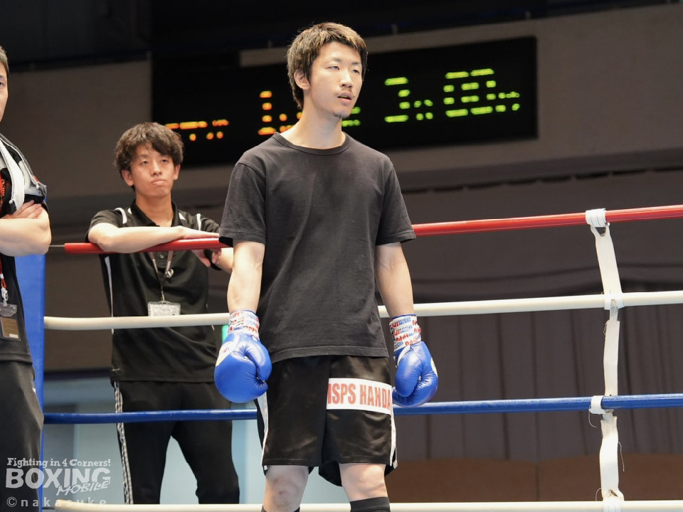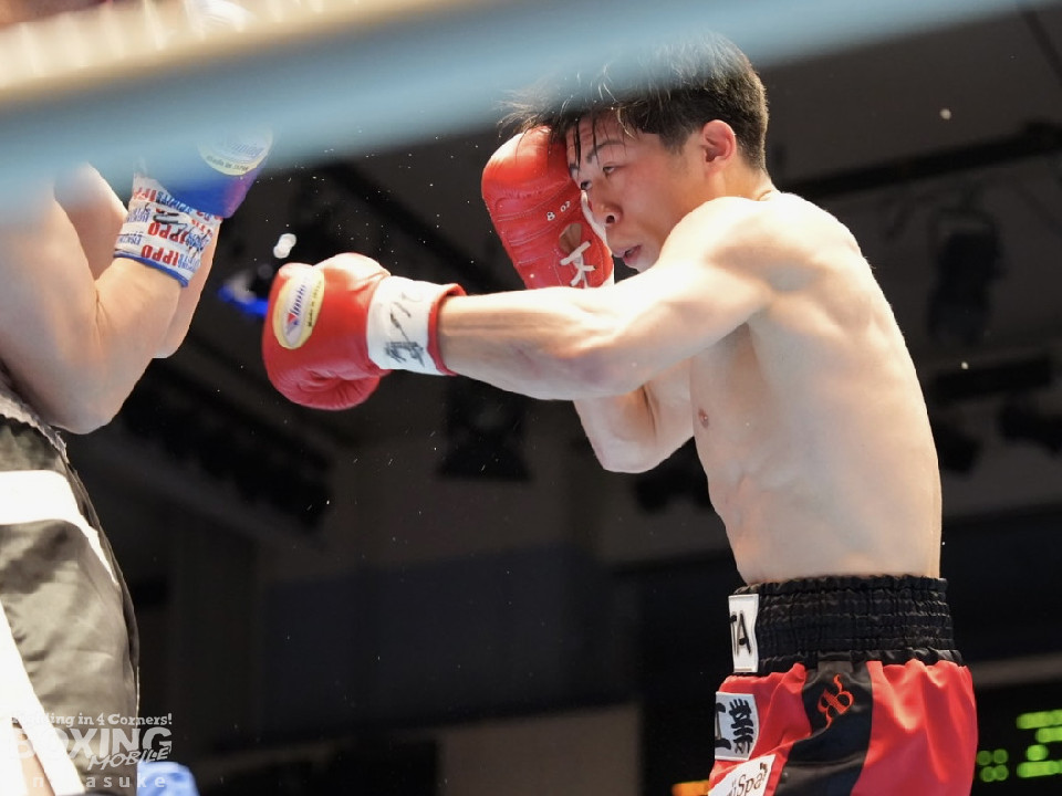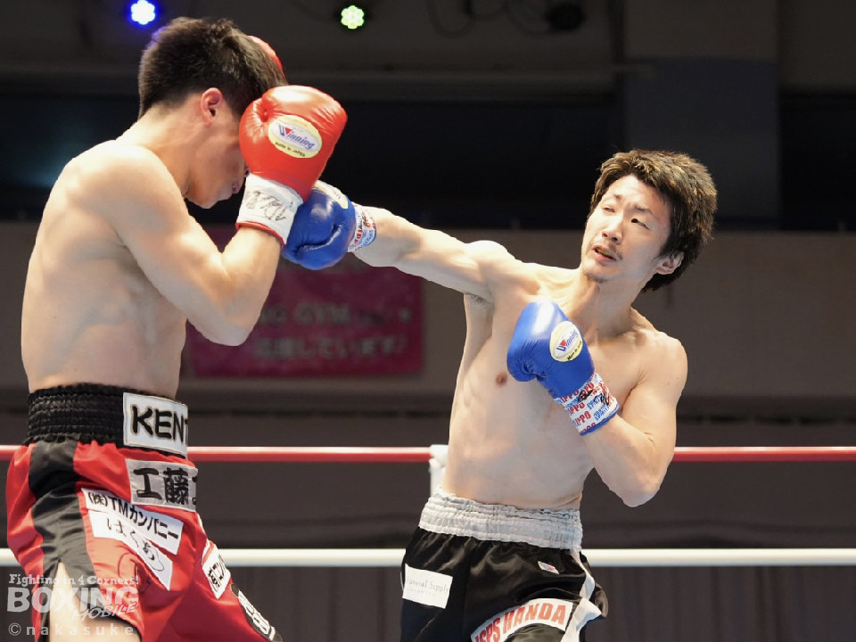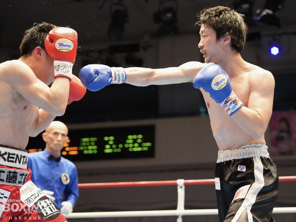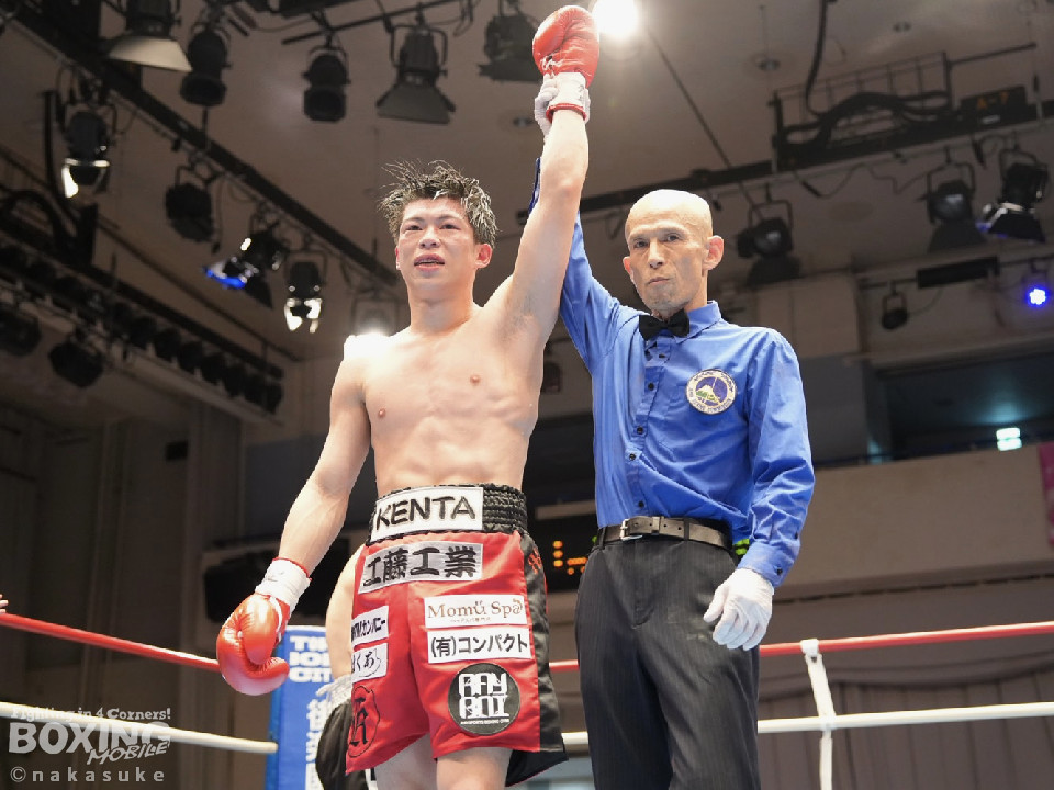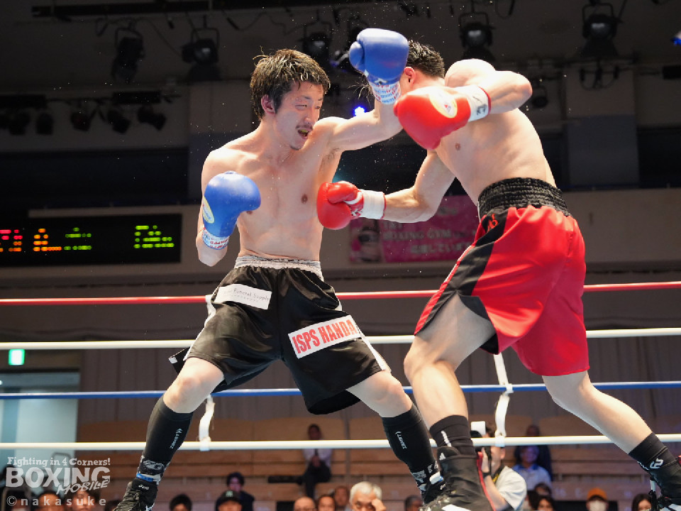 試合:昨年11月以来の再戦(引き分け)は、柿原がステップインからワンツー、左ボディをヒット。2回、壬生狼はガッチリとガードを固めると打ち終わりに右フックを決めて反撃。3回、中間距離で激しいパンチの応酬を繰り広げる中、柿原が右クロスで顔を弾いた。4回、柿原はワンツーを好打すると、サイドにスッと動き見栄えの良さをアピール。ボディにパンチを集めた壬生狼だが、後手に回った。5回、壬生狼はプレスをかけて上下に打ち分けアグレッシブな姿勢。6回、最後の力を振り絞り懸命に打ち合う中、柿原の有効打が上回った。2~4ポイント差をつけた柿原が勝利した。