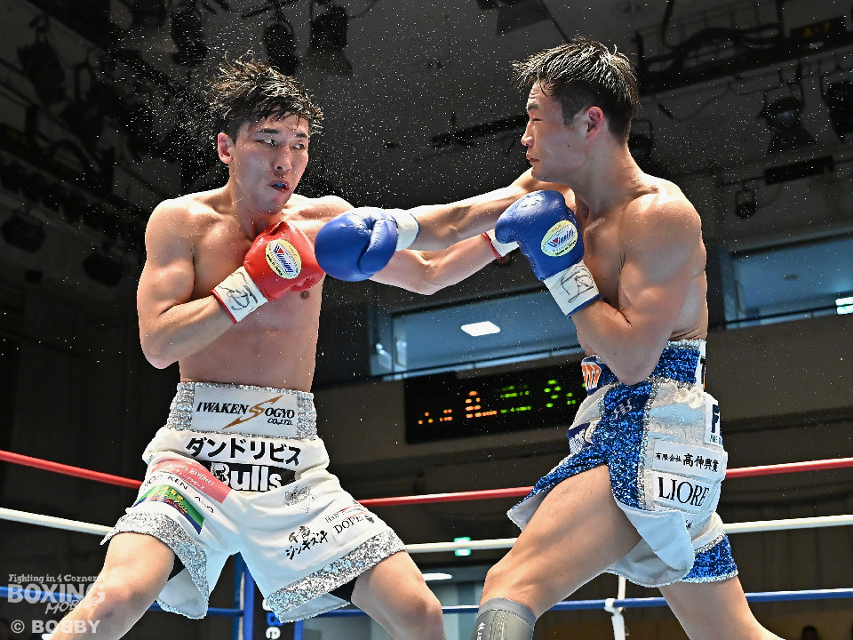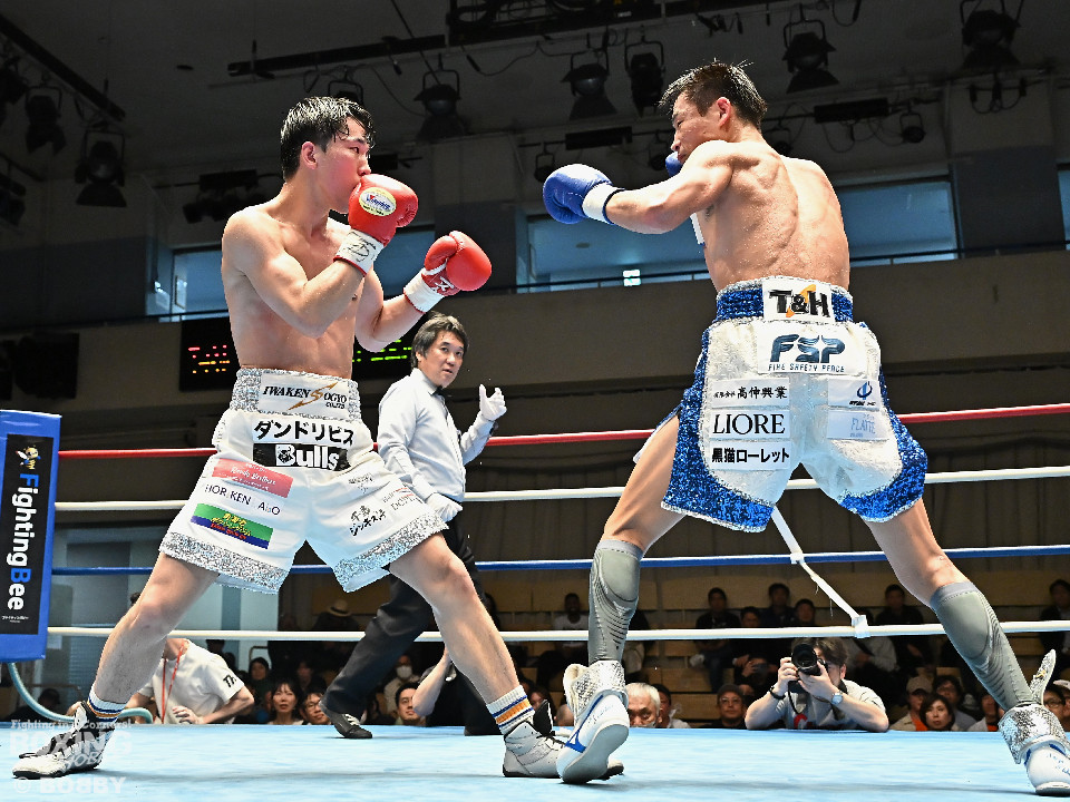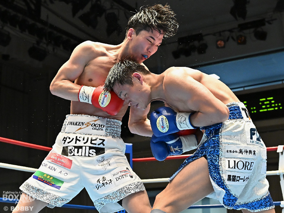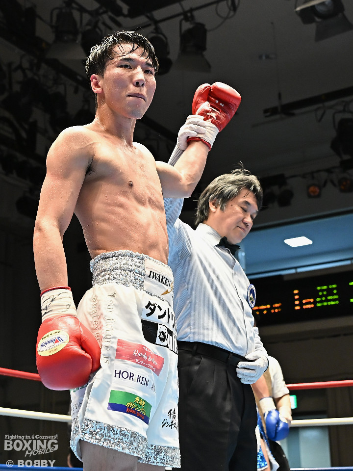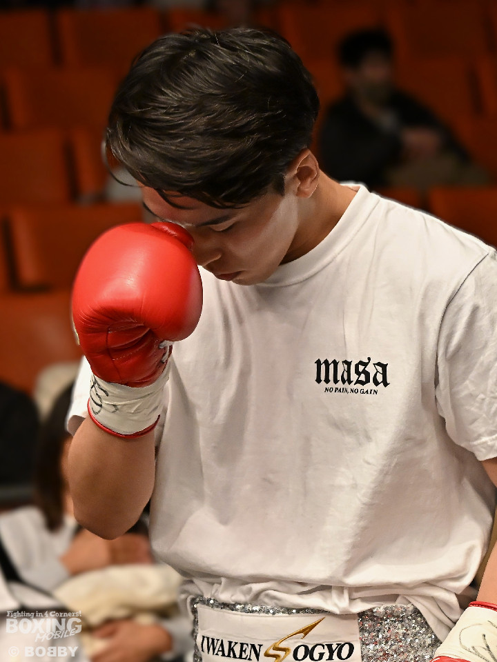 試合:フェイントをかけつつ機会を探った榊野は右フックで先制、左右ボディを好打した。2回、榊野はワンツーをヒット、ジャブから右ボディにつなげた。3回、挽回すべく攻勢を強めた西畑に対し、榊野はジャブから右ボディを突き刺すとワンツーで顔を跳ね上げた。4回、パンチを上下に散らした榊野は右フックでダウンを先取、再開後はボディにパンチを集めた。5回、近距離の打ち合いでは左フックを決めた榊野に対し、西畑は右をヒット、右ボディを好打した。6回、ジャブから右ボディにつなげた西畑はワンツーで顔を跳ね上げると右フックでポイントを重ねた。7回、左フックを叩きつけた榊野はワンツーをヒット。西畑もワンツーで反撃した。8回、榊野はワンツーを左フックまで返し、優勢をアピール。西畑にロープを背負わせてパンチをまとめると西畑はワンツーで反撃し意地を見せた。結果は3者の支持を得た榊野が再起戦を勝利。ランキング復活を確実とした。