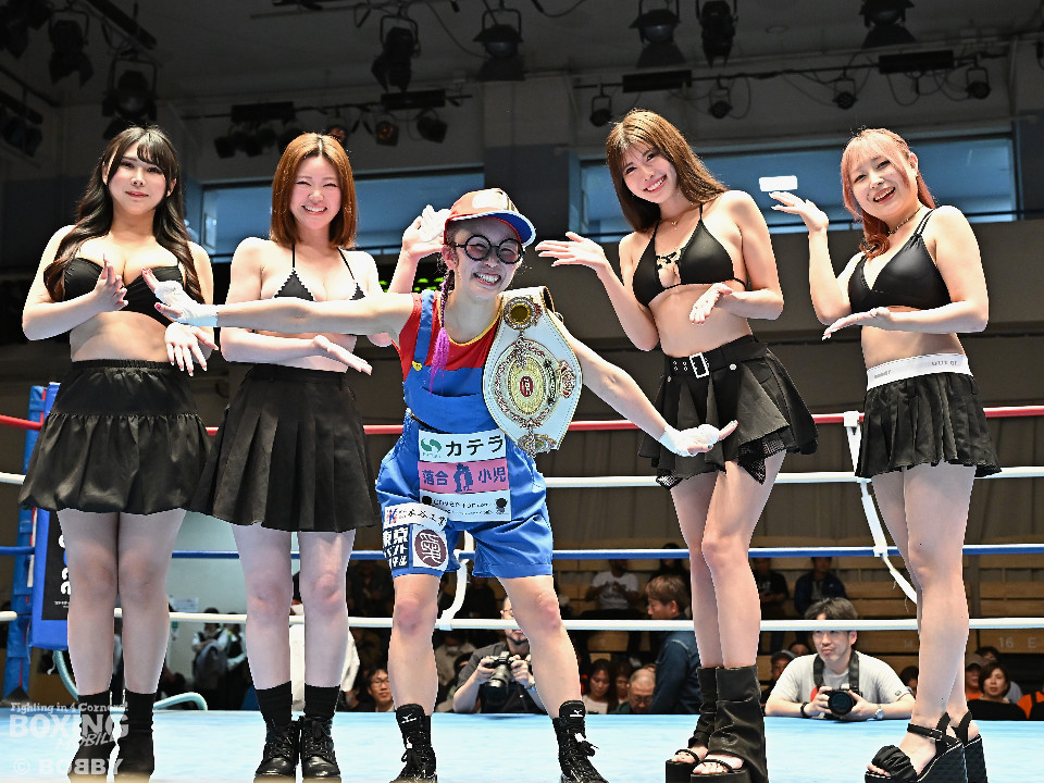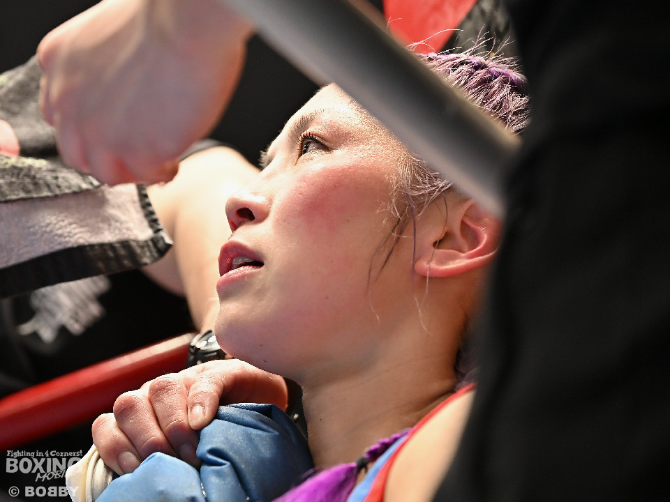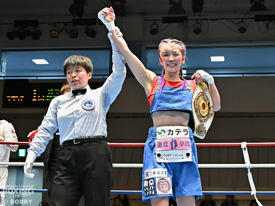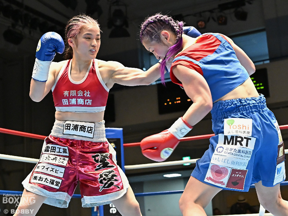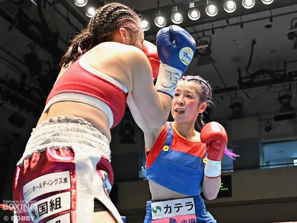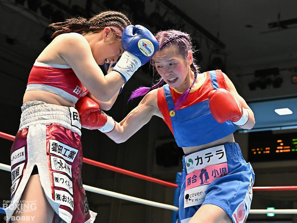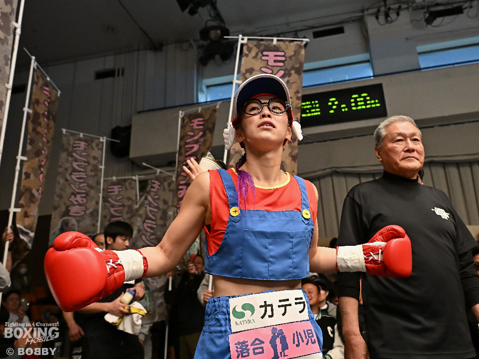 試合:日本アトム級王者のモンブランみきがランキング1位の坂本を相手に2度目の防衛戦に臨んだ。モンブランがプレスをかけてジャブから左ボディで先制攻撃。対する坂本は表情を変えず足を使いながら要所でワンツーを返した。2回、坂本は出入りを意識しながらワンツーで反撃。モンブランはボディにパンチを集めて動きを止めに行った。3回、モンブランはボディを突き刺し積極的な攻撃。頭がぶつかり両者とも前頭部を腫らした。4回、坂本はワンツーを軸にメリハリのある攻撃で見栄えの良さをアピール。5回、偶然のバッティングでモンブランは左目下を負傷。その後は激しいパンチの応酬で譲らず。6回、モンブランはプッシュしながら豊富な手数で攻め立てた。2~4ポイント差をつけたモンブランが王座防衛に成功した。