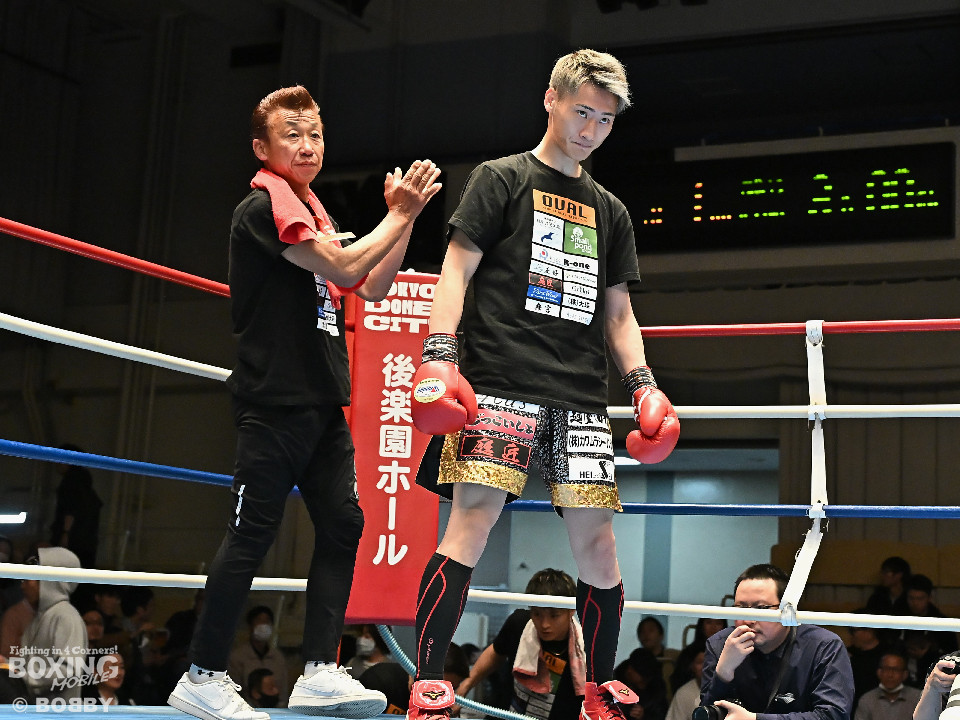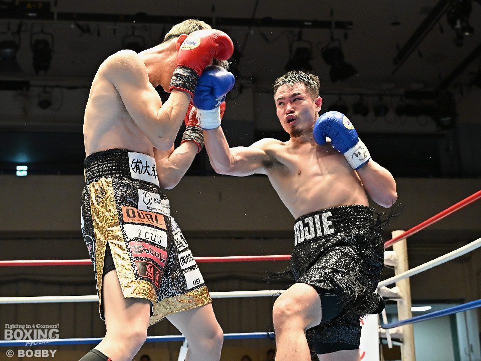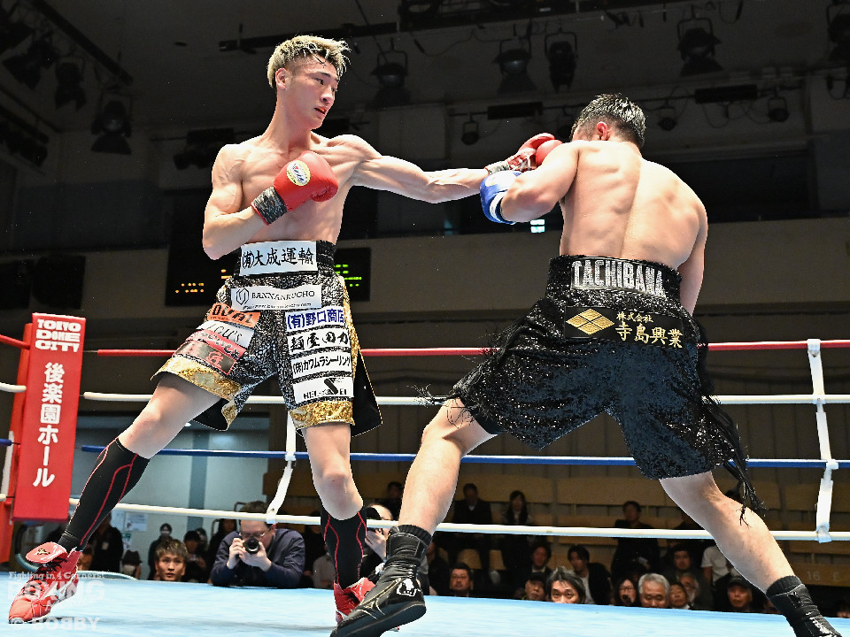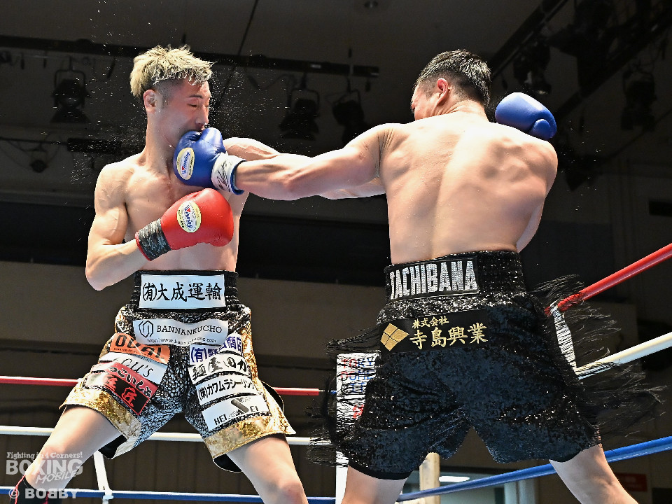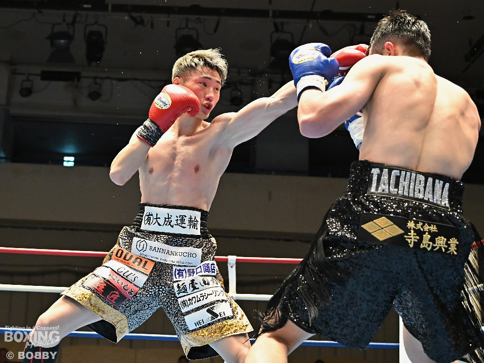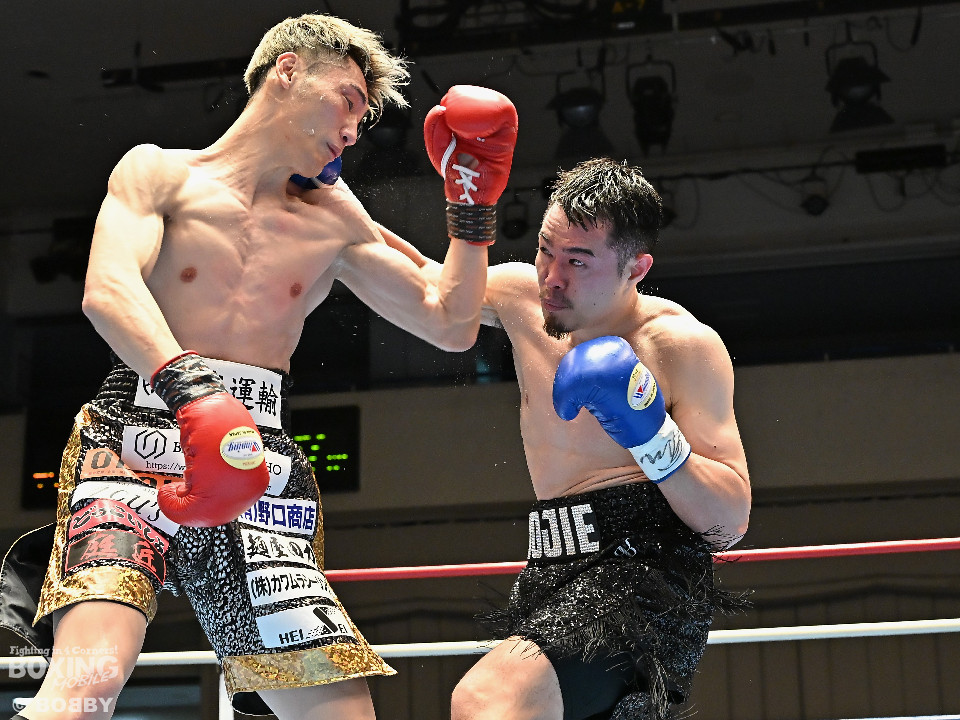 試合:松岡がジャブを飛ばして先に仕掛けるのに対し、橘はブロックで対応すると右ショートを好打。2回、橘は距離をキープしながら不用意に近づかずジャブで丁寧な組み立て。3回、橘は右クロスで膝を揺らすと攻め急がず左・左と繰り出した。4回、松岡は距離を詰めてワンツーで反撃するが、橘はクリンチで遮断。5回、松岡はワンツー左ボディを決めるが、橘も真っ向から応戦すると左フックをねじ込み譲らず。6回、橘はジャブを軸に右フック、左ボディで攻勢を印象付けた。ジャッジ2者の支持を得た橘が連敗脱出に成功した。