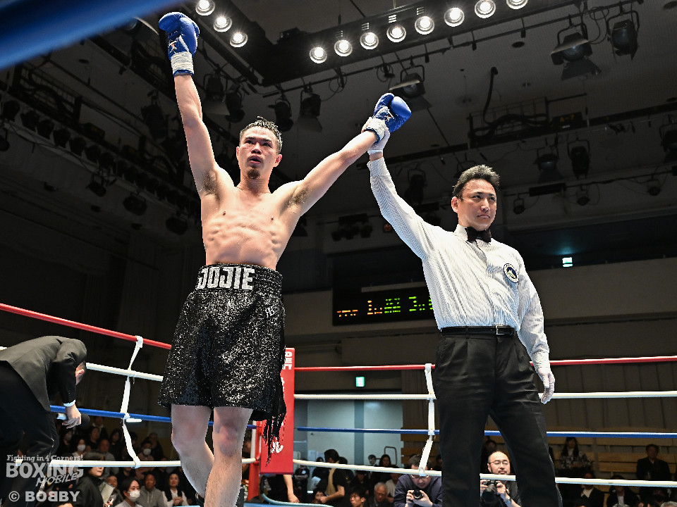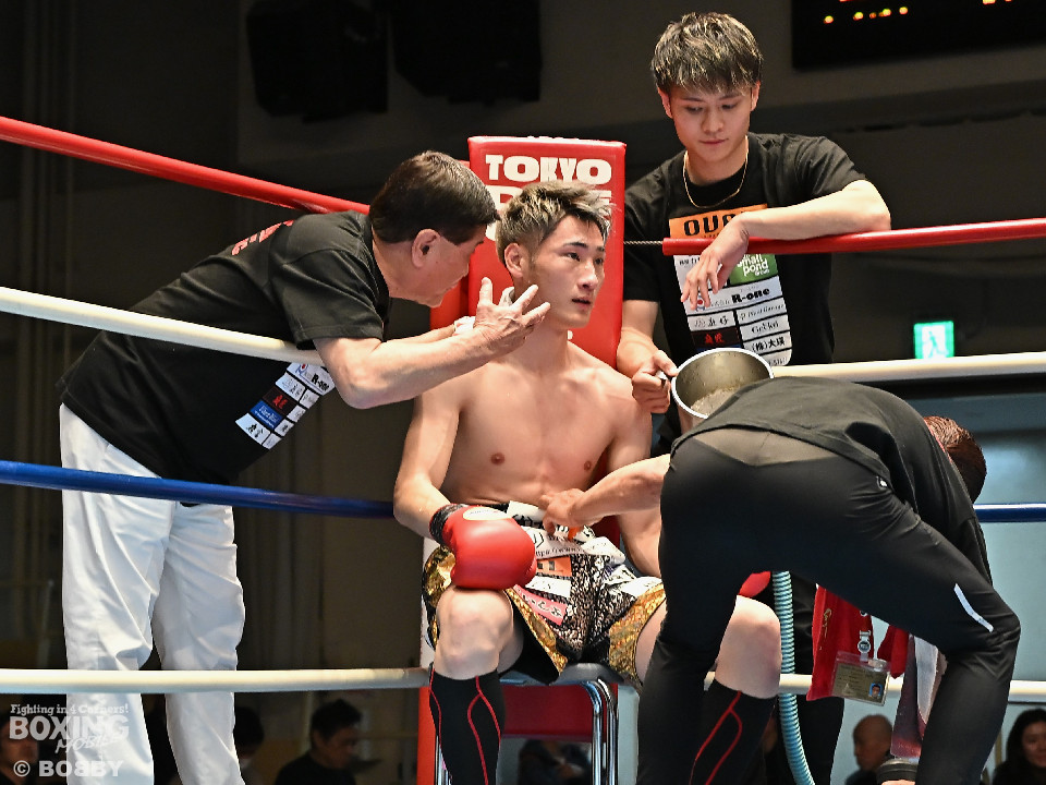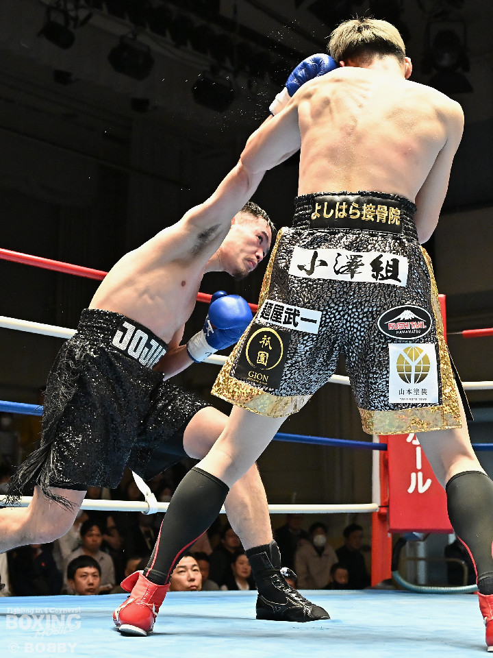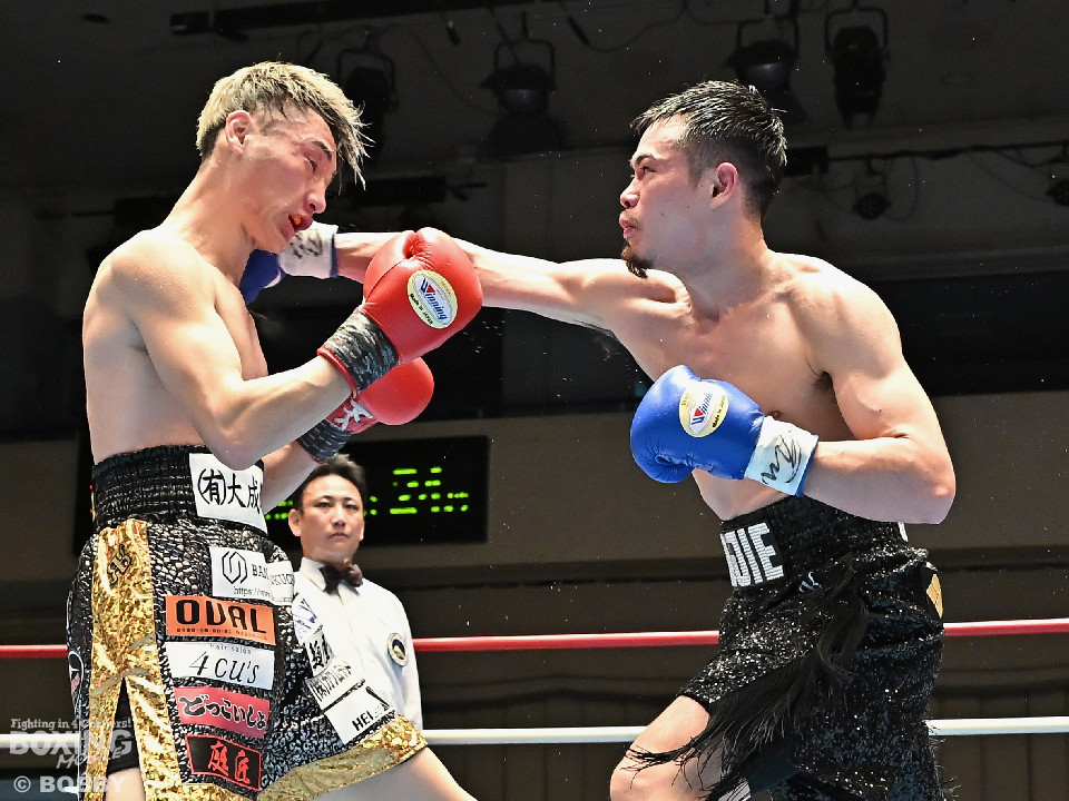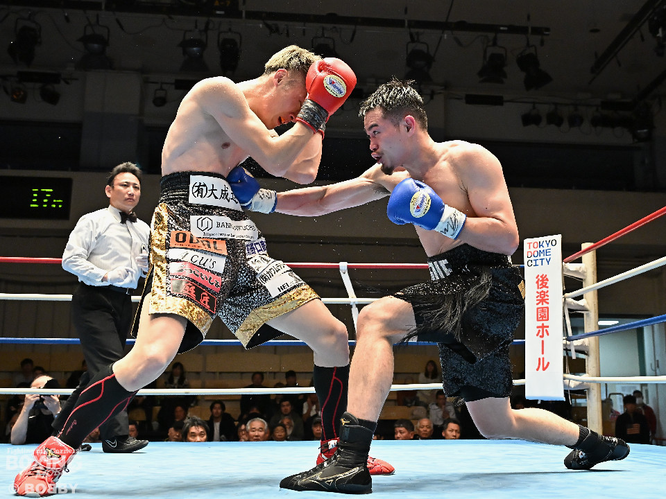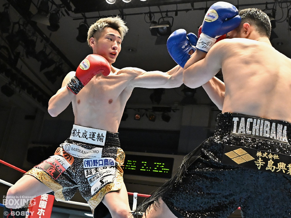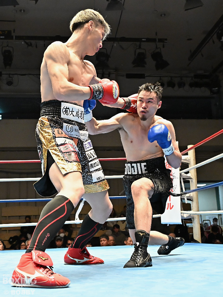 試合:松岡がジャブを飛ばして先に仕掛けるのに対し、橘はブロックで対応すると右ショートを好打。2回、橘は距離をキープしながら不用意に近づかずジャブで丁寧な組み立て。3回、橘は右クロスで膝を揺らすと攻め急がず左・左と繰り出した。4回、松岡は距離を詰めてワンツーで反撃するが、橘はクリンチで遮断。5回、松岡はワンツー左ボディを決めるが、橘も真っ向から応戦すると左フックをねじ込み譲らず。6回、橘はジャブを軸に右フック、左ボディで攻勢を印象付けた。ジャッジ2者の支持を得た橘が連敗脱出に成功した。