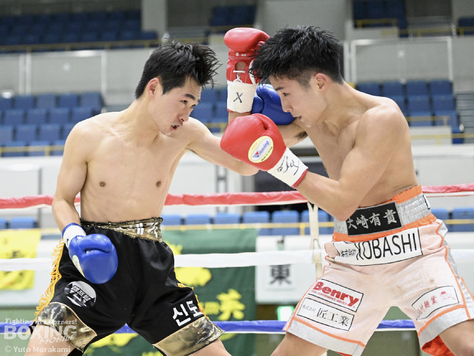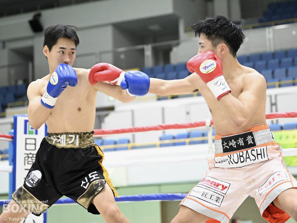 試合:サウスポーの浦崎がジャブを伸ばしリズムを作る。イのリターンもバックステップでかわす。2回も浦崎がジャブとバックステップを巧みに使い距離をキープ。3回、浦崎はステップインからジャブ、ワンツー、カウンターの左ストレートをヒット。イはロープに詰めるが浦崎に対処される。4回、浦崎のノーモーションの左から右フックがクリーンヒット。5回、この回から浦崎はスイッチしながらイを撹乱する。最終回、浦崎はサイドチェンジを繰り返しクリーンヒットを奪い攻勢をアピールし、試合終了のゴング。判定はロープに詰められることもあったが、的確にパンチを顔面に集めた浦崎が勝利を挙げた。