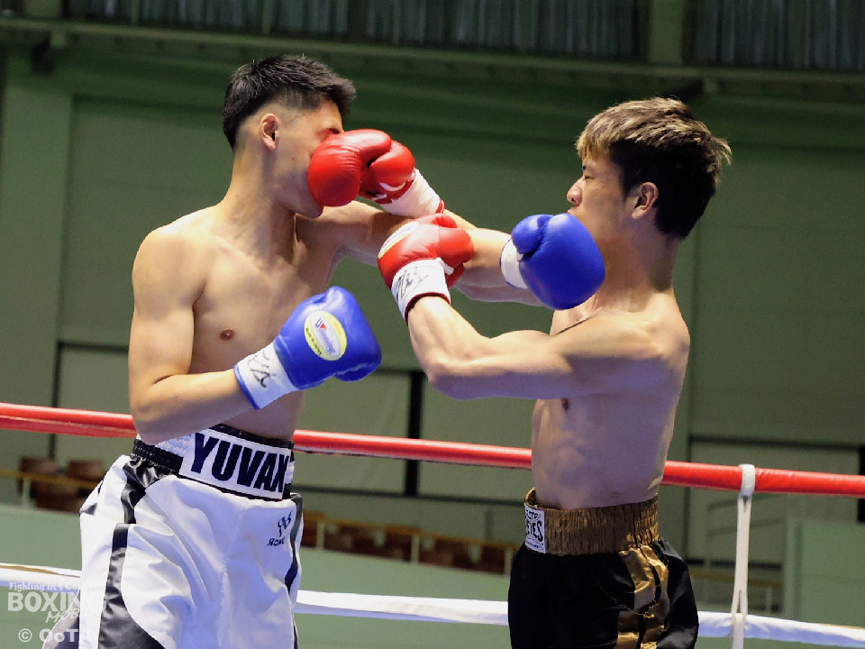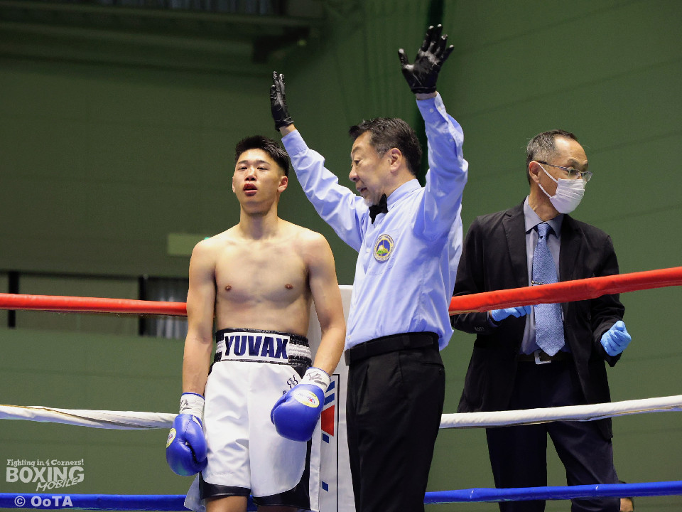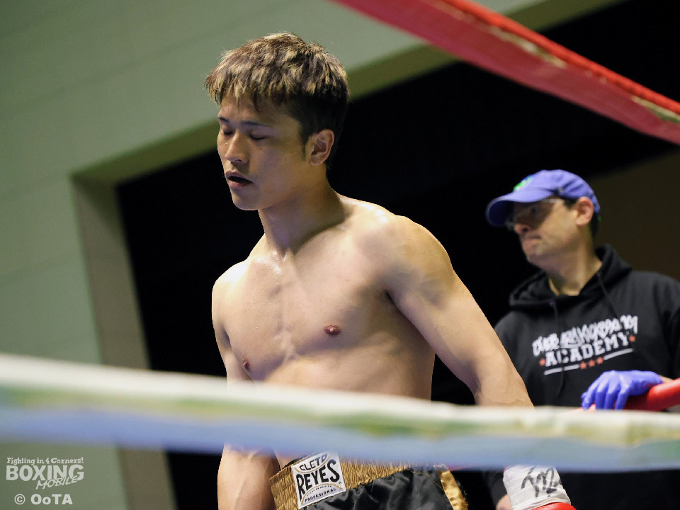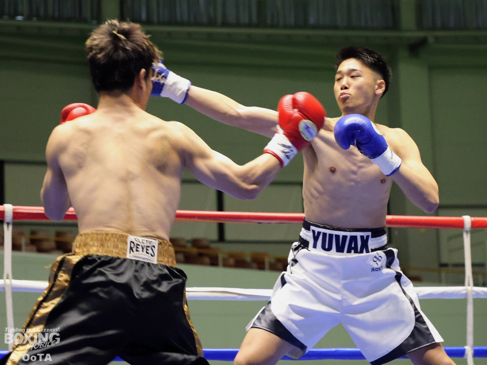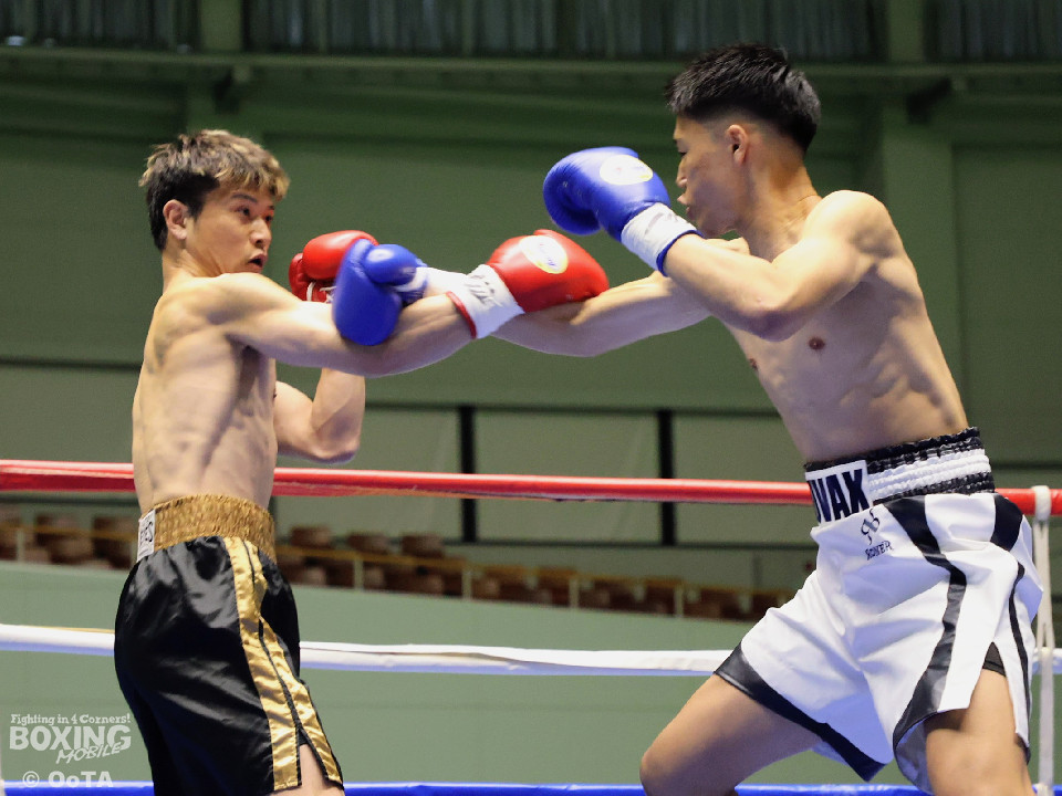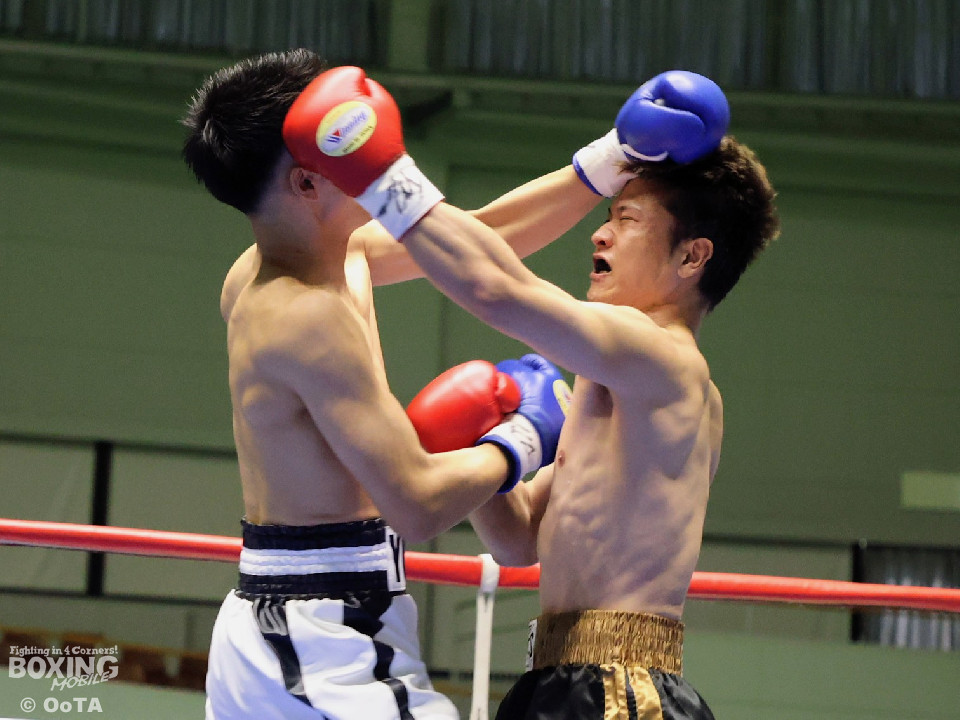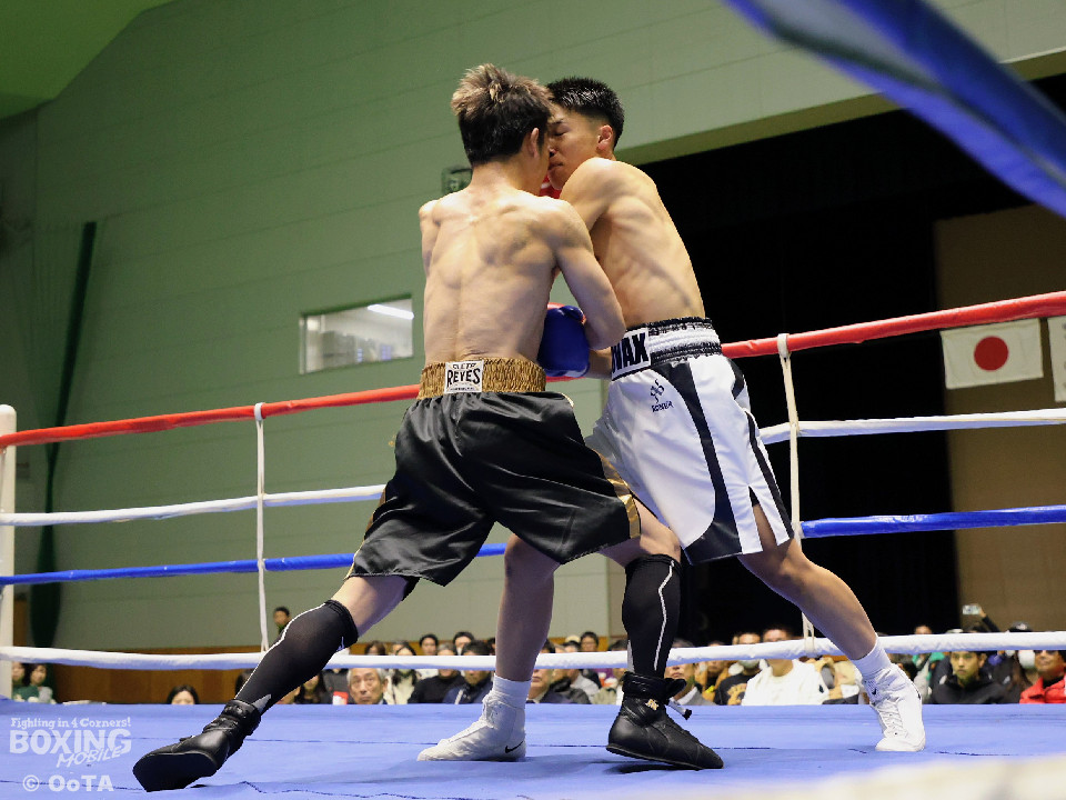試合:サウスポー同士の一戦となり、互いに開始から一気呵成に打ち合いを展開するも偶然のバッティングが早々に発生。リングドクターのチェックが入り、藤崎の鼻が陥没骨折と判断。テクニカルドローとなった。