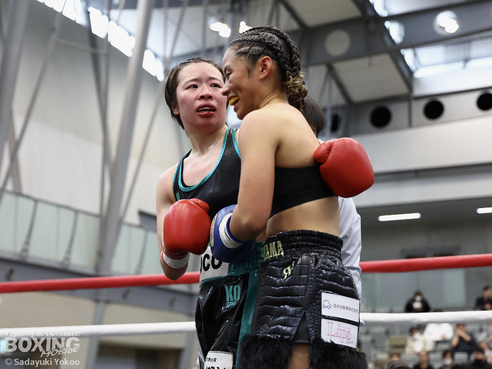試合:神成が出入りを意識しながら単発の左フックをヒット。2回、神成がスピードを活かした上下の打ち分けで見栄えの良さをアピール。ラウンド終盤、右ストレートを返した田戸だが、連打につなげられず。3回も神成がワンツーで顔を弾くとバックステップで回避。4回、田戸はワンツーを繰り出すが、相手を掴まれ切れず。神成は機動力を活かしたボクシングを遂行した。神成がフルマークの判定勝ちで3勝目を挙げた。