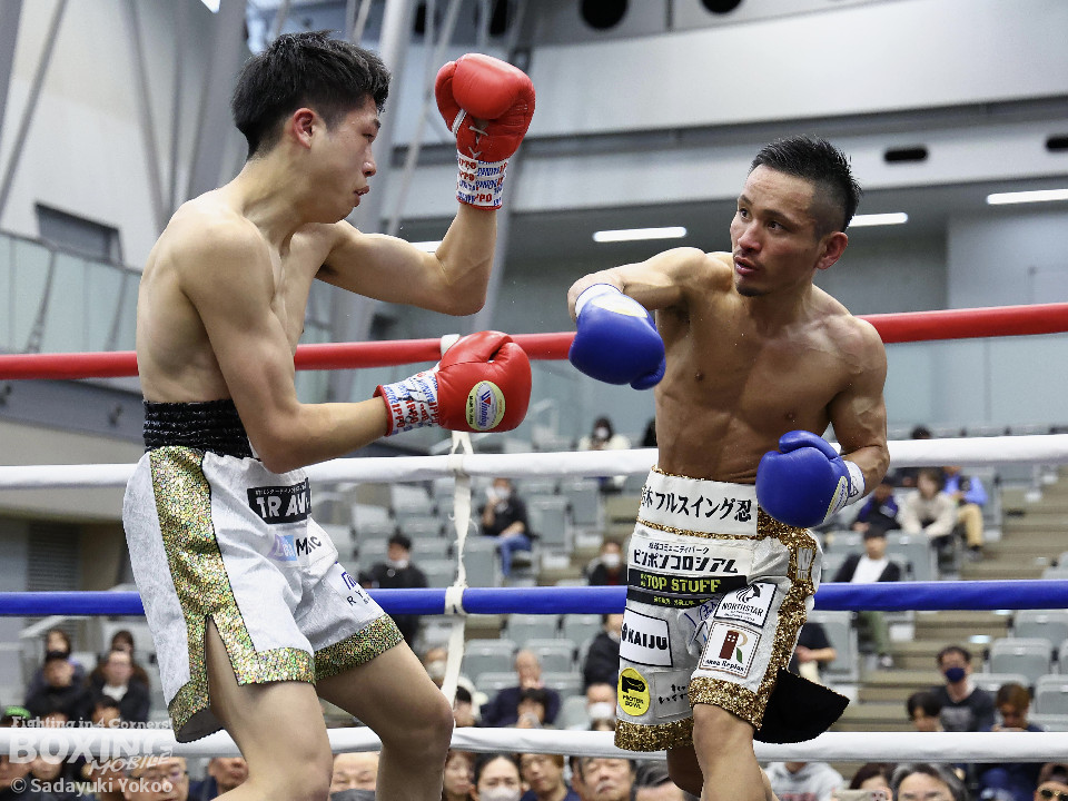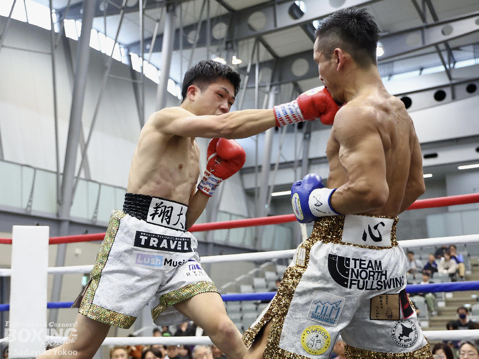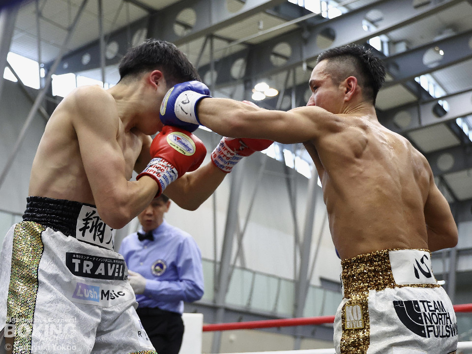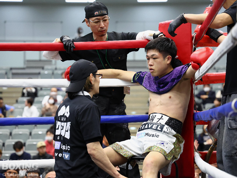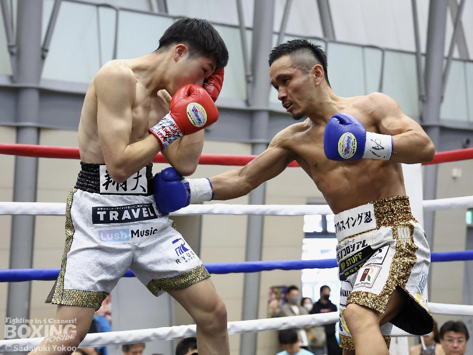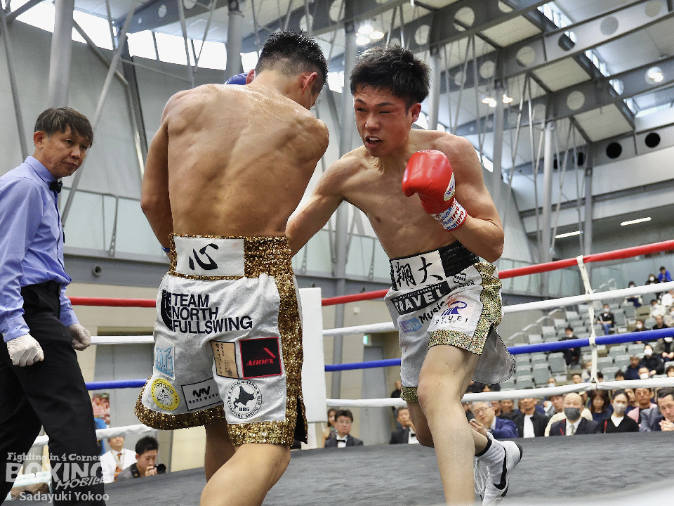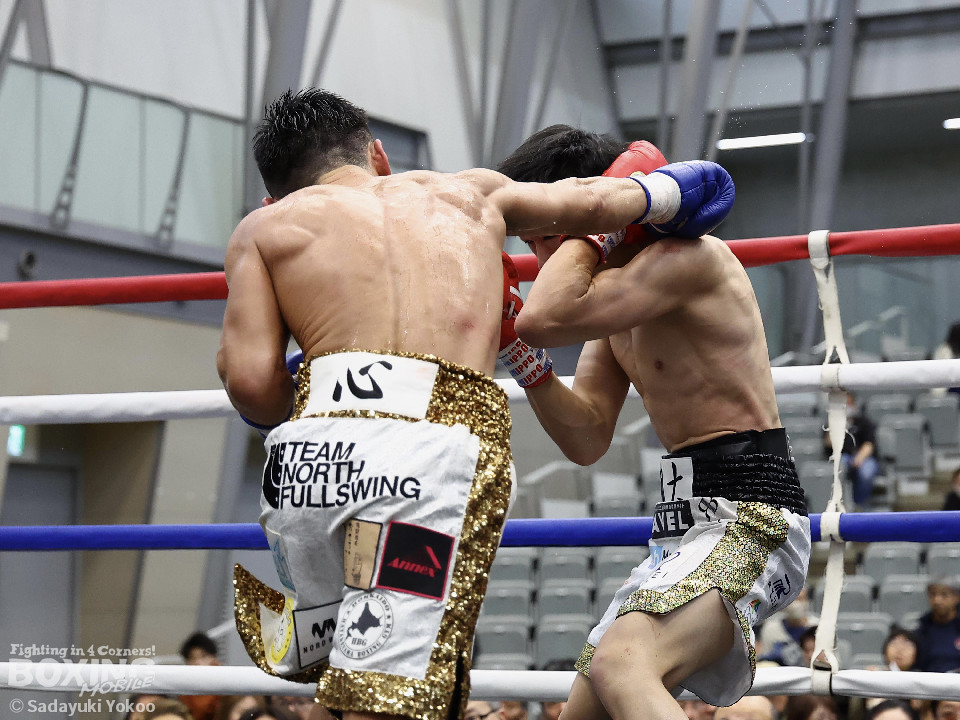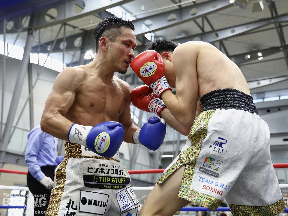 試合:若木がジリジリと距離を詰めて右ボディストレートを差し込み先制攻撃。2回、ボディの削り合いで我慢比べに発展。その中で若木の左ボディの見栄えが上回った印象。3回、藤本はジャブからワンツーにつなげるが、若木は反応の良さを見せると左ボディを好打しポイントを加点。4回、藤本は体が密着した状態からコツコツと当てて反撃。5回、一進一退の攻防を繰り広げる中、藤本の試合運びが上回った。6回、若木がワンツー左ボディを好打すると積極的な攻撃で優勢を印象付けた。ジャッジ2者の支持を得た若木がA級昇格を決めた。